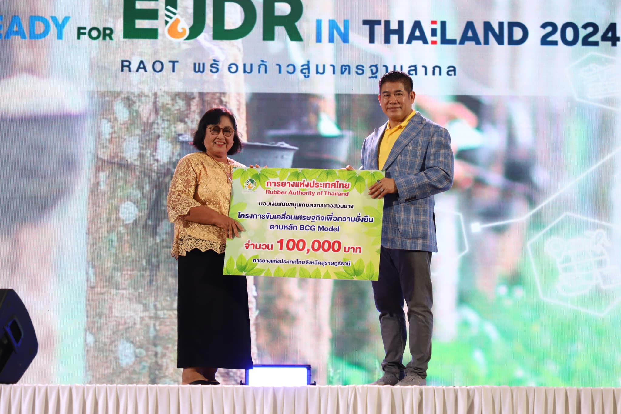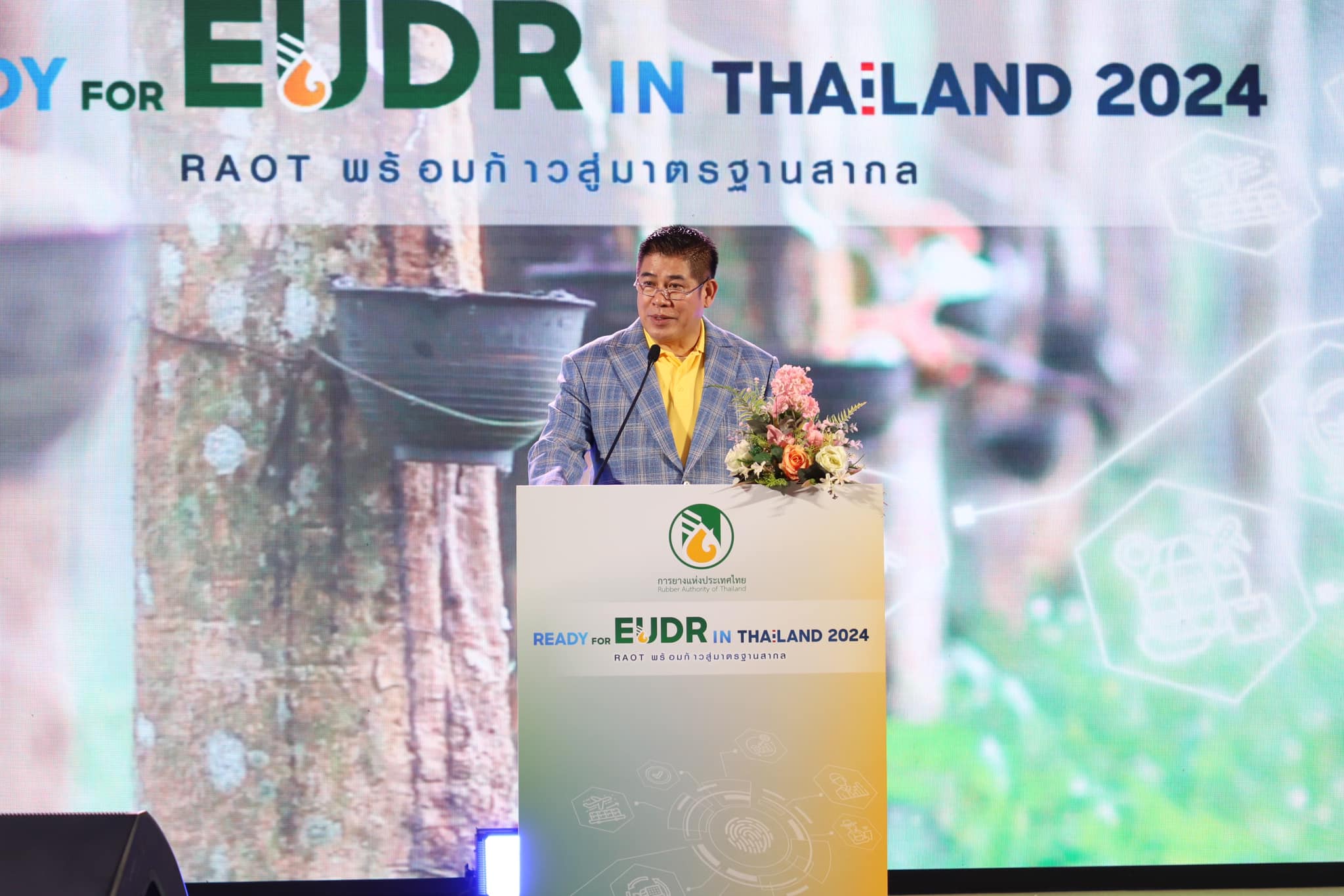นายวิณะโรจน์ ทรัพย์ส่งสุข เลขาธิการสำนักงานการปฏิรูปที่ดินเพื่อเกษตรกรรม (ส.ป.ก.) พร้อมด้วย นายสุรชัย ยุทธชนะ รองเลขาธิการ ส.ป.ก. ผู้ตรวจราชการกรม ผู้อำนวยการสำนักฯ ปฏิรูปที่ดินจังหวัด และเจ้าหน้าที่ที่เกี่ยวข้อง ร่วมงาน Thailand ready for EUDR โดยมี รัฐมนตรีว่าการกระทรวงเกษตรและสหกรณ์ (รมว.กษ.) ร้อยเอก ธรรมนัส พรหมเผ่า เป็นประธานในพิธีเปิดงาน และพิธีลงนามแสดงเจตจำนงในการขับเคลื่อนสินค้ายางพาราตามมาตรการกฎระเบียบสินค้าปลอดการตัดไม้ทำลายป่า EU Deforestation Regulation (EUDR) ณ โรงแรมบรรจงบุรี จ.สุราษฎร์ธานี ในวันที่ 27 เมษายน 2567
