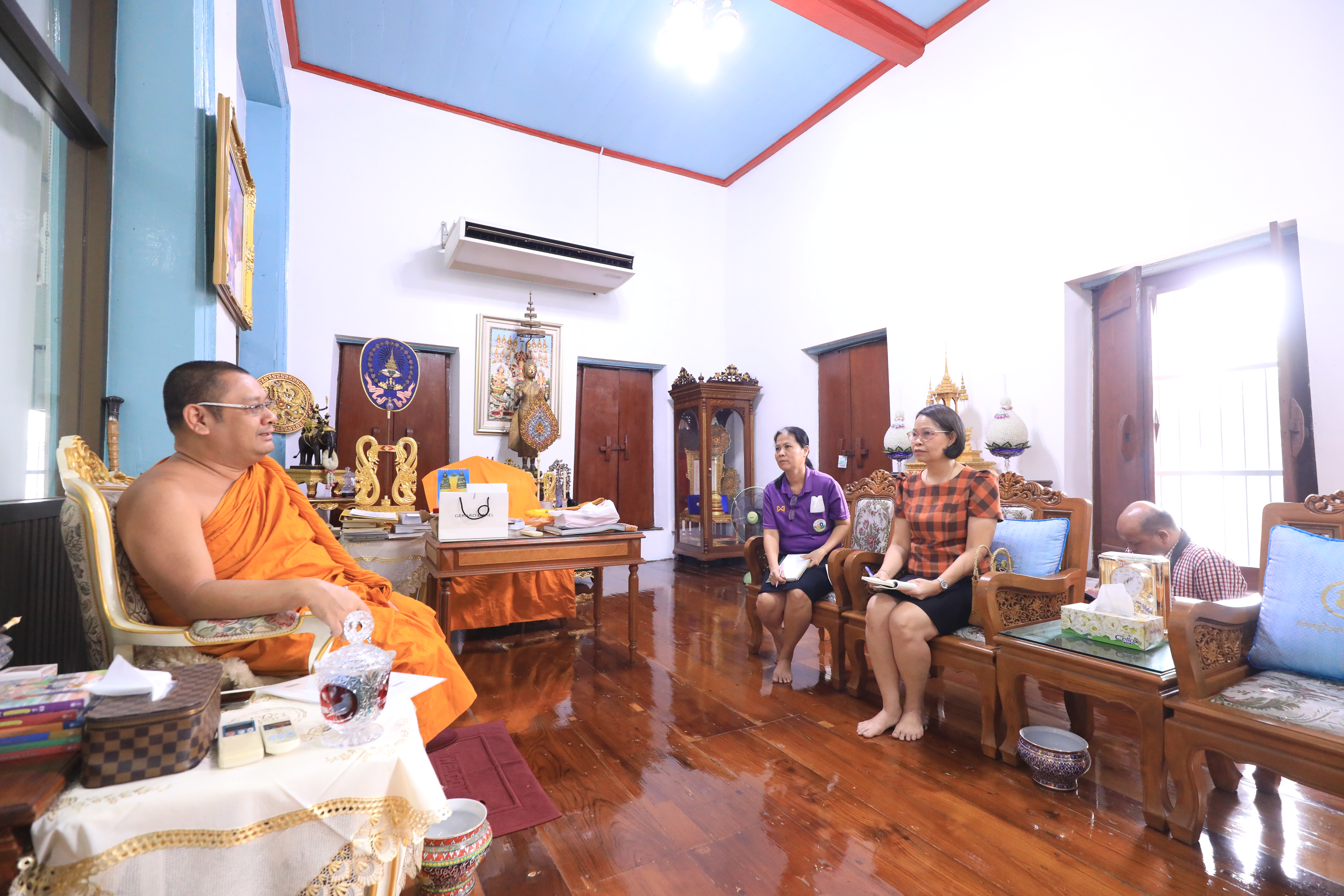 ร่วมประชุมกับ พระครูพิศิษฏ์จริยานุยุต (ยิ่งศักดิ์ อภิวฑฺฒโน) ผู้ช่วยเจ้าอาวาสวัดเทพธิดารามวรวิหาร พร้อมลงพื้นที่เพื่อเตรียมความพร้อม ณ วัดเทพธิดารามวรวิหาร ในด้านต่าง ๆ อาทิ สถานที่จัดพิธี ระบบถ่ายทอดสัญญาณภาพสด สถานที่จอดรถ รวมถึงการประสานในด้านอื่น ๆ ที่จะมีขึ้นในวันพิธี