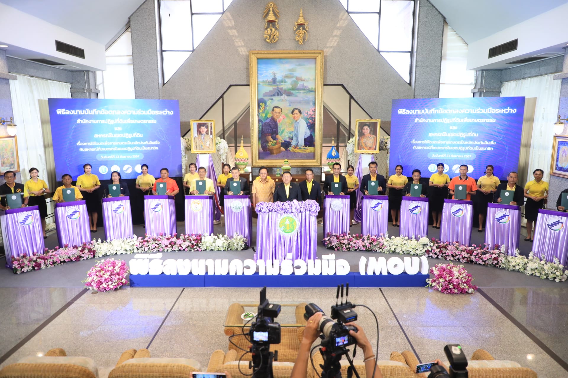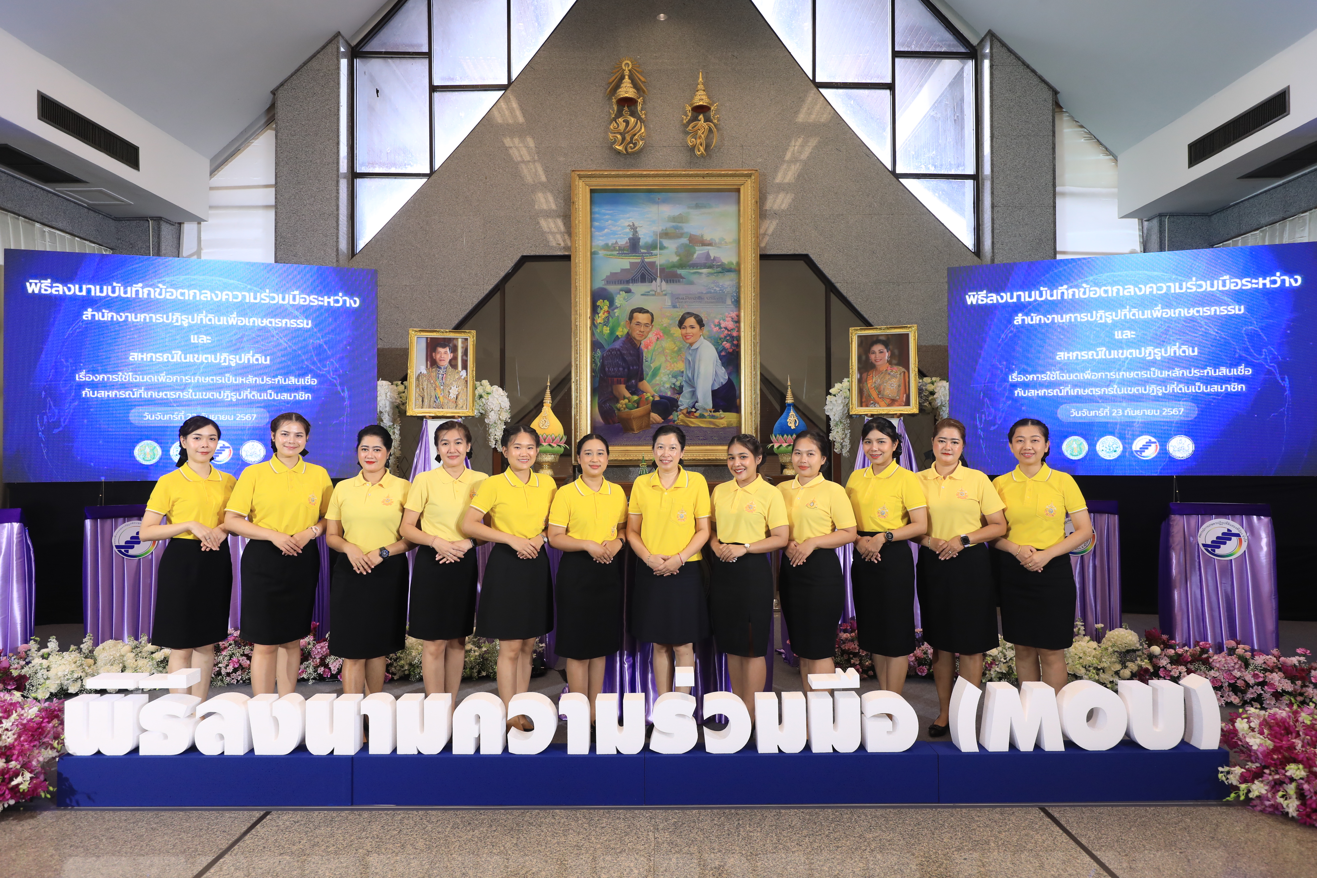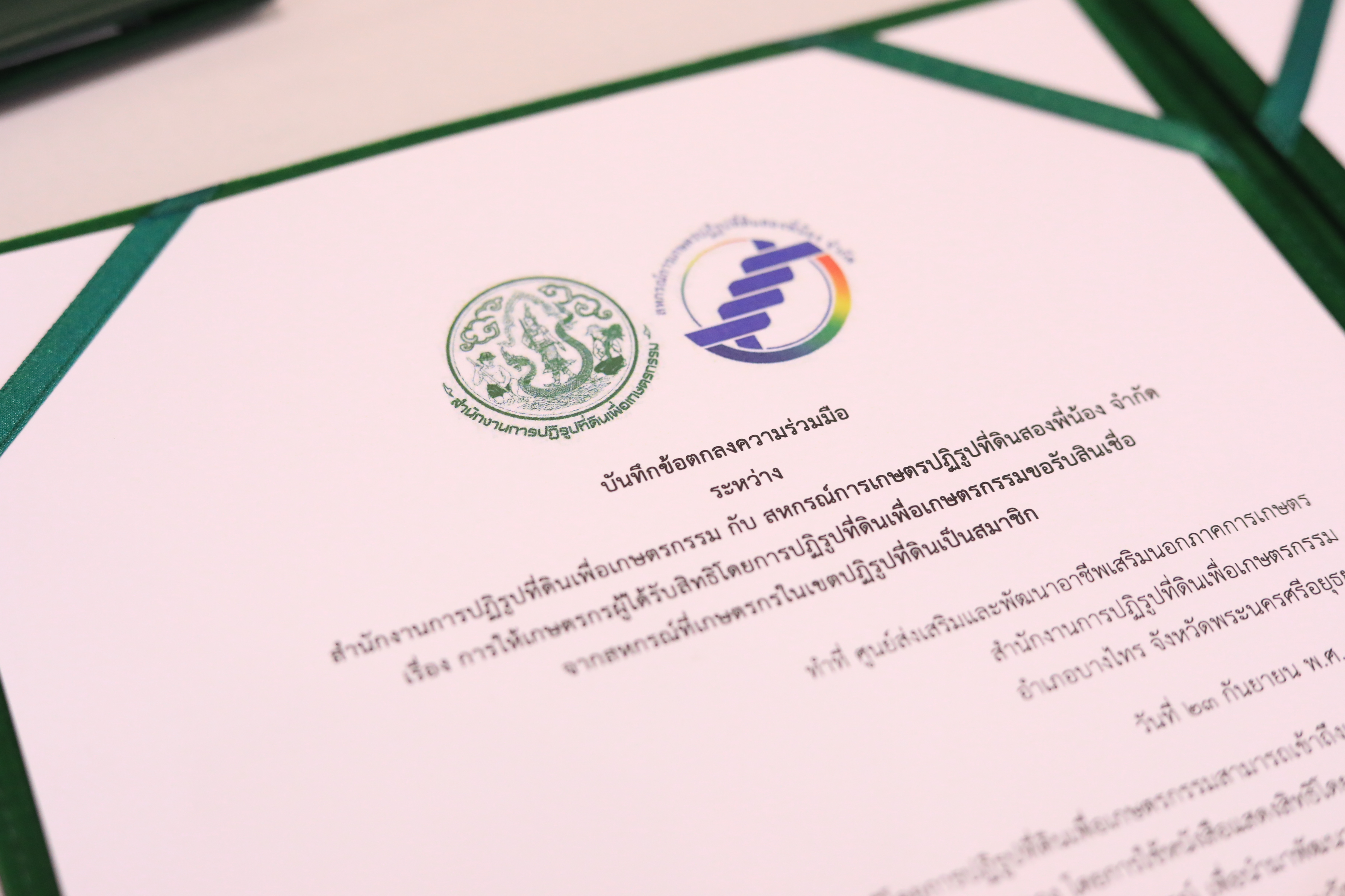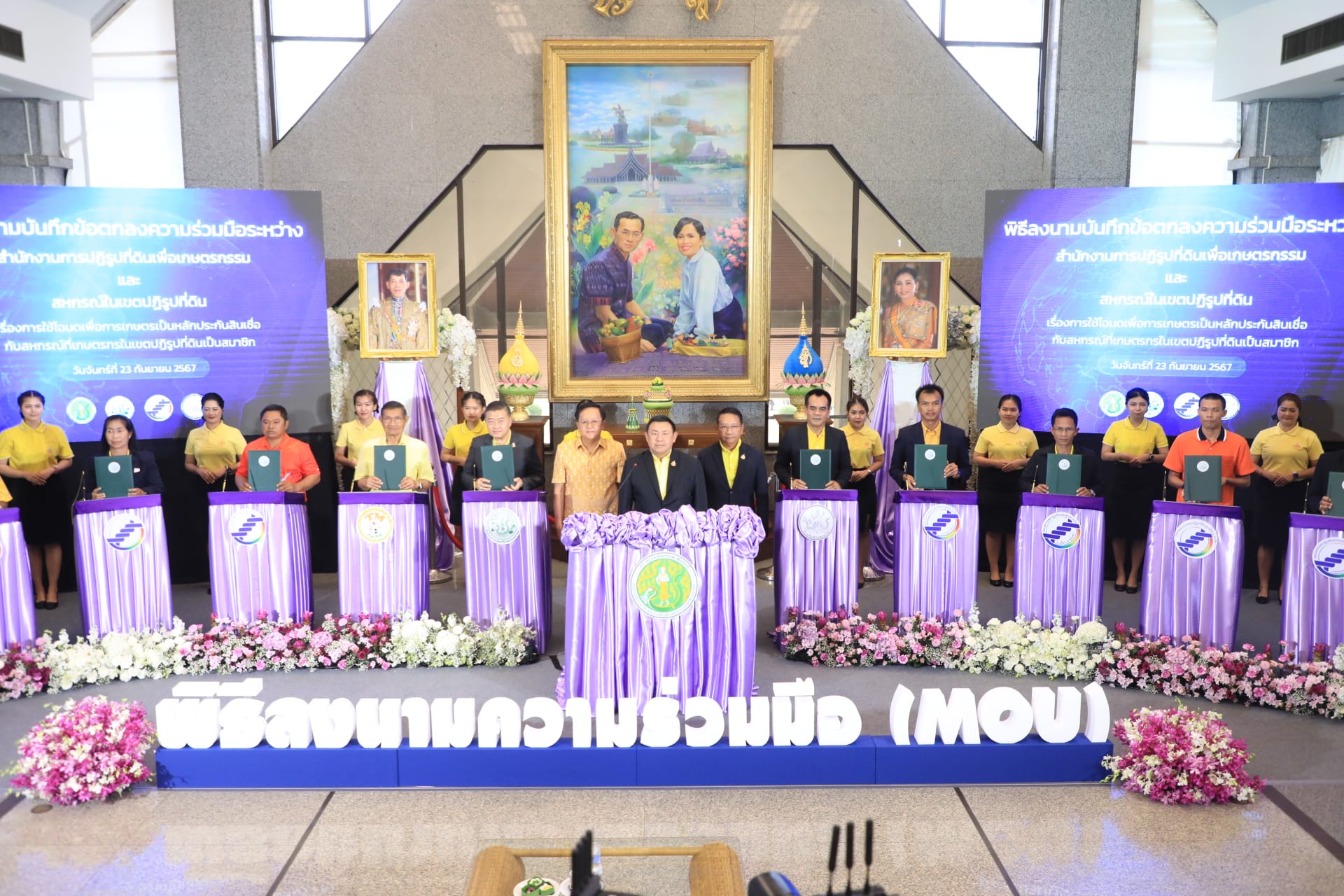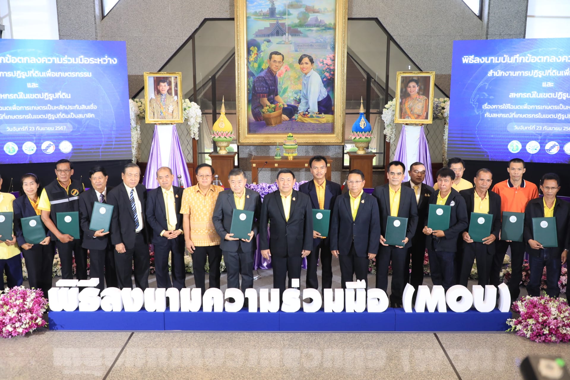 วันที่ 23 กันยายน 2567 รัฐมนตรีว่าการกระทรวงเกษตรและสหกรณ์ (ศาสตราจารย์ ดร.นฤมล ภิญโญสินวัฒน์) ได้มอบหมายให้รองปลัดกระทรวงเกษตรและสหกรณ์ (นายเศรษฐเกียรติ กระจ่างวงษ์) เป็นประธานในพิธีลงนามบันทึกข้อตกลงความร่วมมือ เรื่อง การใช้โฉนดเพื่อการเกษตรเป็นหลักประกันสินเชื่อกับสหกรณ์ที่เกษตรกรในเขตปฏิรูปที่ดินเป็นสมาชิก ระหว่าง สำนักงานการปฏิรูปที่ดินเพื่อเกษตรกรรม (ส.ป.ก.) และสหกรณ์ในเขตปฏิรูปที่ดิน ณ ศูนย์ส่งเสริมและพัฒนาอาชีพเสริมนอกภาคการเกษตร สำนักงานการปฏิรูปที่ดินเพื่อเกษตรกรรม อ.บางไทร จ.พระนครศรีอยุธยา