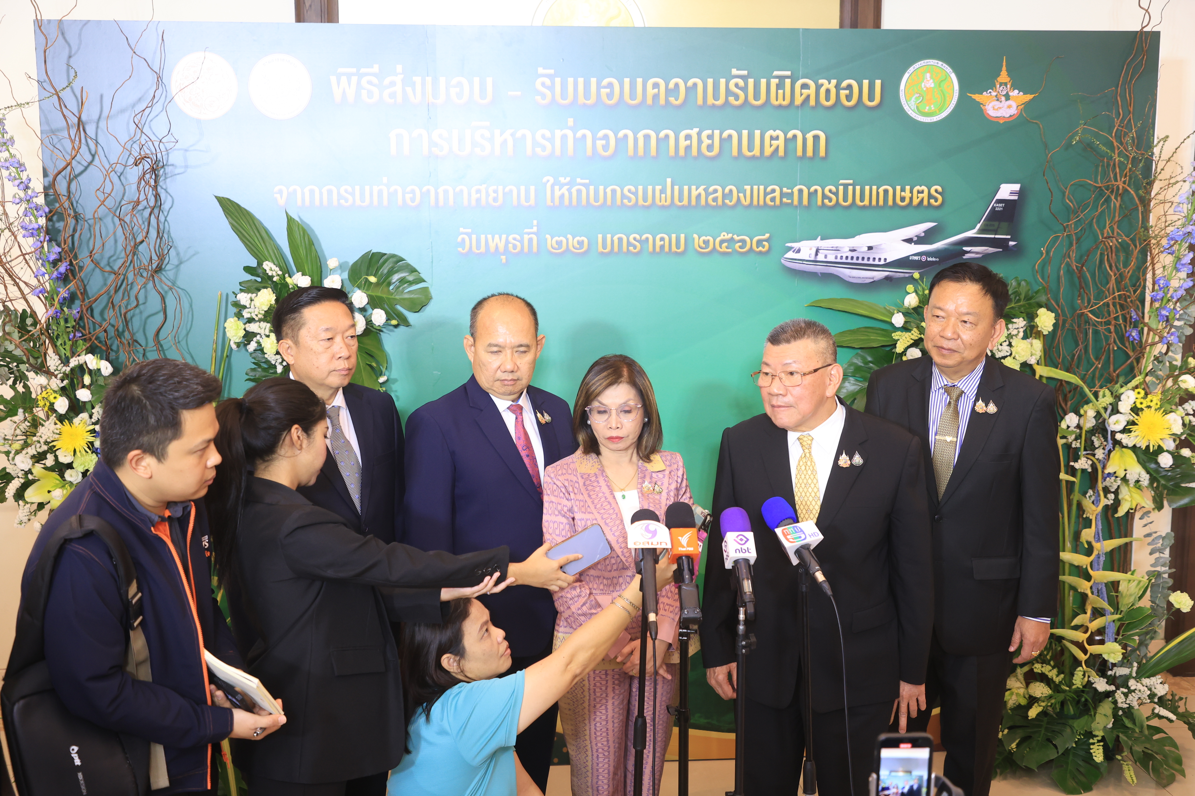 22 มกราคม 2568 เวลา 11.00 น. นายเศรษฐเกียรติ กระจ่างวงษ์ เลขาธิการ ส.ป.ก. ร่วมเป็นเกียรติในพิธีส่งมอบ – รับมอบความรับผิดชอบการบริหารท่าอากาศยานตาก จากกรมท่าอากาศยาน ให้กับกรมฝนหลวงและการบินเกษตร โดยมี นายอิทธิ ศิริลัทยากร รัฐมนตรีช่วยว่าการกระทรวงเกษตรและสหกรณ์ และ นางมนพร เจริญศรี รัฐมนตรีช่วยว่าการกระทรวงคมนาคม ร่วมเป็นสักขีพยาน พร้อมด้วย นายราเชน ศิลปะรายะ รองอธิบดีกรมฝนหลวงและการบินเกษตร ด้านปฏิบัติการ และ นายดนัย เรืองสอน อธิบดีกรมท่าอากาศยาน ร่วมพิธีส่งมอบ – รับมอบความรับผิดชอบการบริหารท่าอากาศยานตาก จากกรมท่าอากาศยาน ให้กับกรมฝนหลวงและการบินเกษตร เพื่อใช้ประโยชน์ในภารกิจเกี่ยวกับการปฏิบัติการฝนหลวงและการบินเกษตร พร้อมทั้งพัฒนาปรับปรุงท่าอากาศยานตากให้เป็นศูนย์หลักในการปฏิบัติการ บินดัดแปรสภาพอากาศ และสามารถใช้ประโยชน์พื้นที่ในท่าอากาศยานตากได้อย่างเต็มประสิทธิภาพ ตามมติคณะรัฐมนตรี เมื่อวันที่ 1 ตุลาคม 2567 ที่ผ่านมา ณ ห้องประชุม 115 กระทรวงเกษตรและสหกรณ์ เขตพระนคร กรุงเทพฯ