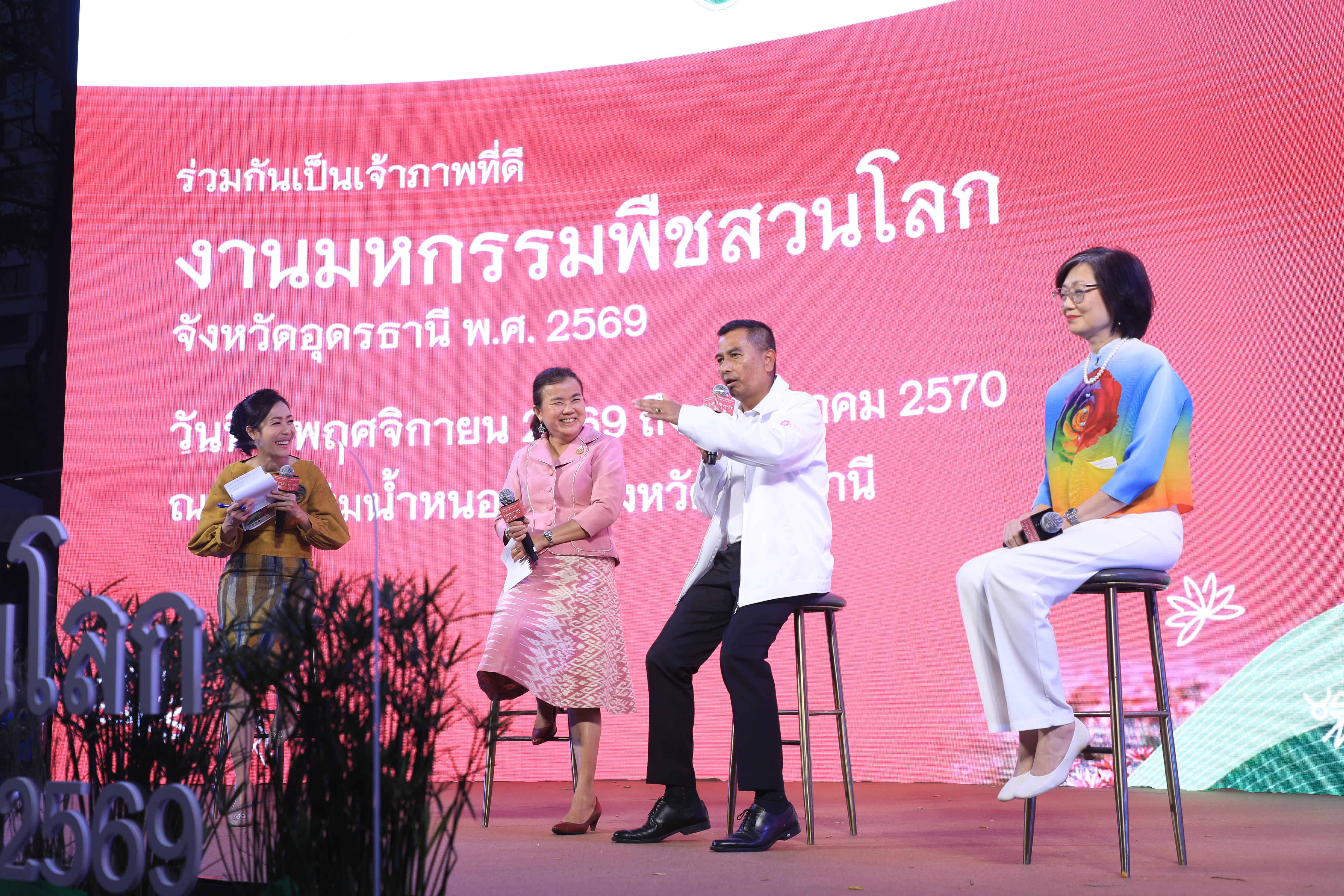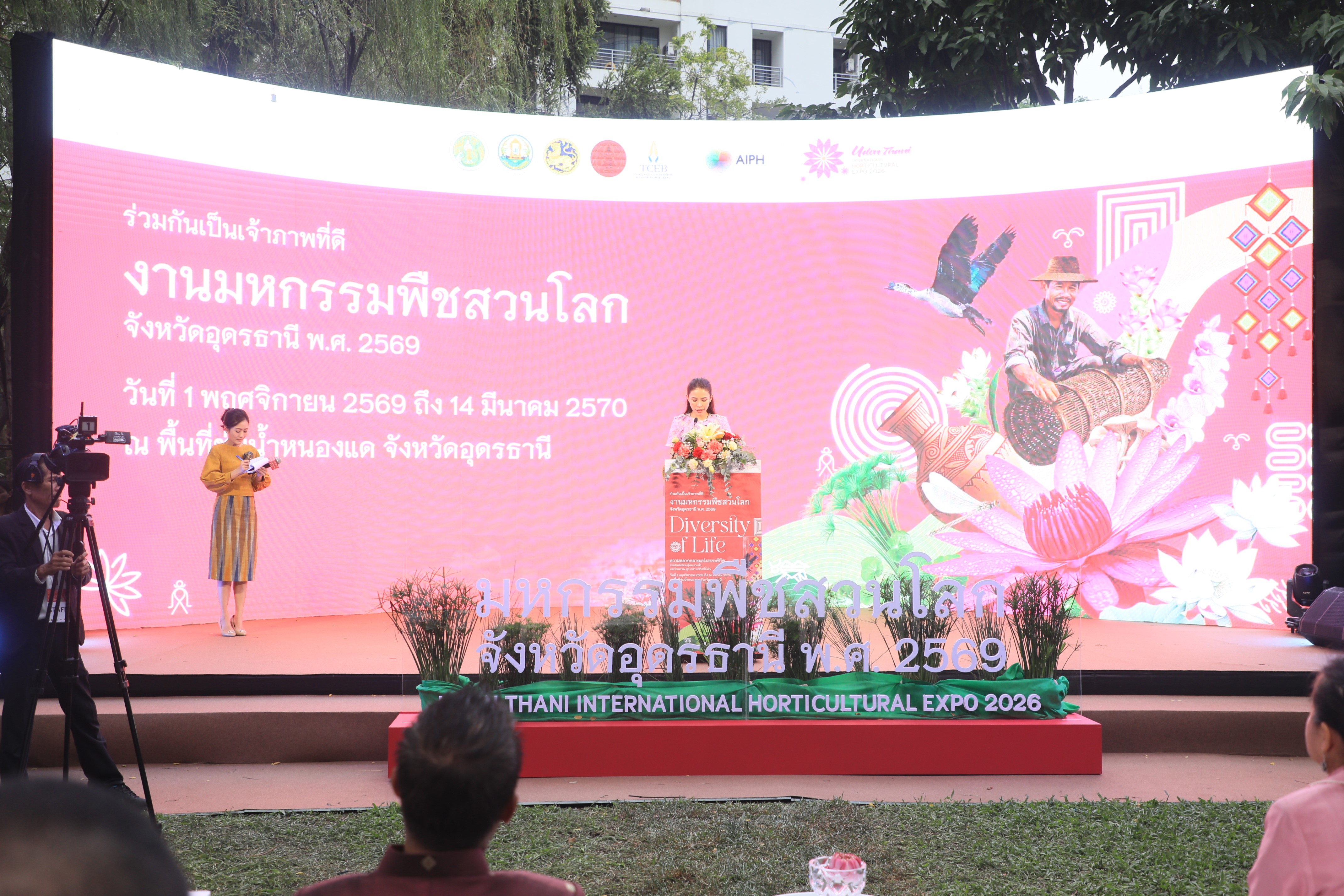 ศ.ดร.นฤมล ภิญโญสินวัฒน์ รัฐมนตรีว่าการกระทรวงเกษตรและสหกรณ์ มอบหมาย นางสาวอนงค์นาถ จ่าแก้ว ผู้ช่วยเลขานุการ รัฐมนตรีว่าการกระทรวงเกษตรและสหกรณ์ ให้เกียรติเป็นประธานงานแถลงข่าวงานมหกรรมพืชสวนโลกจังหวัดอุดรธานี พ.ศ.2569 โดยมี นายรพีภัทร์ จันทรศรีวงศ์ อธิบดีกรมวิชาการเกษตร มอบหมายให้ นางวิลาวัณย์ ใคร่ครวญ รองอธิบดีกรมวิชาการเกษตร พร้อมด้วย นายราชันย์ ซุ้นหั้ว ผู้ว่าราชการจังหวัดอุดรธานี ร่วมแถลงข่าว ถึงความพร้อมการจัด “งานมหกรรมพืชสวนโลกจังหวัดอุดรธานี พ.ศ.2569” ภายใต้แนวคิด “Diversity of Life, connecting people, water and plants for sustainable living ความหลากหลายแห่งสรรพชีวิต : สายสัมพันธ์แห่งผู้คน สายน้ำและพืชพรรณ สู่การดำรงชีวิตที่ยั่งยืน” พร้อมชูวิสัยทัศน์ “ประเทศไทยมีความมั่นคง มั่งคั่ง ยั่งยืน” รวมพื้นที่จัดงาน 1,030 ไร่ เพื่อนำความรู้แลกเปลี่ยนวิชาการและเทคโนโลยีสู่ระดับนานาชาติ โชว์ศักยภาพพืชสวนโลก โดยเฉพาะการจัดงานบนพื้นที่ชุ่มน้ำเป็นครั้งแรกของโลก มุ่งสู่เป้าหมาย “เมืองอัจฉริยะศูนย์กลางการค้าการลงทุน การท่องเที่ยวและไมซ์ (MICE) ในอนุภูมิภาคลุ่มแม่น้ำโขง” ซึ่งตรงกับเฉลิมฉลองการครองสิริราชสมบัติครบ 10 ปีของพระบาทสมเด็จพระปรเมนทรรามาธิบดีศรีสินทรมหาวชิราลงกรณ พระวชิรเกล้าเจ้าอยู่หัว และสมเด็จพระกนิษฐาธิราชเจ้า กรมสมเด็จพระเทพรัตนราชสุดา ฯ สยามบรมราชกุมารี ทรงพระชนมายุครบ 6 รอบ หรือ 72 พรรษา และวันครบรอบวันสถาปนาเมืองอุดรธานี 134 ปี โดยงานจัดขึ้นในช่วงวันที่ 1 พฤศจิกายน 2569 - 14 มีนาคม 2570 ณ พื้นที่ชุ่มน้ำหนองแด ตำบลกุดสระ อำเภอเมืองอุดรธานี จังหวัดอุดรธานี พร้อมต้อนรับนักท่องเที่ยวจากทั่วโลก
