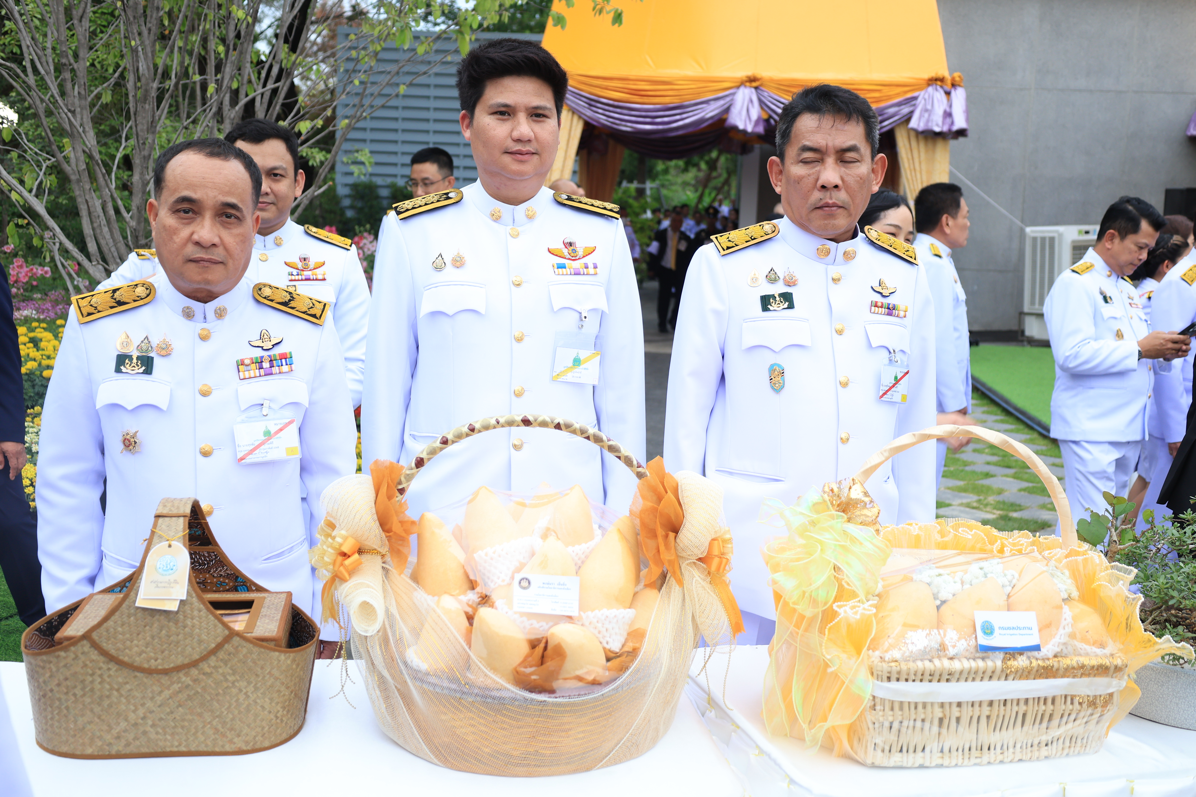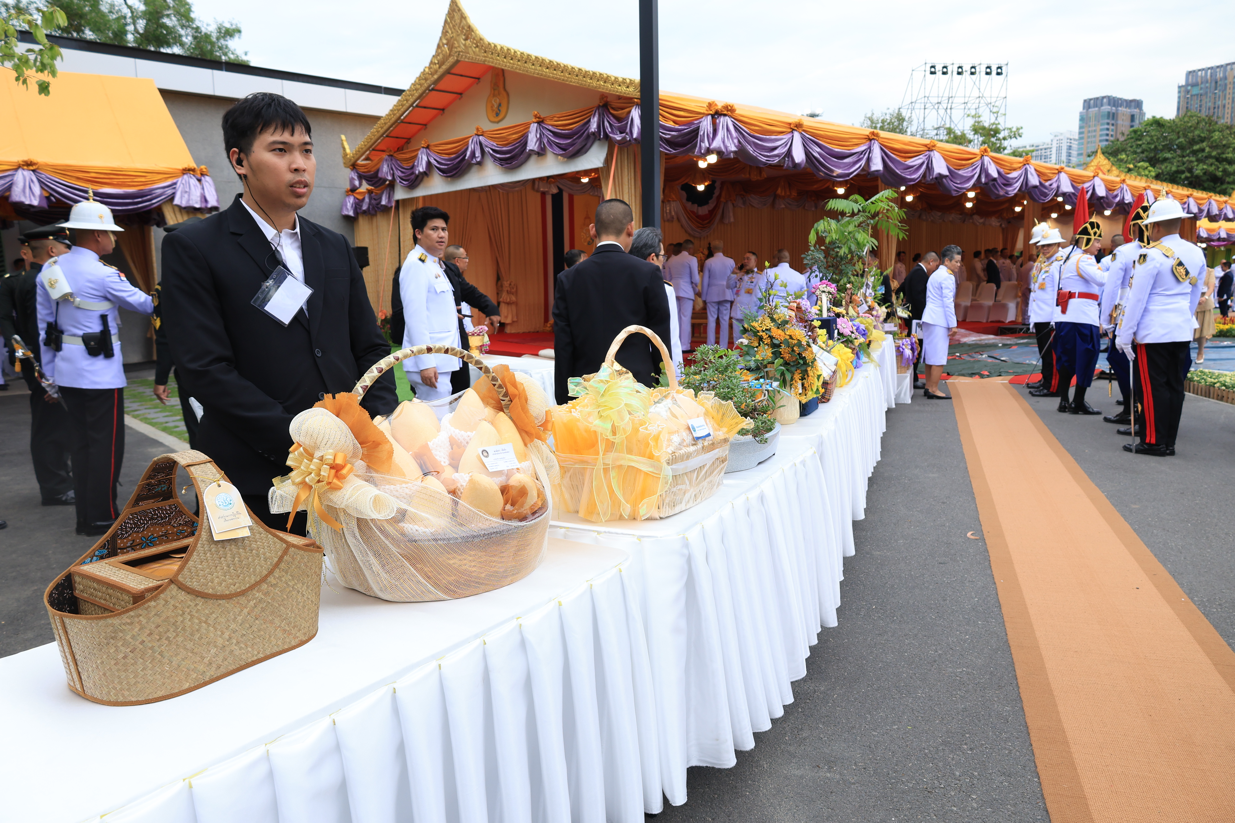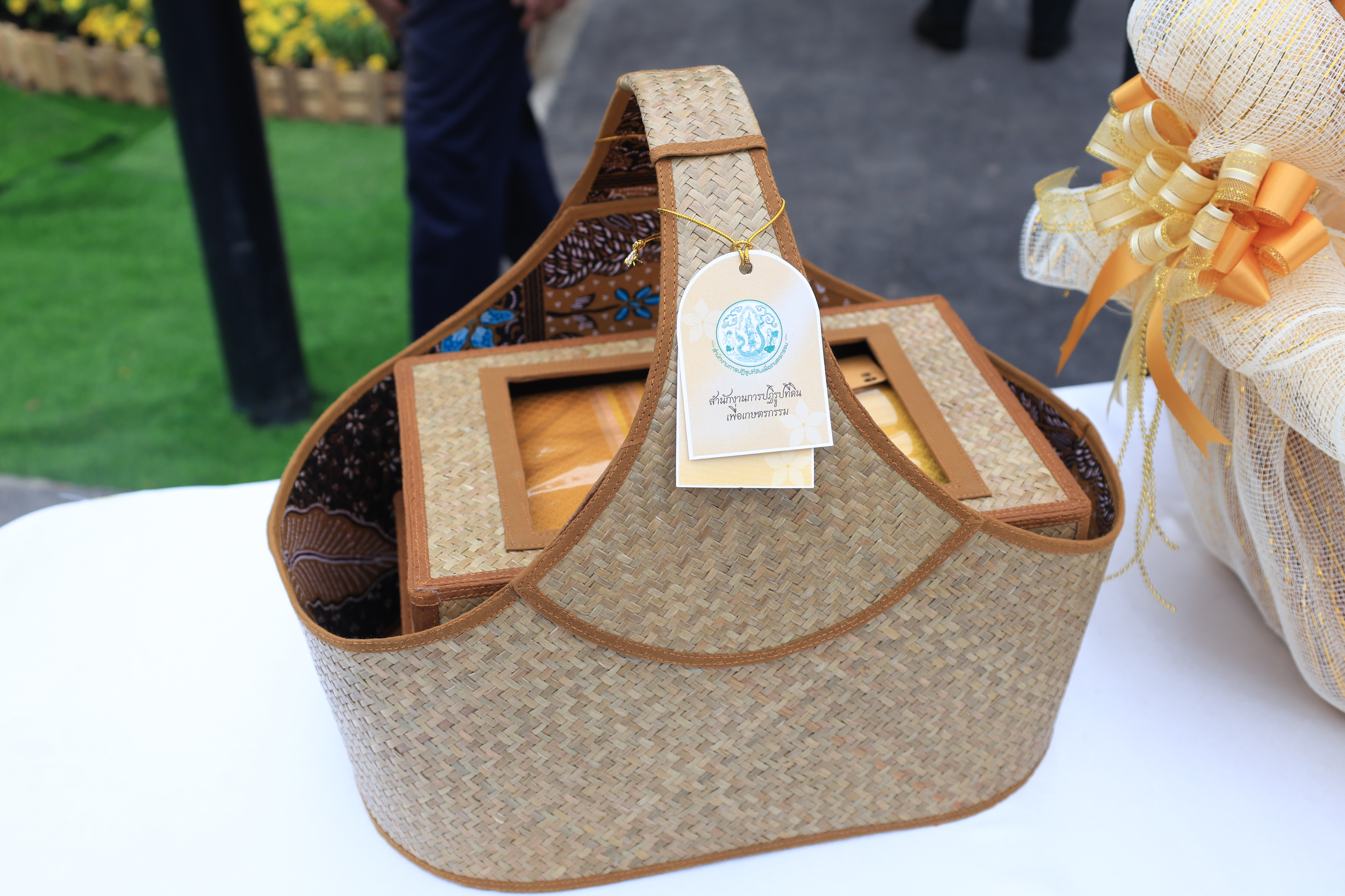 ซึ่งในส่วนของ สำนักงานการปฏิรูปที่ดินเพื่อเกษตรกรรม(ส.ป.ก.) นายเศรษฐเกียรติ กระจ่างวงษ์ เลขาธิการ ส.ป.ก. ได้มอบหมายให้ นายสุรชัย ยุทธชนะ รองเลขาธิการ ส.ป.ก. เฝ้ารับเสด็จและทูลเกล้าฯ ถวายผลิตภัณฑ์ในเขตปฏิรูปที่ดิน ประกอบด้วย ผลิตภัณฑ์ผ้าทอมือลายดอกพยอม สีเหลือง ซึ่งเป็นสีประจำพระองค์ จำนวน 1 ผืน สีฟ้า เชิงผ้าสีม่วงผสม ซึ่งสีฟ้า เป็นสีประจำพระองค์ของสมเด็จพระบรมราชชนนีพันปีหลวง สีม่วง เป็นสีประจำพระองค์ของสมเด็จพระนางเจ้าฯ พระบรมราชินี ผู้ทอ นางอัมพร สังข์ประสิทธิ์ สมาชิกกลุ่มผ้าทอบ้านตอหลัง หมู่ที่ 3 บ้านตอหลัง ตำบลไพรวัน อำเภอตากใบ จังหวัดนราธิวาส โดยบรรจุในกล่องกระจูดและนำใส่ในตะกร้าอเนกประสงค์กระจูดอีกชั้นหนึ่ง ผู้ผลิตผลิตภัณฑ์กระจูด กลุ่มกระจูดรายา โดยนางกูแวราย๊ะ กูโน ประธานวิสาหกิจชุมชนกลุ่มแปรรูปผลิตภัณฑ์กระจูด เกษตรกรในเขตปฏิรูปที่ดิน หมู่ที่ 7 ตำบลไพรวัน อำเภอตากใบ จังหวัดนราธิวาส