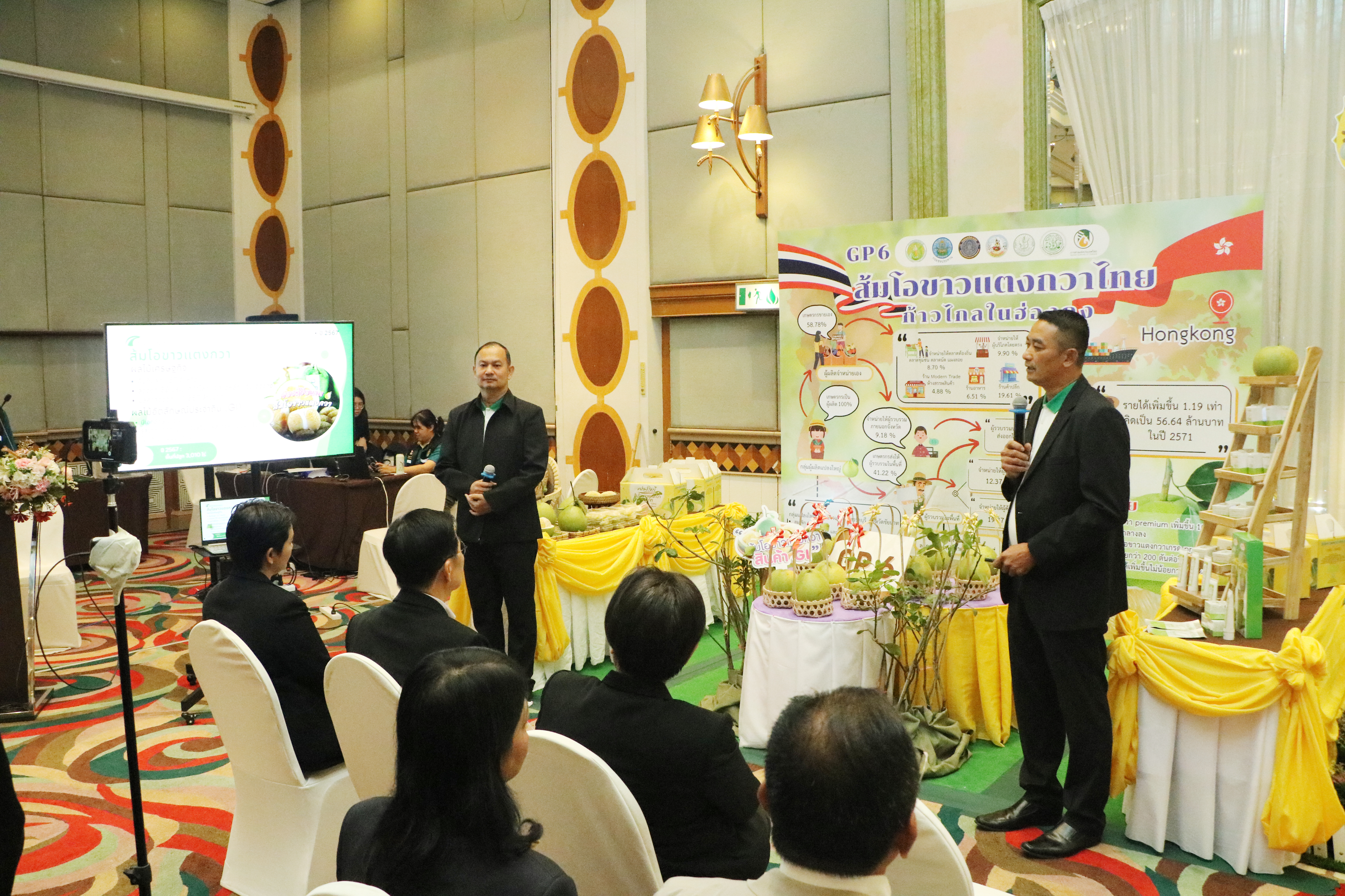 ทั้งนี้ผู้เข้ารับการฝึกอบรมได้นำเสนอผลงานวิชาการ (Group Project : GP) และนิทรรศการ (Booth Exhibition) GP 1-7 ภายใต้หัวข้อโครงการสินค้าเกษตรมูลค่าสูงและผลักดันสินค้าเกษตรเพื่อส่งออกไปยังต่างประเทศ โดยมี นางสาวภัทราภรณ์ โสเจยยะ รองปลัดกระทรวงเกษตรและสหกรณ์ เป็นประธานในพิธี และกรรมการตัดสินการนำเสนอผลงานวิชาการ (Group Project : GP) และนิทรรศการ (Booth Exhibition) GP