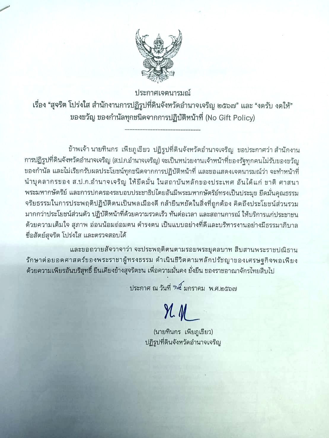 สู้ด้วยใจ เห็นความสดใสสมุนไพรห้วยร่องคำ ส.ป.ก.อำนาจเจริญ (ผลงานที่โดดเด่น) ประชุมคณะอนุกรรมการป้องกันและปราบปรามการตัดไม้ทำลายป่าระดับจังหวัด จังหวัดอำนาจเจริญ (คปป.จ.อจ.) ครั้งที่ 1/2568 จัดกิจกรรมจิตอาสาบำเพ็ญสาธารณประโยชน์ ฯ และบำเพ็ญสาธารณกุศลเฉลิมพระเกียรติสมเด็จ พระนางเจ้าสิริกิต์ พระบรมราชินีนาถ พระบรมราชชนนีพันปีหลวง เนื่องในโอกาสเฉลิมพระชนมพรรษา จัดฝึกอบรมโครงการลดการเผาเศษวัสดุเหลือใช้ทางการเกษตรในเขตปฏิรูปที่ดินจังหวัดอำนาจเจริญ ปีงบประมาณ ๒๕๖๘ สำนักงานการปฏิรูปที่ดินจังหวัดอำนาจเจริญ สนับสนุนปัจจัยการผลิตให้แก่เกษตรกร โครงการส่งเสริมเกษตรอินทรีย์ในเขตปฏิรูปที่ดิน ปีงบประมาณ 2565