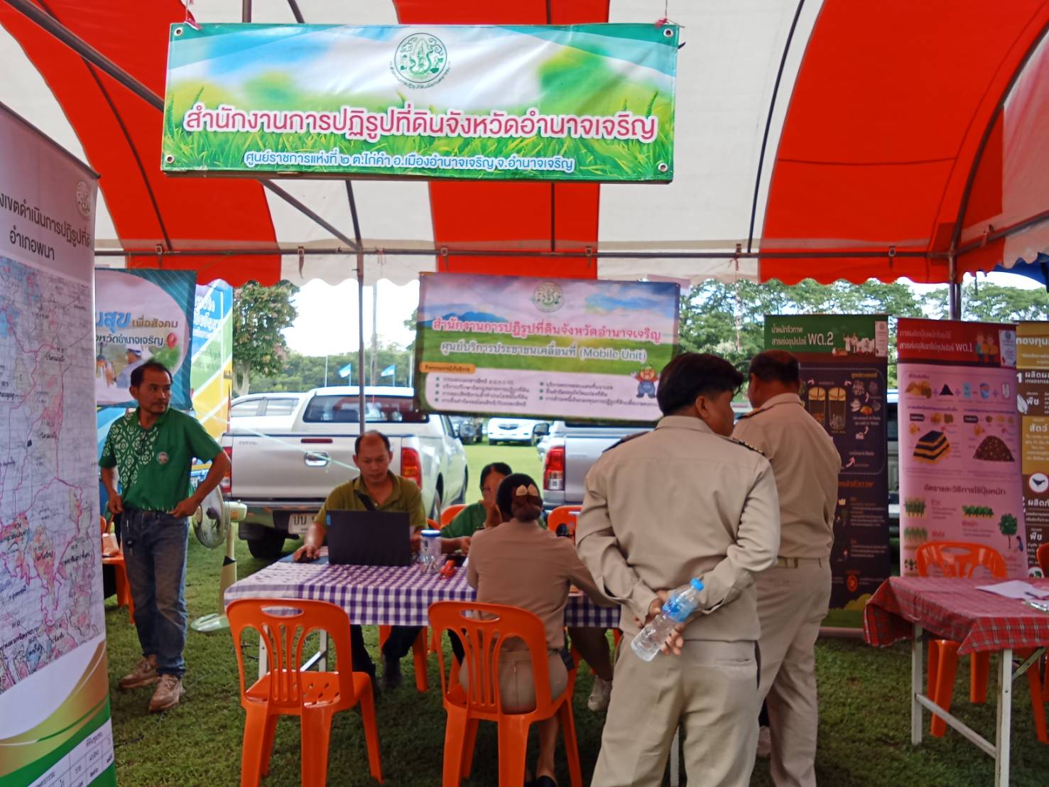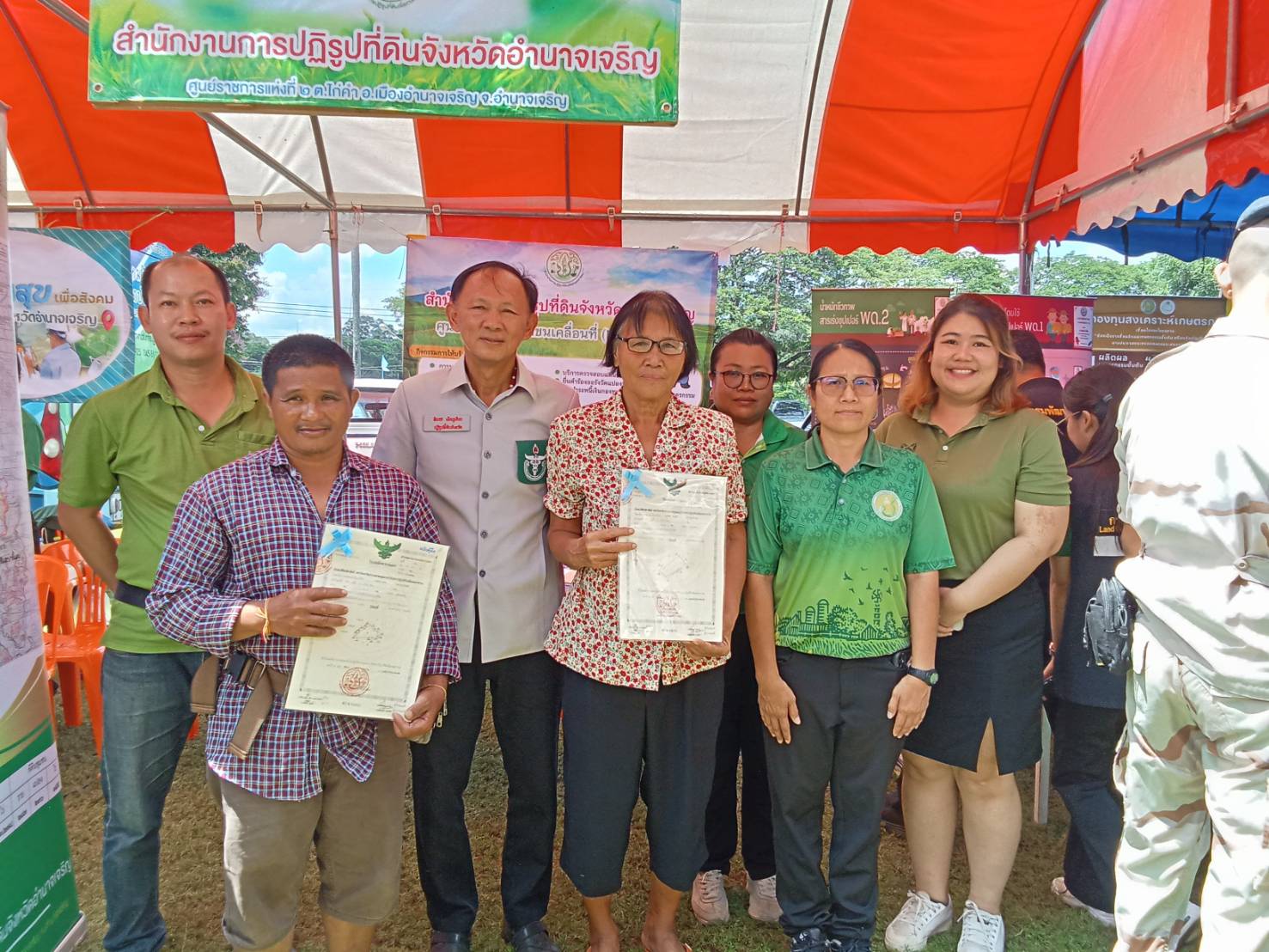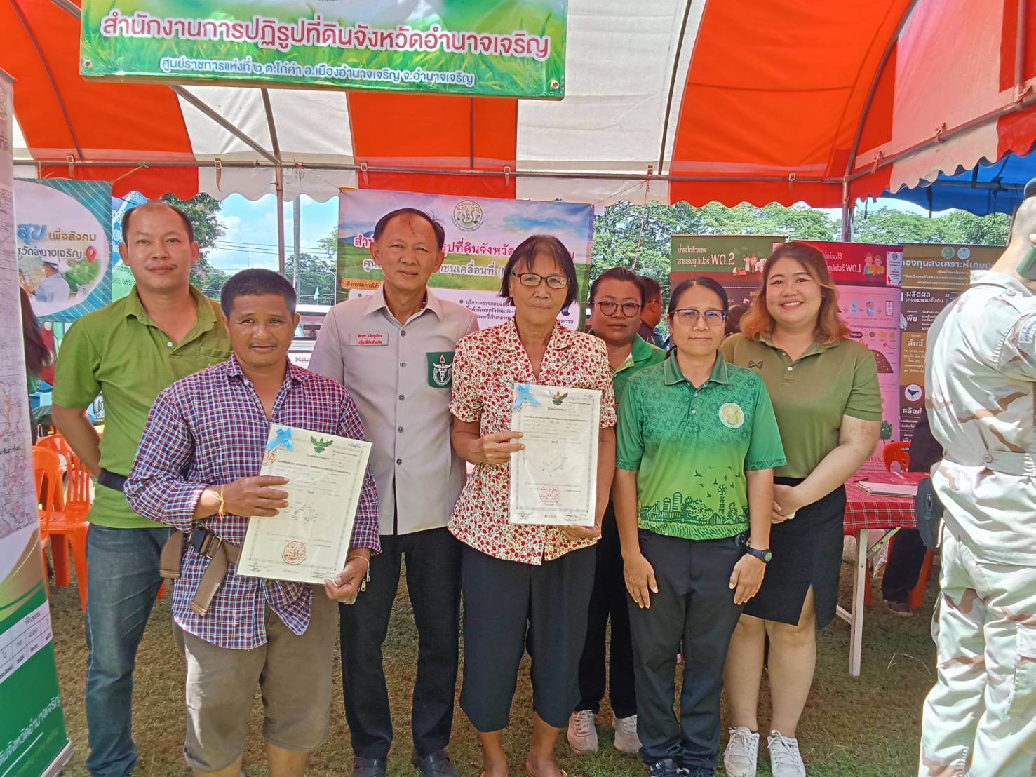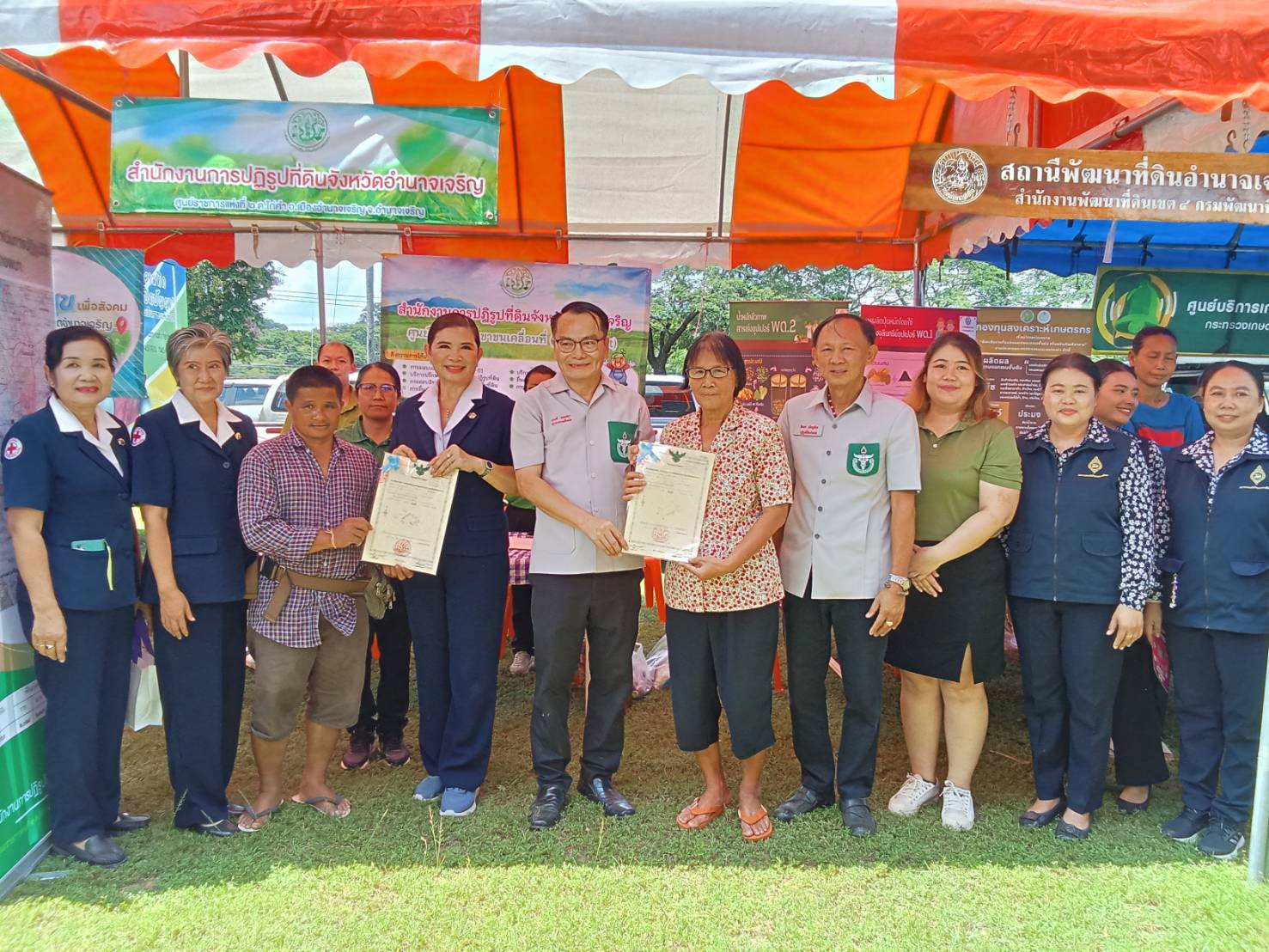 วันพุธที่ 20 สิงหาคม 2568 เวลา 09.30 น.นายทินกร เพียภูเขียว ปฏิรูปที่ดินจังหวัดอำนาจเจริญ พร้อมด้วยเจ้าหน้าที่ ส.ป.ก.อำนาจเจริญ ร่วมออกหน่วยบริการตามโครงการบำบัดทุกข์ บำรุงสุข สร้างรอยยิ้มให้ประชาชน และหน่วยแพทย์อาสาสมเด็จพระศรีนครินทราบรมราชชนนี (พอ.สว. )โดยนายณรงค์ศักดิ์ เทพเสนา ผู้ว่าราชการจังหวัดอำนาจเจริญ เป็นประธานฯ การออกหน่วยในครั้งนี้ ประกอบด้วยการให้บริการปรึกษาด้านแนวเขต ส.ป.ก. และมอบโฉนดเพื่อการเกษตร ณ โรงเรียนอนุบาลพนา(อุดมวิทยากร) บ้านพนา หมู่ที่ 29 ตำบลพนา อำเภอพนา จังหวัดอำนาจเจริญ