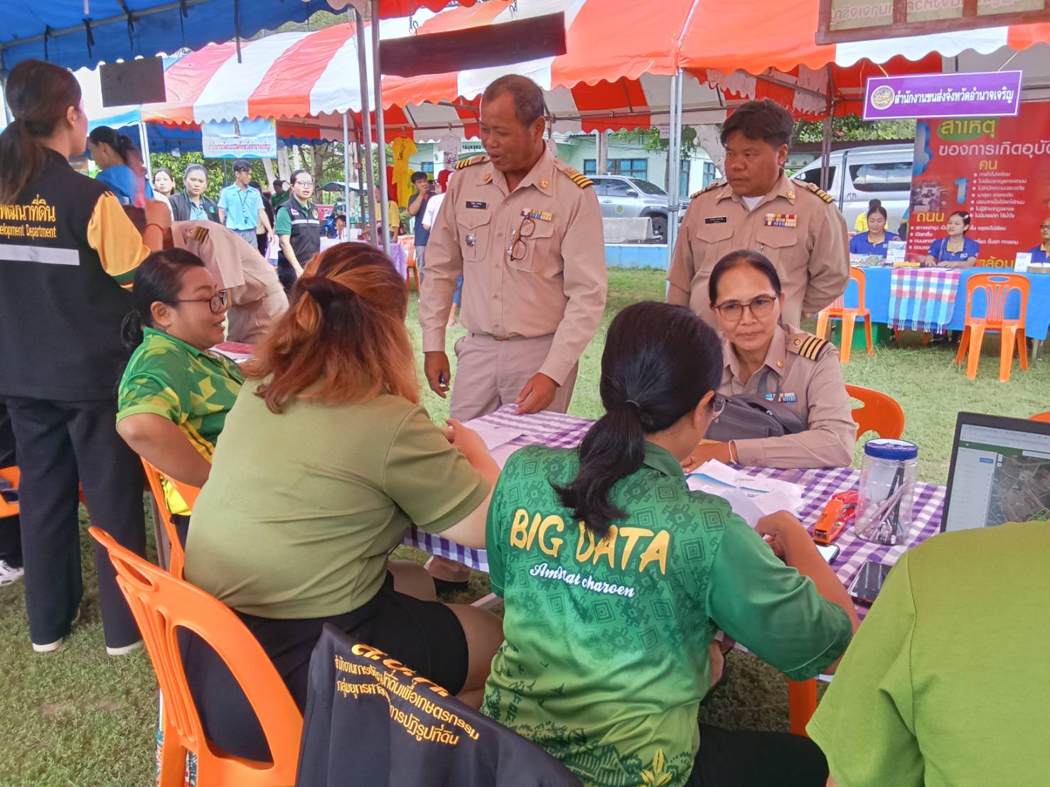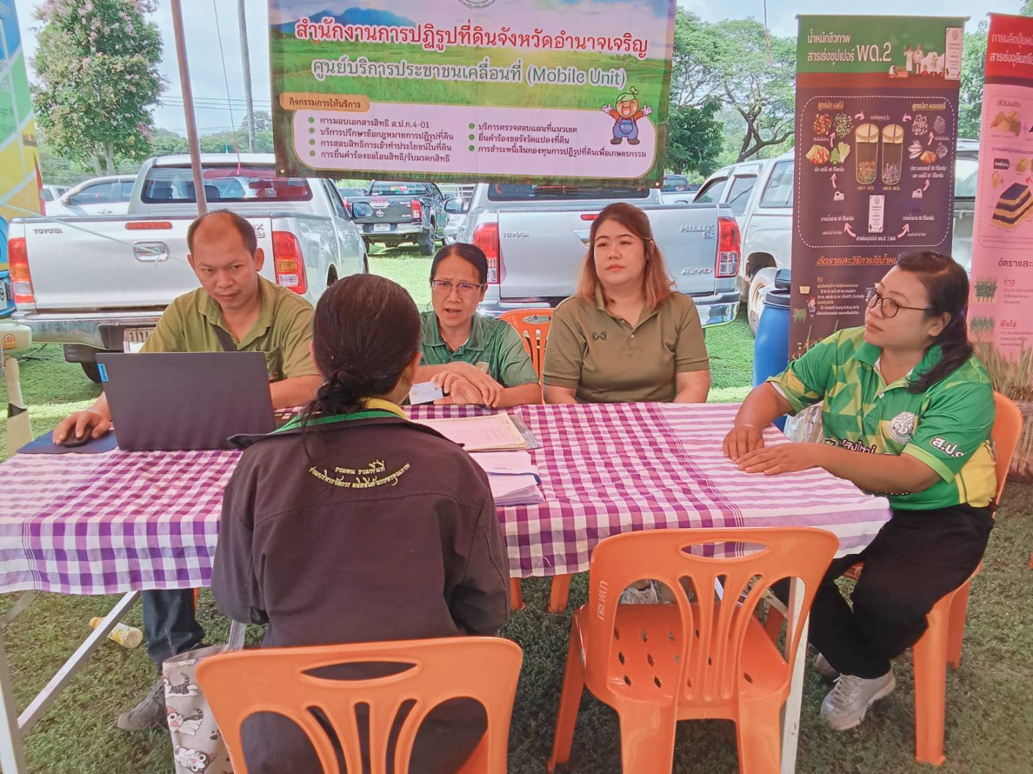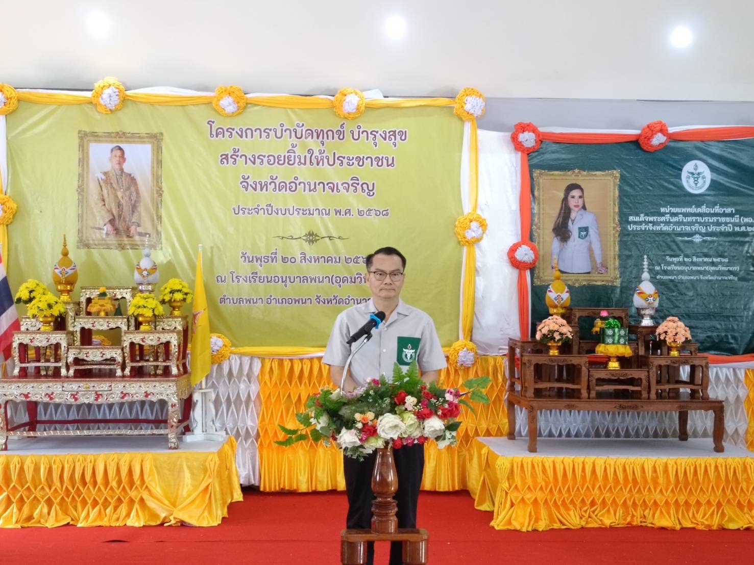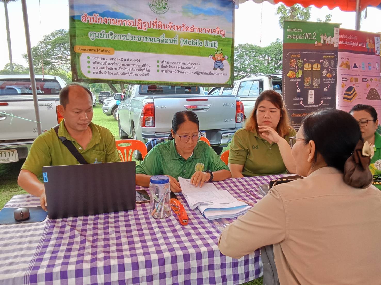 วันพุธที่ 20 สิงหาคม 2568 เวลา 09.30 น.นายทินกร เพียภูเขียว ปฏิรูปที่ดินจังหวัดอำนาจเจริญ พร้อมด้วยเจ้าหน้าที่ ส.ป.ก.อำนาจเจริญ ร่วมออกหน่วยบริการตามโครงการบำบัดทุกข์ บำรุงสุข สร้างรอยยิ้มให้ประชาชน และหน่วยแพทย์อาสาสมเด็จพระศรีนครินทราบรมราชชนนี (พอ.สว. )โดยนายณรงค์ศักดิ์ เทพเสนา ผู้ว่าราชการจังหวัดอำนาจเจริญ เป็นประธานฯ การออกหน่วยในครั้งนี้ ประกอบด้วยการให้บริการปรึกษาด้านแนวเขต ส.ป.ก. และมอบโฉนดเพื่อการเกษตร ณ โรงเรียนอนุบาลพนา(อุดมวิทยากร) บ้านพนา หมู่ที่ 29 ตำบลพนา อำเภอพนา จังหวัดอำนาจเจริญ