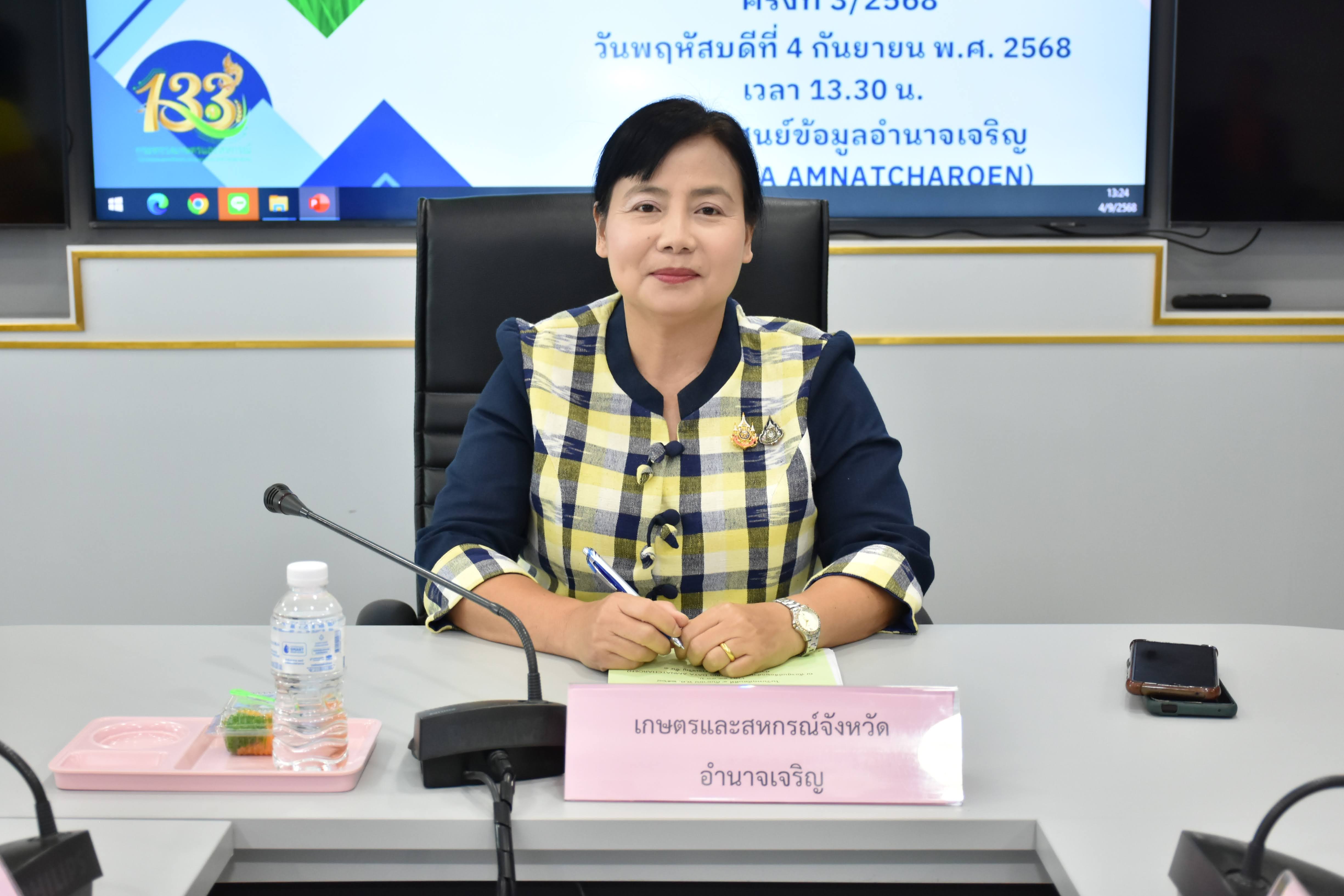 วันพฤหัสบดีที่ 4 กันยายน พ.ศ. 2568 เวลา 13.30 น.. นายทินกร เพียภูเขียว ปฏิรูปที่ดินจังหวัดอำนาจเจริญ ร่วมประชุมคณะกรรมการขับเคลื่อนงานด้านการเกษตรระดับจังหวัด จังหวัดอำนาจเจริญ (Single Command Province : SCP) ครั้งที่ 3/2568 โดยมีคณะกรรมการขับเคลื่อนงานด้านการเกษตร เข้าร่วมประชุม ณ ห้องประชุมศูนย์ข้อมูลอำนาจเจริญ (BIG DATA AMNATCHAROEN) ศาลากลางจังหวัดอำนาจเจริญ ชั้น 3 โดยมีนางปารีณา สอนอาจ เกษตรและสหกรณ์จังหวัดอำนาจเจริญ เป็นประธานการประชุมฯ พร้อมด้วยคณะกรรมการขับเคลื่อนงานด้านการเกษตร เพื่อติดตามสถานการณ์ด้านการเกษตร ด้านพืช ด้านปศุสัตว์ และด้านประมง ติดตามสถานการณ์ด้านชลประทาน ความก้าวหน้าการดำเนินงานโครงการตามแผนปฏิบัติการด้านการเกษตรและสหกรณ์จังหวัดอำนาจเจริญ ปีงบ 2568 ไตรมาสที่ 3 การขับเคลื่อนโครงการขับเคลื่อนการเกษตรระดับหมู่บ้านสู่การผลิตสินค้าเกษตรมูลค่าสูง ปีงบ 2568 การจัดทำแผนพัฒนาเกษตรและสหกรณ์ของจังหวัดอำนาจเจริญ (พ.ศ. 2566 – 2570 ฉบับทบทวน ประจำปีงบประมาณ 2570