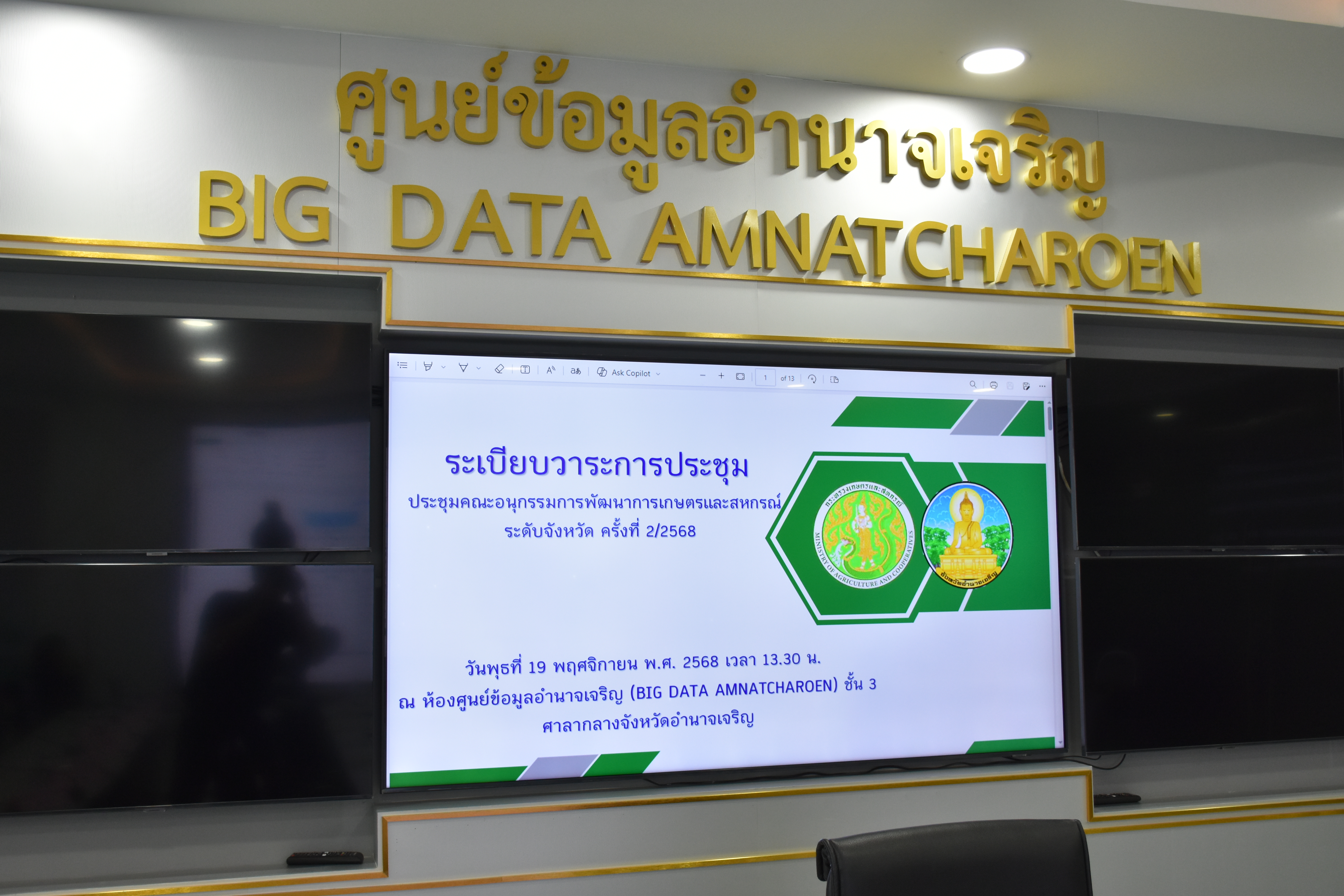 วันที่ 19 พฤศจิกายน 2568 เวลา 13.30 น นายทินกร เพียภูเขียว ปฏิรูปที่ดินจังหวัดอำนาจเจริญ ร่วมประชุมคณะอนุกรรมการพัฒนาการเกษตรและสหกรณ์ระดับจังหวัด ครั้งที่ 2/2568 โดยมีนายเสนีย์ ส้มเขียวหวาน รองผู้ว่าราชการจังหวัดอำนาจเจริญ รักษาราชการแทน ผู้ว่าราชการจังหวัดอำนาจเจริญ เป็นประธานการประชุมคณะอนุกรรมการพัฒนาการเกษตรและสหกรณ์ระดับจังหวัด ครั้งที่ 2/2568 นางปารีณา สอนอาจ เกษตรและสหกรณ์จังหวัดอำนาจเจริญ ทำหน้าที่เลขานุการ และมีคณะอนุกรรมการฯ เข้าร่วมประชุม ณ ห้องศูนย์ข้อมูลอำนาจเจริญ (BIG DATA AMNATCHAROEN) ชั้น 3 ศาลากลางจังหวัดอำนาจเจริญ