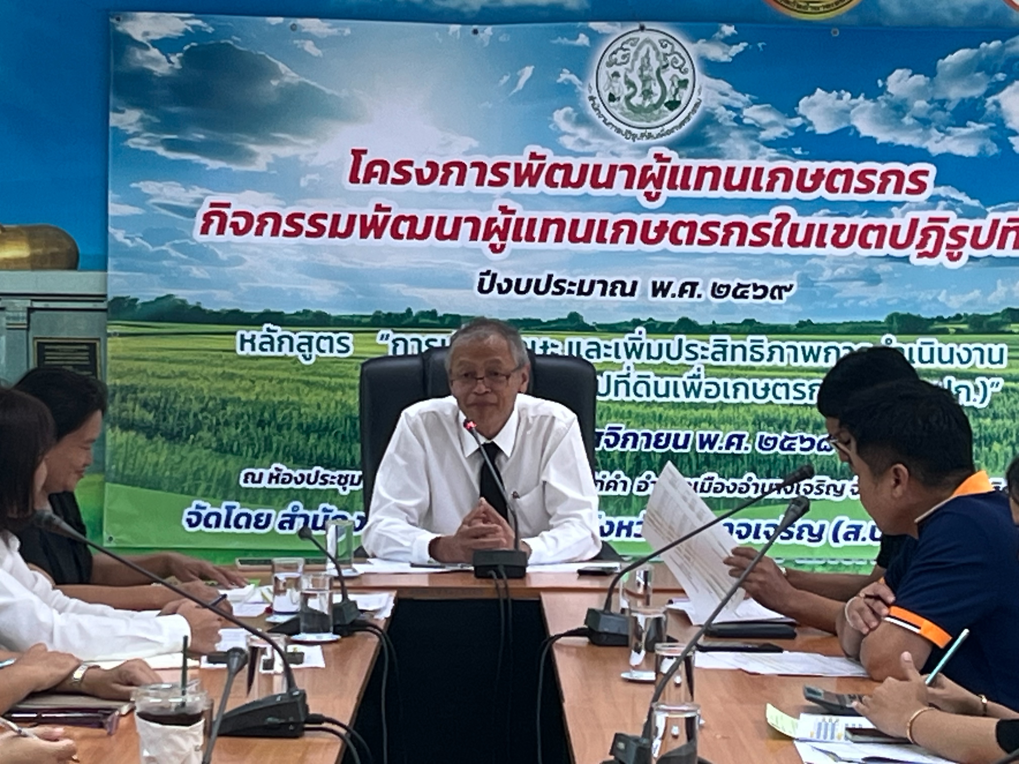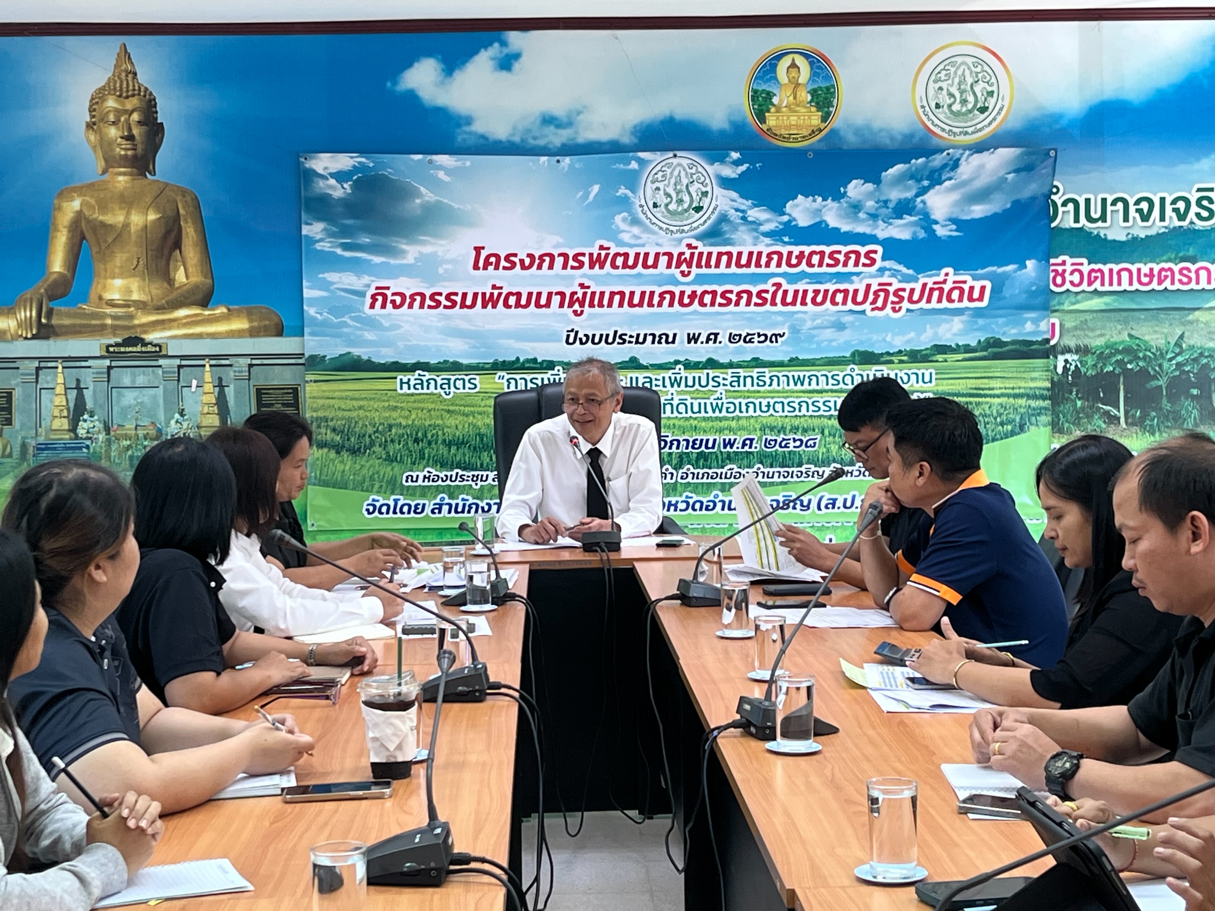 วันที่ 3 ธันวาคม 2568 นายวินัย จะระนิล ปฏิรูปที่ดินจังหวัดอำนาจเจริญ พร้อมด้วย ข้าราชการ และเจ้าหน้าที่ ส.ป.ก.อำนาจเจริญ ร่วมประชุมประจำเดือนธันวาคม 2568 เพื่อหารือข้อราชการ และติดตามแผน/ผลการปฏิบัติงาน โดยแต่ละกลุ่มฝ่ายรายงานผลการดำเนินงาน ณ ห้องประชุมสำนักงานการปฏิรูปที่ดินจังหวัดอำนาจเจริญ ต.ไก่คำ อ.เมืองอำนาจเจริญ จ.อำนาจเจริญ