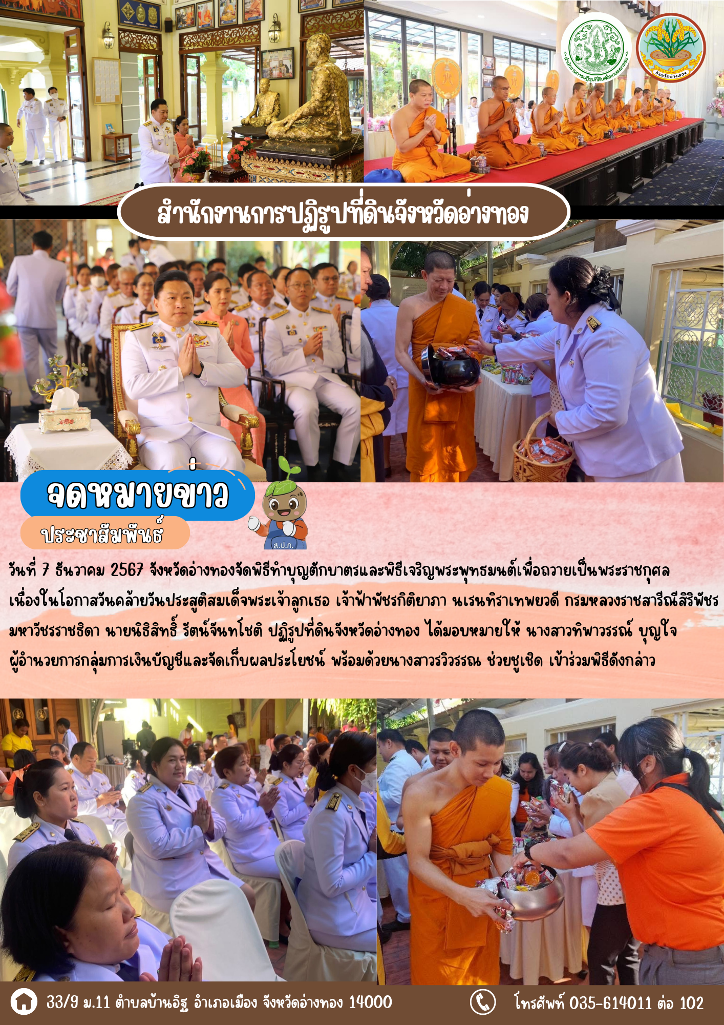 เข้าร่วมพิธีทำบุญตักบาตรและพิธีเจริญพระพุทธมนต์เพื่อถวายเป็นพระราชกุศล เนื่องในโอกาสวันคล้ายวันประสูติสมเด็จพระเจ้าลูกเธอ เจ้าฟ้าพัชรกิติยาภา นเรนทิราเทพยวดี กรมหลวงราชสารีณีสิริพัชร มหาวัชรราชธิดา