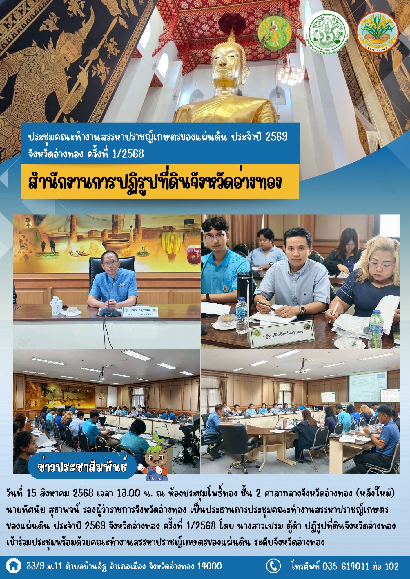 เข้าร่วมประชุมคณะทำงานสรรหาปราชญ์เกษตรของแผ่นดิน ประจำปี 2569 จังหวัดอ่างทอง ครั้งที่ 1/2568