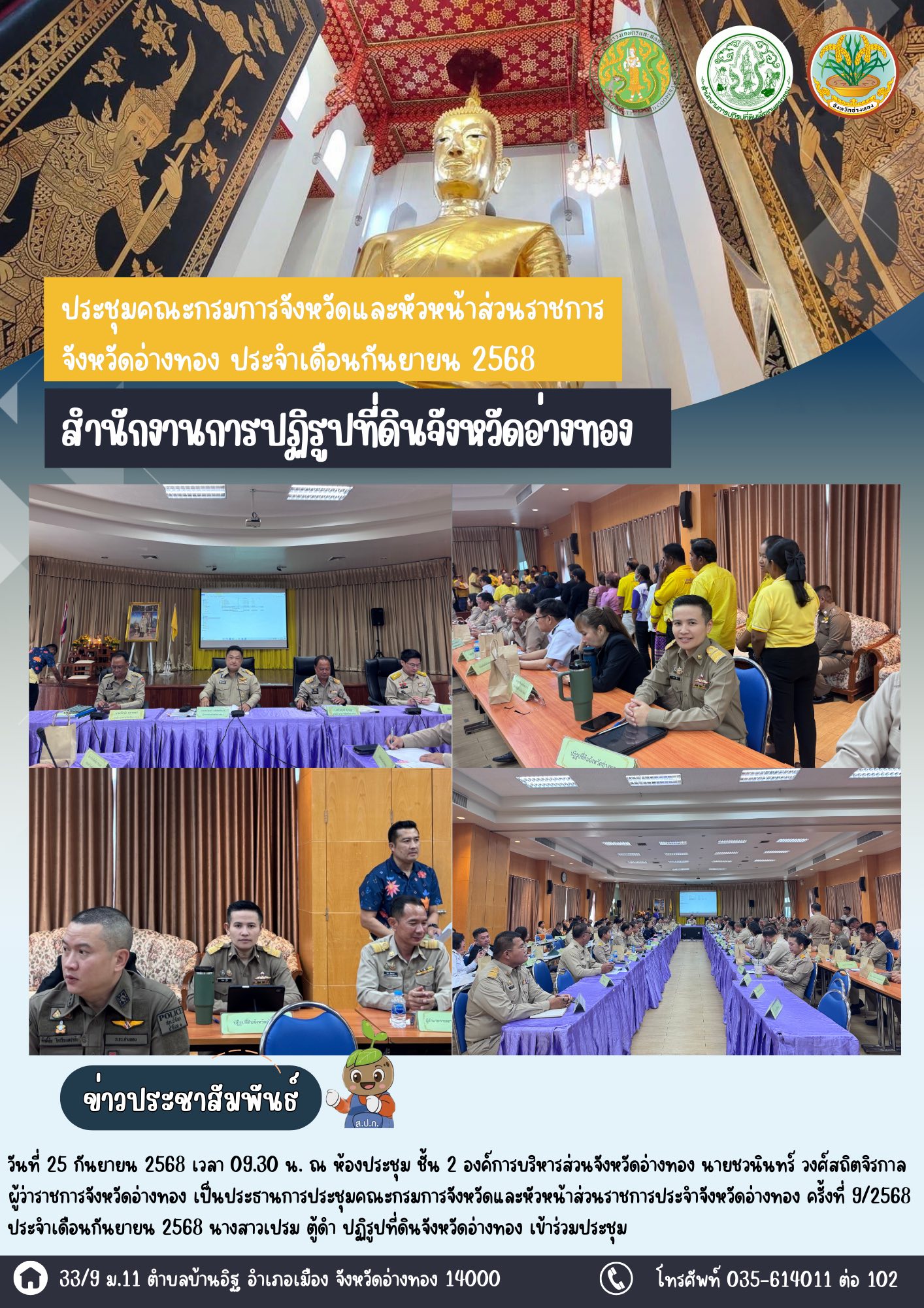 ประชุมคณะกรมการจังหวัดและหัวหน้าส่วนราชการประจำจังหวัดอ่างทอง ครั้งที่ 9/2568 ประจำเดือนกันยายน 2568