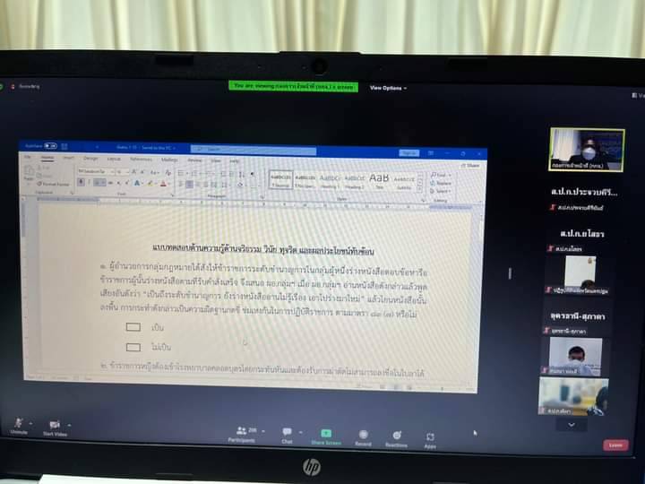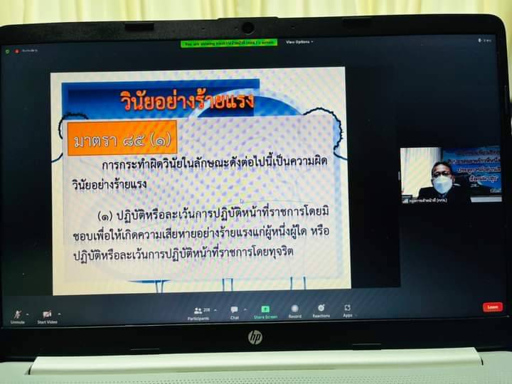 เมื่อวันที่ 2 กันยายน 2565 ดร.วิณะโรจน์ ทรัพย์ส่งสุข เลขาธิการสำนักงานการปฏิรูปที่ดินเพื่อเกษตรกรรม (ส.ป.ก.) มอบหมายให้ นางสาวเมตตา คุโณปถัมถ์ ผู้อำนวยการกองการเจ้าหน้าที่ เป็นประธานในพิธีเปิดการอบรมโครงการให้ความรู้ด้าน จริยธรรม วินัย ทุจริต และผลประโยชน์ทับซ้อนสัญจร พร้อมด้วย นายอำนาจ เขม่นกิจ ปฏิรูปที่ดินจังหวัดประจวบคีรีขันธ์ โดยมี นายสนธยา ทองดี นิติกรชำนาญการ เป็นผู้กล่าวรายงาน ผ่านระบบออนไลน์ (Zoom Meeting) ณ ส.ป.ก. ถนนราชดำเนินนอก กรุงเทพฯ และห้องประชุม ส.ป.ก.ประจวบคีรีขันธ์