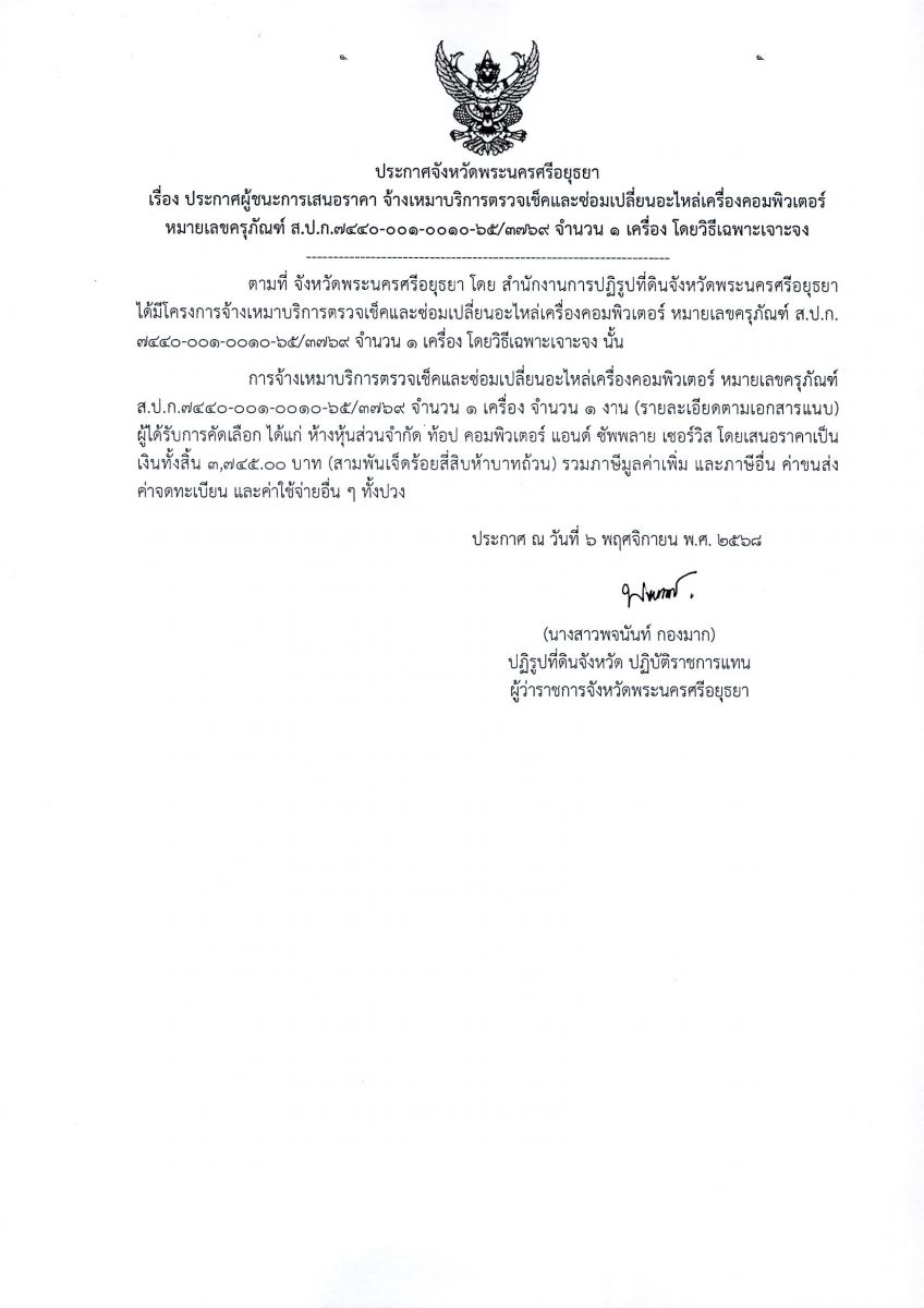 ประกาศผู้ชนะการเสนอราคาซ่อมเปลี่ยนอะไหล่คอมพิวเตอร์ 6 พ_ย_ 68_0001.pdf