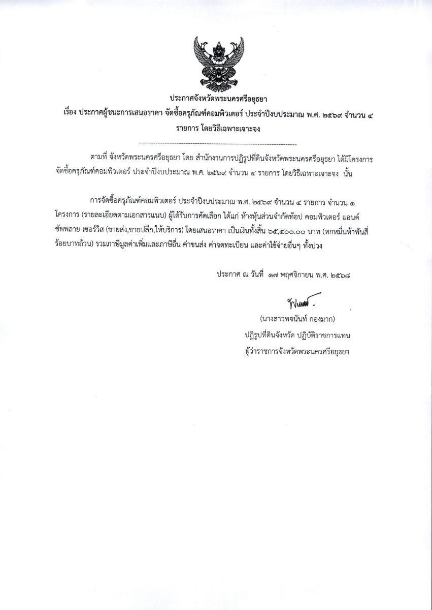 ประกาศผู้ชนะการเสนอราคา จัดซื้อครุภัณฑ์คอมพิวเตอร์ ประจำปีงบประมาณ พ.ศ. 2569 จำนวน 4 รายการ โดยวิธีเฉพาะเจาะจง
