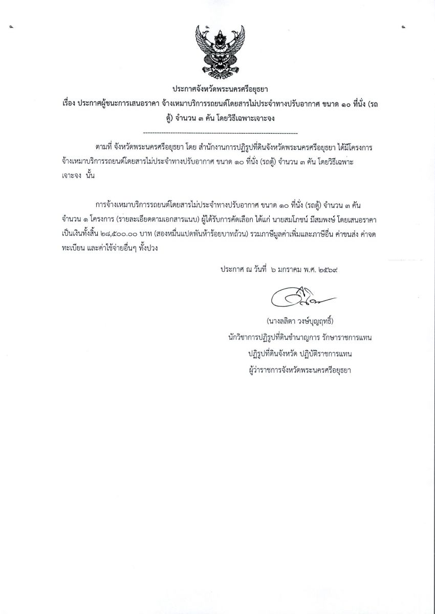 ประกาศผู้ชนะการเสนอราคา จ้างเหมาบริการรถยนต์โดยสารไม่ประจำทางปรับอากาศ ขนาด 10 ที่นั้ง (รถตู้) จำนวน 3 คัย โดยวิธีเฉพาะเจาะจง
