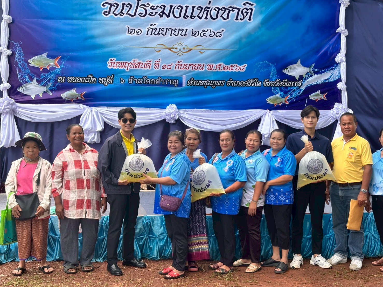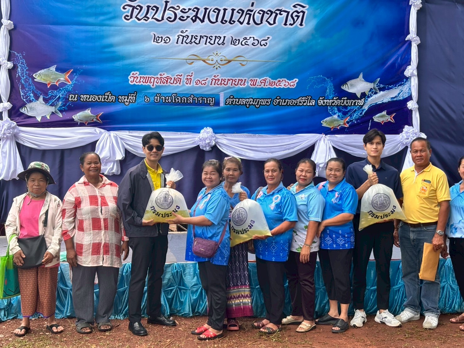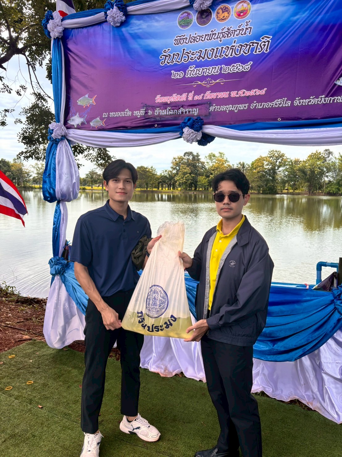 นางสาวสงกรานต์ ตะนนท์ ปฏิรูปที่ดินจังหวัดบึงกาฬ มอบหมายให้นายเอกพนธ์ เฮ้าปาน นิติกรปฏิบัติการ พร้อมด้วยเจ้าหน้าที่กลุ่มกฎหมาย ร่วมกิจกรรมปล่อยพันธุ์สัตว์น้ำ เนื่องในวันประมงแห่งชาติ ประจำปี ๒๕๖๘ ระดับจังหวัด เพื่อรณรงค์ให้ประชาชนตระหนักถึงคุณค่าของทรัพยากรสัตว์น้ำ ตลอดจนมีส่วนร่วมในการคนุรักษ์และฟื้นฟูทรัพยากรสัตว์น้ำ ให้สามารถใช้ประโยชน์ได้อย่างยั่งยืน ณ หนองเป็ด หมู่ที่ ๑๑ บ้านโนนไทยสิทธิ์ ตำบลชุมภูพร อำเภอศรีวิไล จังหวัดบึงกาฬ
