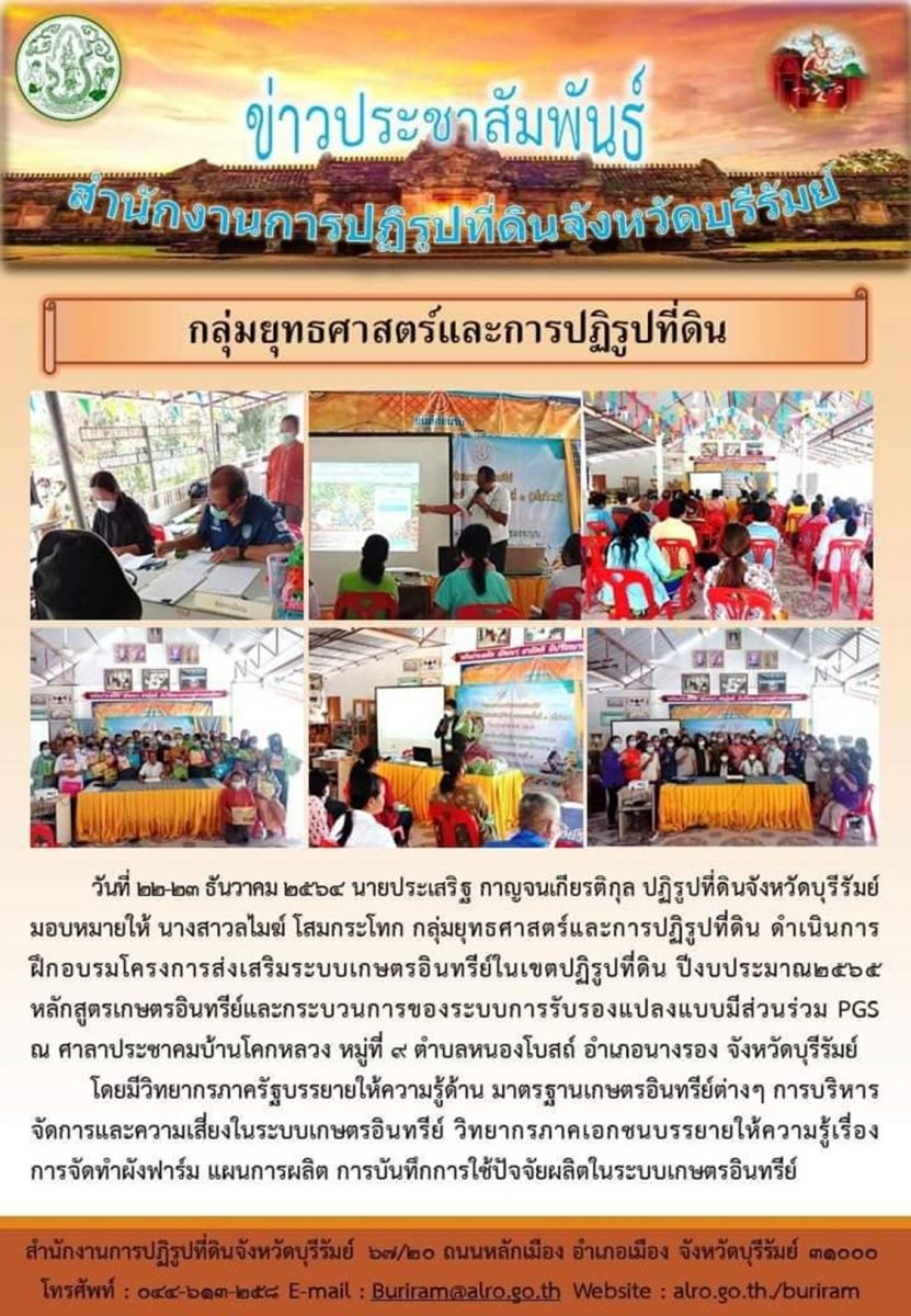 ส.ป.ก.บุรีรัมย์ จัดการฝึกอบรมโครงการส่งเสริมระบบเกษตรอินทรีย์ในเขตปฏิรูปที่ดิน