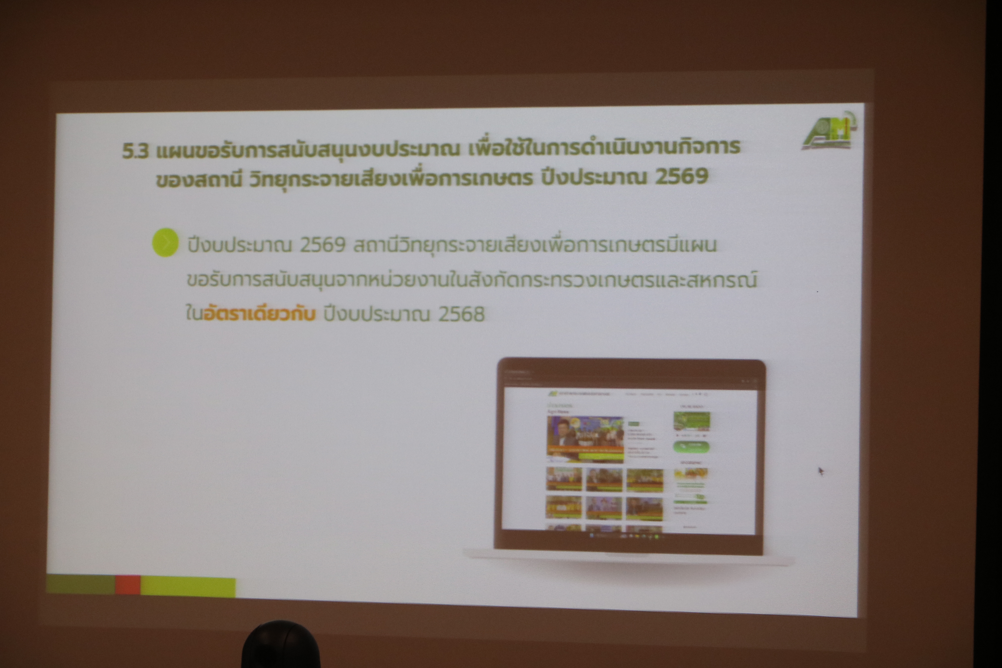 3. แผนขอรับการสนับสนุนงบประมาณ เพื่อใช้ในการดำเนินงานกิจการของสถานีวิทยุกระจายเสียงเพื่อการเกษตร ปีงบประมาณ 2569