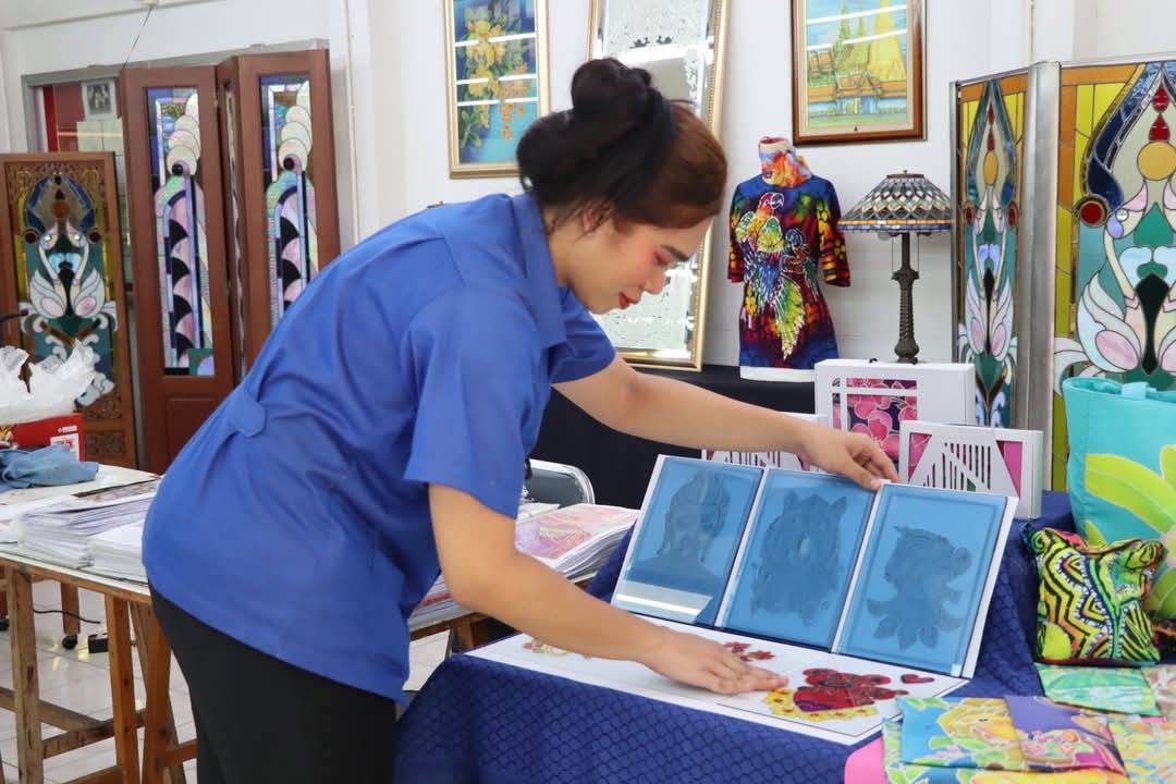การจัดการเรียนการสอนและการพัฒนาผลิตภัณฑ์ ประจำเดือน เมษายน 2568 แผนกช่างบาติก การดำเนินงานภายในแผนกมีครูช่าง จำนวน 3 ราย คือ นางสุสดา มุ่งสวัสดิ์ หัวหน้าแผนก นายเทพรัตน์ มุ่งสวัสดิ์ และนายสมศักดิ์ จันทร์เพ็ญ ทำหน้าที่สอนและประดิษฐ์คิดค้นผลงานใหม่ ๆ โดยอยู่ระหว่างดำเนินงานพัฒนาผลงานการผลิต ผลิตภัณฑ์ ผ้าพันตัวบาติก จากผ้าฟูจี และผ้าตัดชุดบาติก จากผ้าไหมไทย และจัดการสอนหลักสูตรฝึกอบรมอาชีพเสริมนอกภาคการเกษตร (ศิลปหัตถกรรม) ระยะยาว ให้ผู้เข้ารับการฝึกอบรม จำนวน 2 ราย ในวิชาการทำผ้าบาติกเทคนิคผสม ระดับขั้นปลาย โดยมีขั้นตอนการเรียน การสอน ตามลำดับตั้งแต่ขั้นตอน การออกแบบผลิตภัณฑ์ การออกแบบลวดลาย กำหนดโครงงานสี และขั้นตอนการปฏิบัติงาน โดยมีวัสดุ อุปกรณ์ที่ต้องจัดเตรียมดังนี้ ผ้า สีย้อม พาราฟิน เจนติ้ง พู่กัน โซเดียมซิลิเกท หลังจากเรียนสำเร็จแล้วจะมีผลงานเป็นผลิตภัณฑ์หลากหลาย ลวดลายแปลกใหม่ สวยงาม เช่น ผ้าเช็ดหน้า ผ้าพันคอ ผ้าพันตัว เสื้อ และกระเป๋า เพื่อนำความรู้ไปสร้างอาชีพเสริมเพิ่มรายได้ และนำความรู้ไปถ่ายทอดกับเกษตรกร หรือเป็นวิทายากรตามสถานที่ศึกษาได้