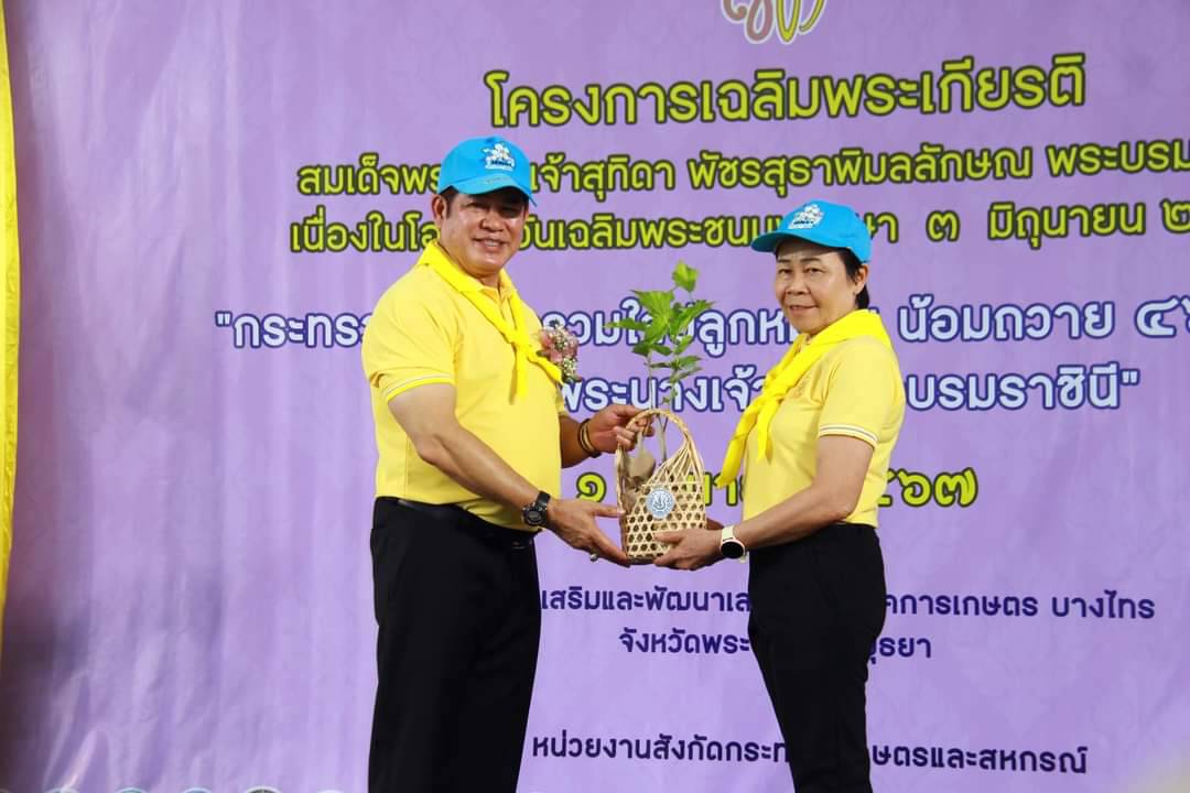 วันที่ 1 มิถุนายน 2567 นายวิณะโรจน์ ทรัพย์ส่งสุข เลขาธิการ ส.ป.ก. พร้อมด้วย นายสุรชัย ยุทธชนะ รองเลขาธิการ ส.ป.ก. นายวิวรรธน์ สงประเสริฐ ผู้อำนวยการสำนักพัฒนาและถ่ายทอดเทคโนโลยี นายสรรเพชร พูลศิริ ผู้อำนวยการสำนักพัฒนาพื้นที่ปฏิรูปที่ดิน นายพิษณุ สำรี ผู้อำนวยการศูนย์ส่งเสริมและพัฒนาอาชีพเสริมนอกภาคการเกษตร นางสาวพจนันท์ กองมาก ปฏิรูปที่ดินจังหวัดพระนครศรีอยุธยา และเจ้าหน้าที่ ส.ป.ก. เข้าร่วมโครงการ "กระทรวงเกษตรรวมใจปลูกหม่อน น้อมถวาย 46 พรรษา สมเด็จพระนางเจ้าฯ พระบรมราชินี" โดยมี ร้อยเอก ธรรมนัส พรหมเผ่า รัฐมนตรีว่าการกระทรวงเกษตรและสหกรณ์ เป็นประธาน พร้อมด้วย นายอรรถกร ศิริลัทธยากร รัฐมนตรีช่วยว่าการกระทรวงเกษตรและสหกรณ์ และผู้บริหารหน่วยงานในสังกัดกระทรวงเกษตรและสหกรณ์ เข้าร่วมกิจกรรม ณ ศูนย์ส่งเสริมและพัฒนาอาชีพเสริมนอกภาคการเกษตร อำบางไทร จังหวัดพระนครศรีอยุธยา