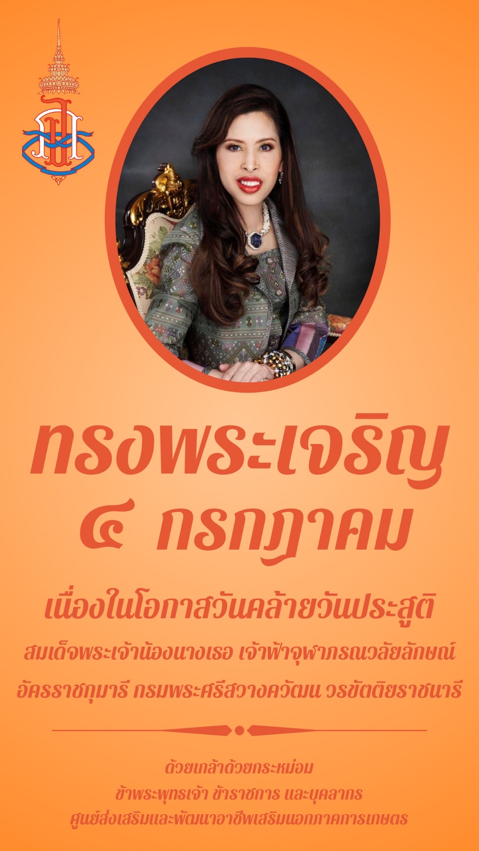 4 กรกฎาคม 2567 วันคล้ายวันประสูติ สมเด็จพระเจ้าน้องนางเธอ เจ้าฟ้าจุฬาภรณวลัยลักษณ์ อัครราชกุมารี กรมพระศรีสวางควัฒน วรขัตติยราชนารี