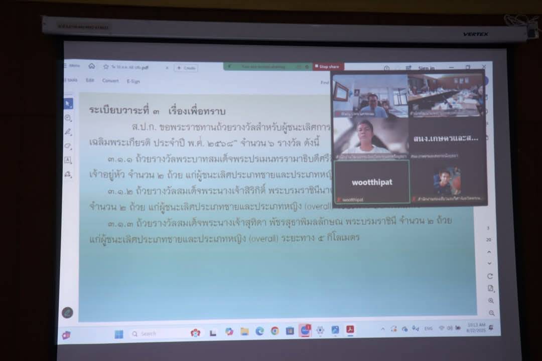 วันที่ 22 สิงหาคม 2568 นายสุรชัย ยุทธชนะ รองเลขาธิการสำนักงานการปฏิรูปที่ดินเพื่อเกษตรกรรม พร้อมด้วย นางสาวสิริมา แจ้งกระจ่าง ผู้อำนวยการศูนย์ส่งเสริมและพัฒนาอาชีพเสริมนอกภาคการเกษตร ผู้อำนวยการกลุ่ม/ฝ่าย และเจ้าหน้าที่ที่เกี่ยวข้อง ดำเนินการจัดประชุมเตรียมความพร้อมการจัดโครงการ “งานเดิน - วิ่ง เฉลิมพระเกียรติ ประจำปี พ.ศ. 2568" ร่วมกับตัวแทนหน่วยงานจากอำเภอบางไทร ปฏิรูปที่ดินจังหวัดพระนครศรีอยุธยา โรงพยาบาลบางไทร ประชาสัมพันธ์จังหวัดพระนครศรีอยุธยา สถาบันส่งเสริมศิลปหัตถกรรมไทย(องค์การมหาชน) สถานีตำรวจภูธรช้างใหญ่ สมาคมอยุธยารวมใจหน่วยกู้ภัยอยุธยาจุด สภ.ช้างใหญ่ และชมรมนักวิ่งกรุงเก่า จังหวัดพระนครศรีอยุธยา ณ ห้องประชุมอาคาร 100 ปี ศูนย์ส่งเสริมและพัฒนาอาชีพเสริมนอกภาคการเกษตร อำเภอบางไทร จังหวัดพระนครศรีอยุธยา