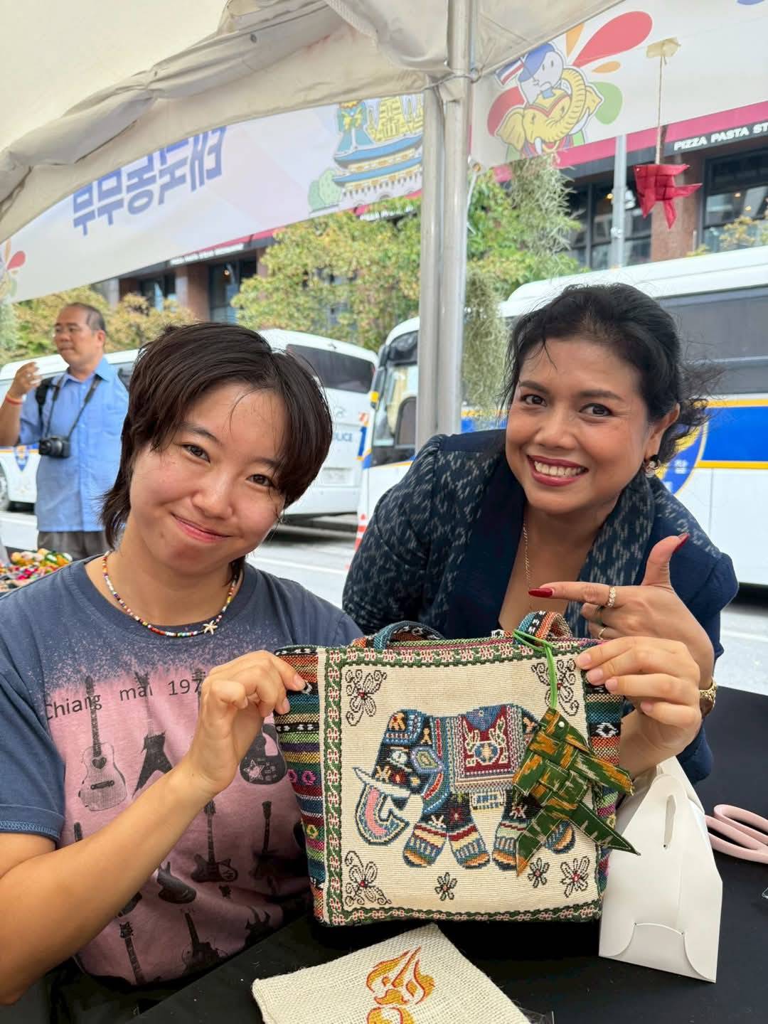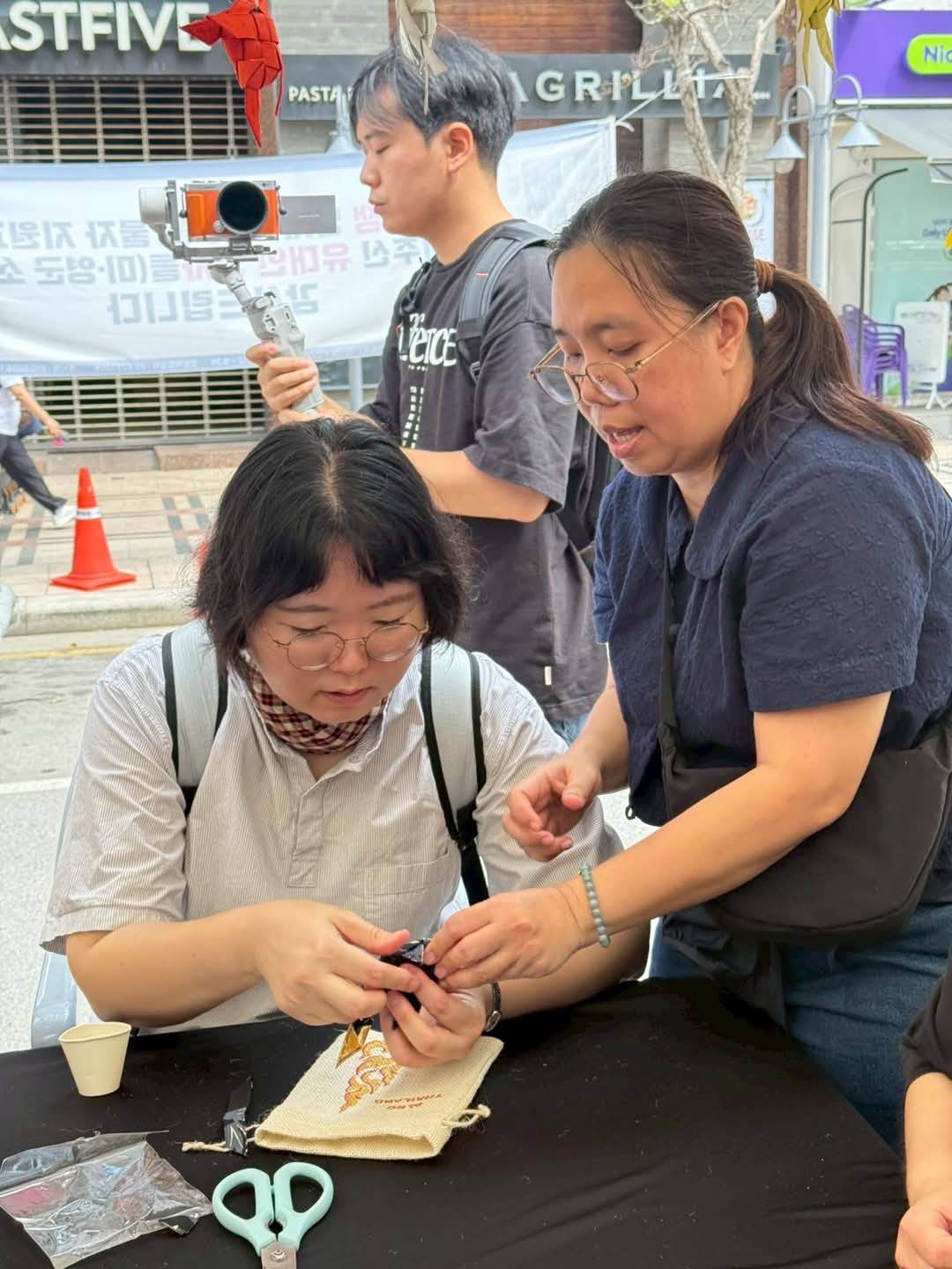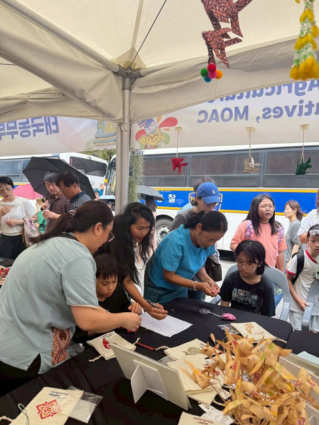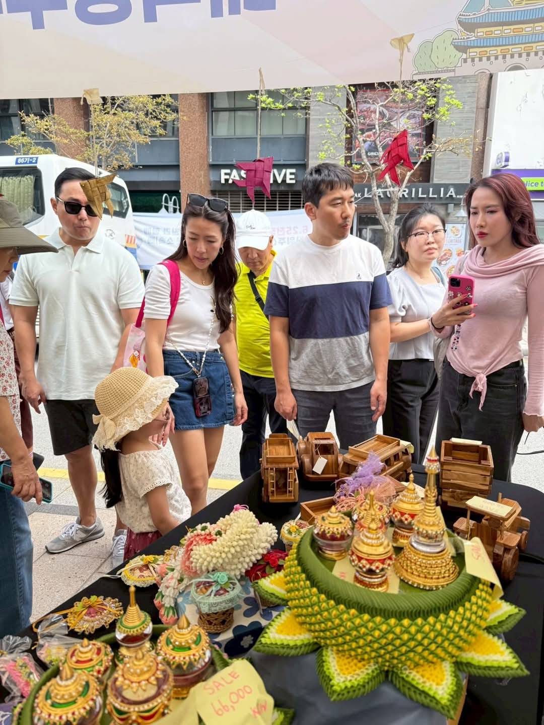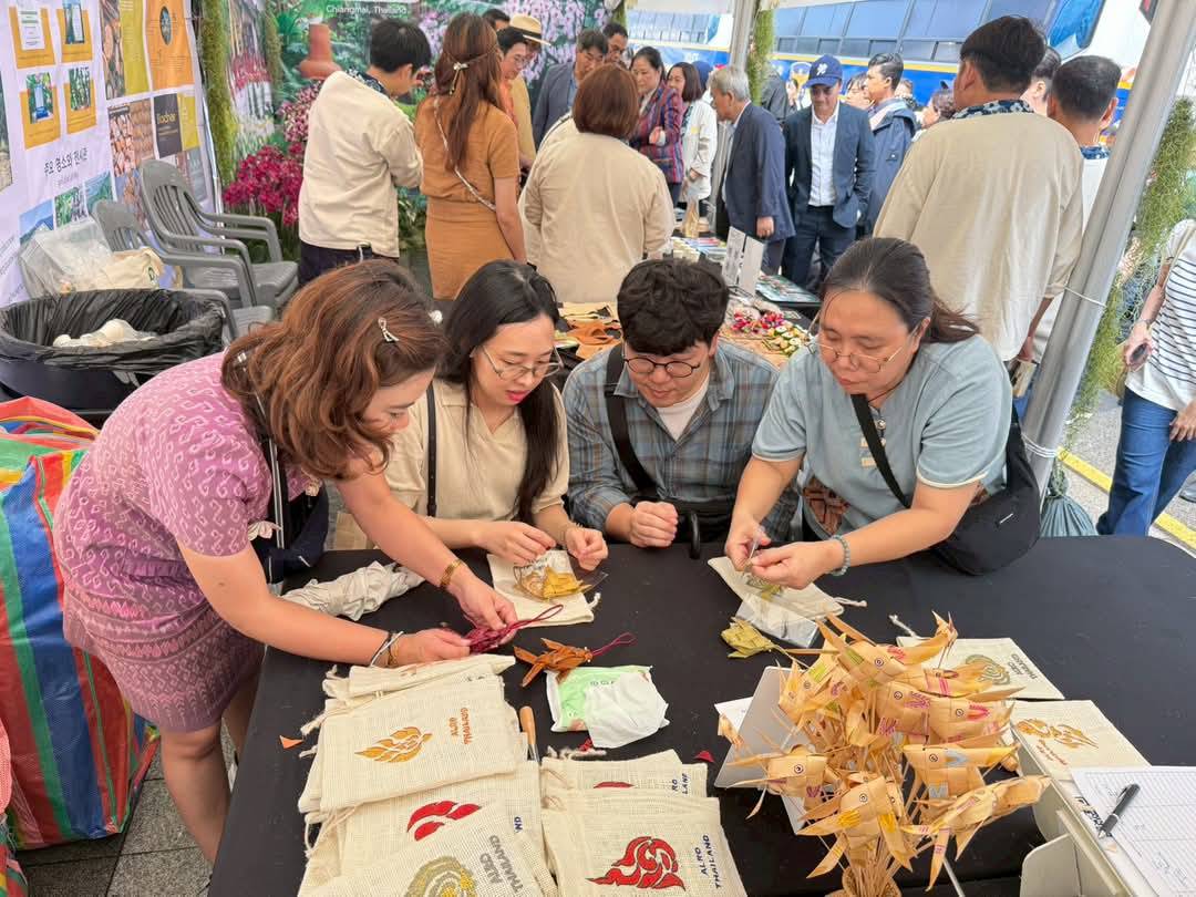 - กิจกรรมที่ 3 เปิดให้มีการสาธิตและฝึกปฏิบัติงานศิลปหัตถกรรม WORK SHOP หลักสูตร 태국 물고기 키링 (แทกุก มุลโกกี คีริง) แปล แทกุก = ไทย มุลโกกี = ปลา คีริง = พวงกุญแจ หรือ พวงกุญแจปลาไทย โดยรังสรรค์จากเศษผ้าไหมปลาตะเพียนสานจากผ้าไหมไทย
