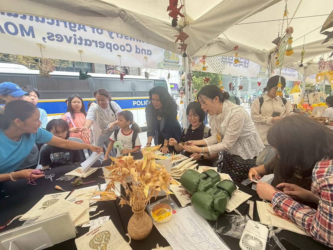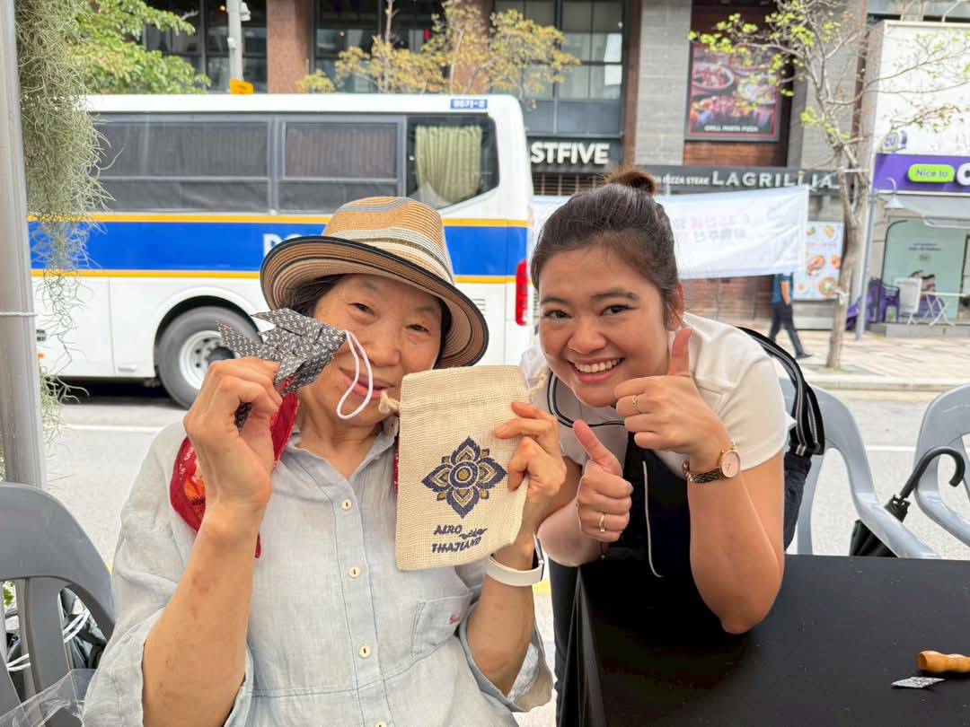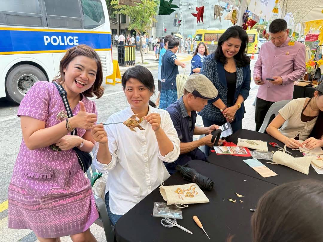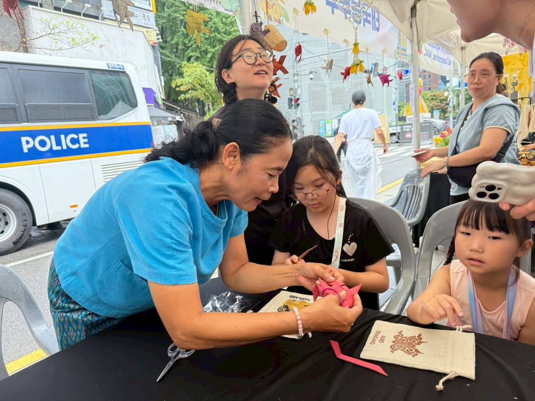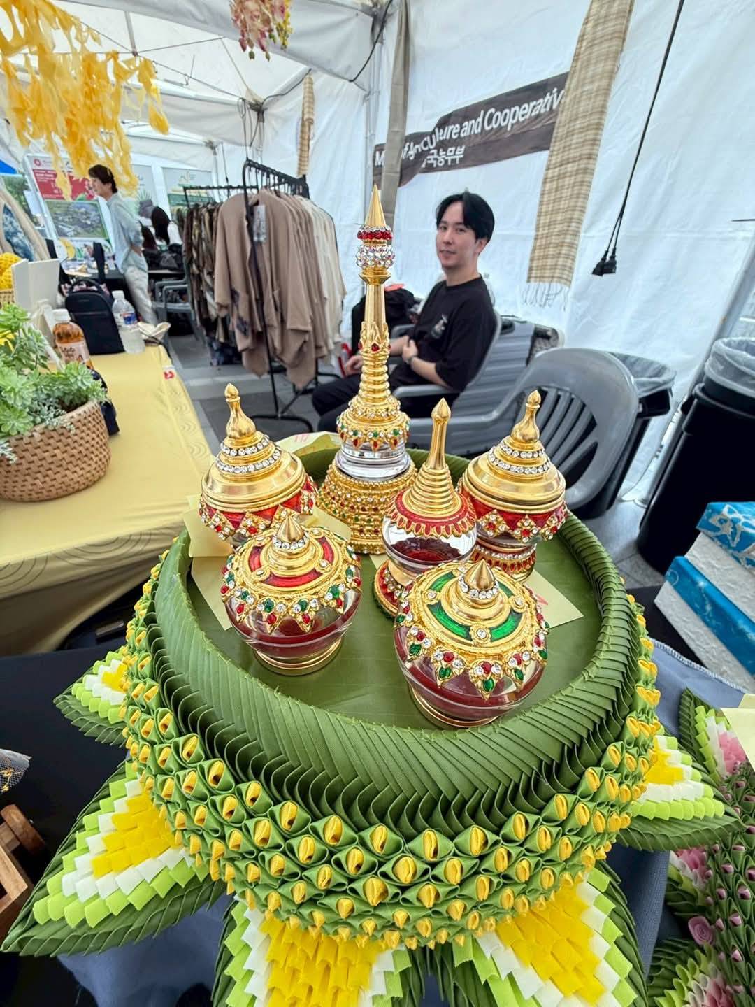 - กิจกรรมที่ 3 เปิดให้มีการสาธิตและฝึกปฏิบัติงานศิลปหัตถกรรม WORK SHOP หลักสูตร 태국 물고기 키링 (แทกุก มุลโกกี คีริง) แปล แทกุก = ไทย มุลโกกี = ปลา คีริง = พวงกุญแจ หรือ พวงกุญแจปลาไทย โดยรังสรรค์จากเศษผ้าไหมปลาตะเพียนสานจากผ้าไหมไทย