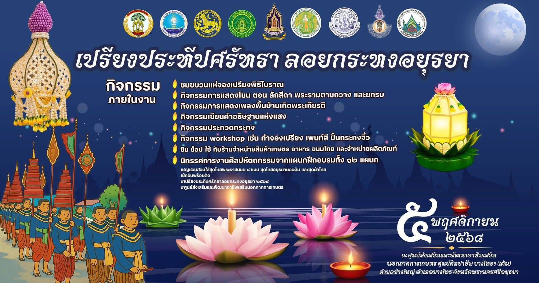 ลอยกระทงปีนี้ ขอเชิญชวนทุกท่านร่วมสัมผัสความงดงามของประเพณีลอยกระทง ในงาน“เปรียงประทีปศรัทธา ลอยกระทงอยุธยา 2568”