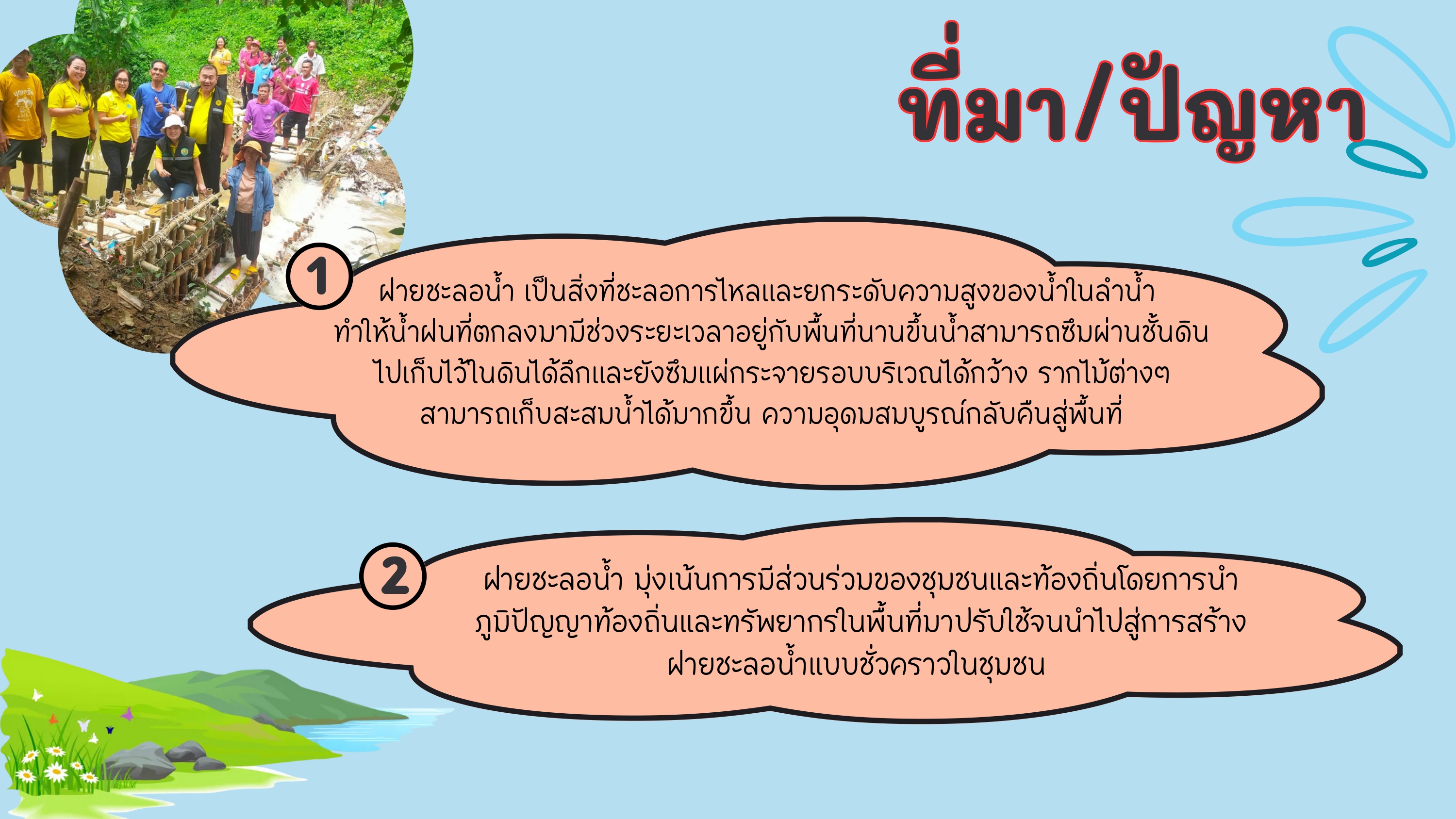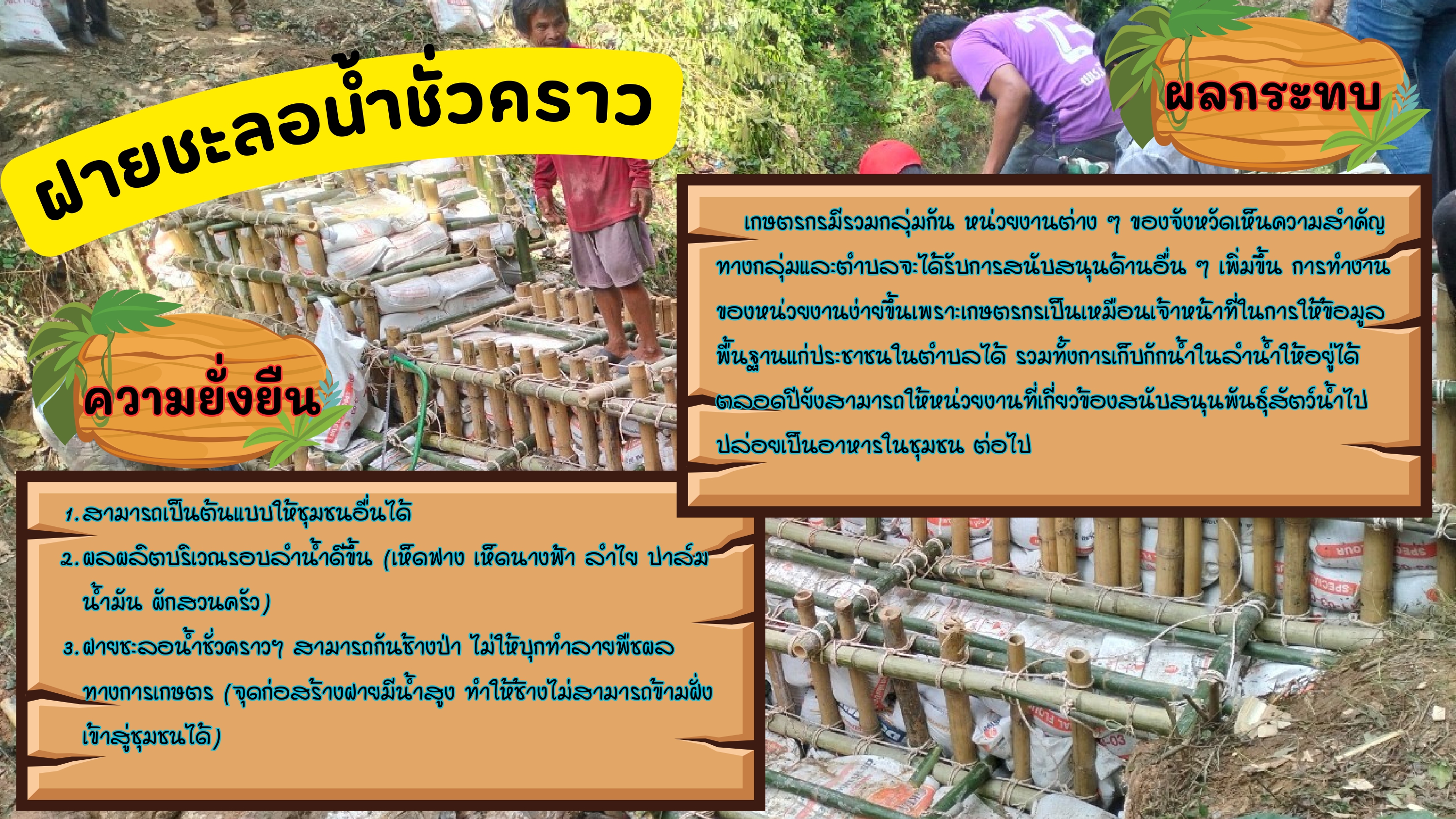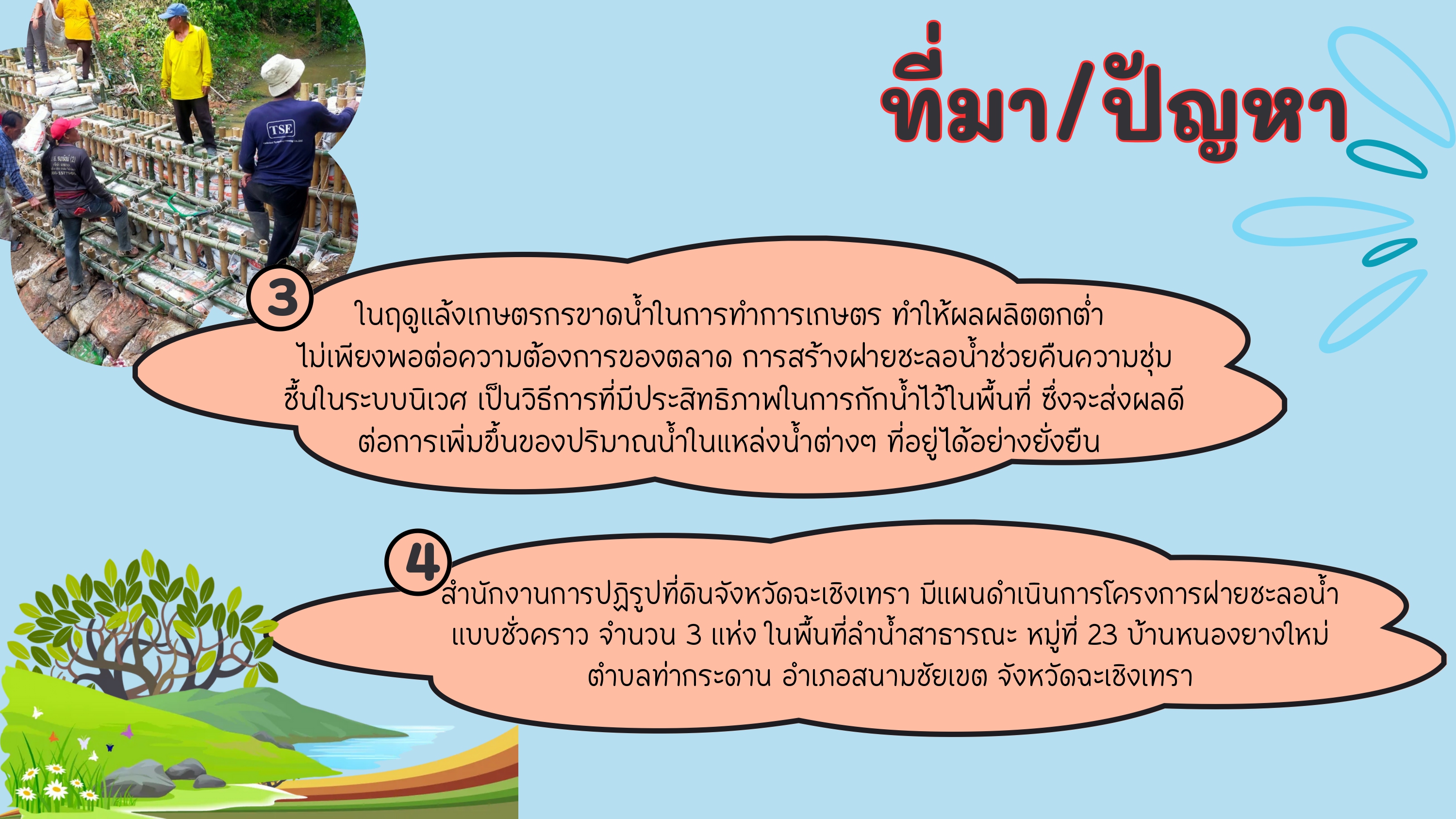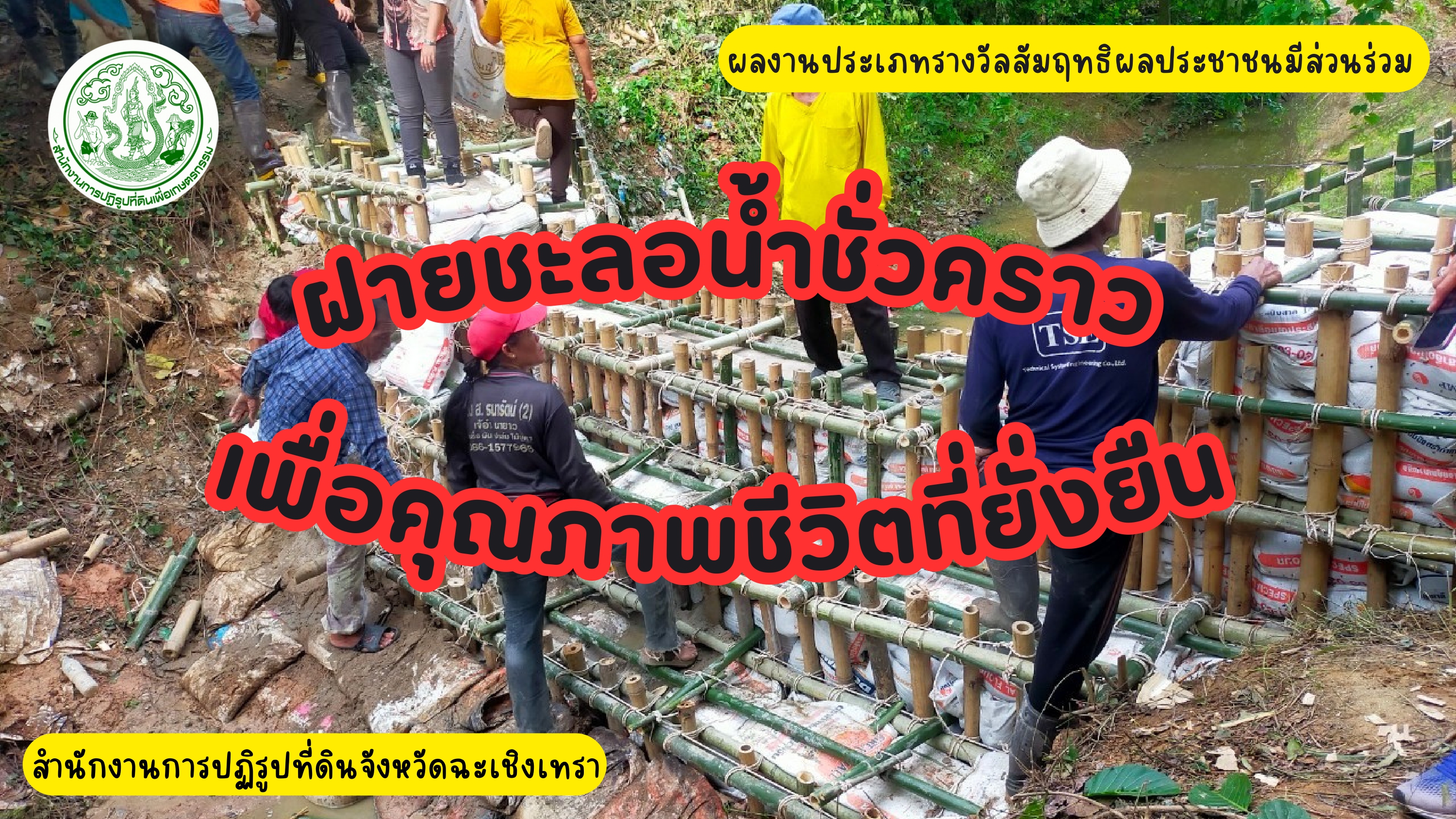"ผลงานประเภทรางวัลสัมฤทธิผลประชาชนมีส่วนร่วม ฝายชะลอน้ำชั่วคราวเพื่อคุณภาพชีวิตที่ยั่งยืน" ส.ป.ก.ฉะเชิงเทรา