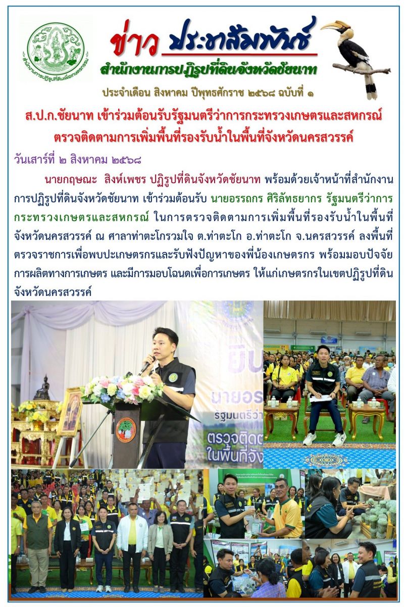 ประกาศสำนักงานการปฏิรูปที่ดินจังหวัดชัยนาท เรื่อง ผลการพิจารณาให้เกษตรกรได้รับโฉนดเพื่อการเกษตรตามกฎหมายการปฏิรูปที่ดินเพื่อเกษตรกรรม