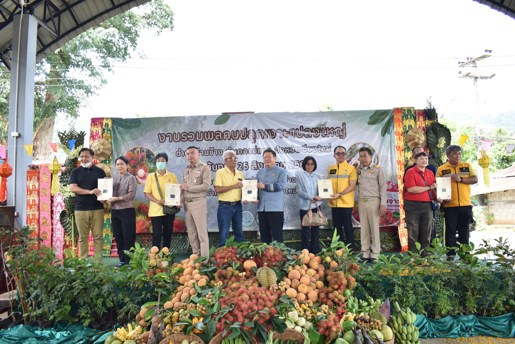 วันที่ 25 สิงหาคม 2568 สำนักงานการปฏิรูปที่ดินจังหวัดเชียงใหม่ โดย นายดำรงค์ ไชยโย ปฏิรูปที่ดินจังหวัดเชียงใหม่ พร้อมด้วยเจ้าหน้าที่ ส.ป.ก.เชียงใหม่ ร่วมกับกลุ่มวิสาหกิจชุมชนแปลงใหญ่เงาะ ตำบลบ้านช้าง อำเภอแม่แตง จัดงาน "รวมพล คนปลูกเงาะแปลงใหญ่" ณ ศาลาเอนกประสงค์บ้านเก๊ามะค่า หมู่ที่ 2 ตำบลบ้านช้าง อำเภอแม่แตง จังหวัดเชียงใหม่ โดยมี นายชัชวาลย์ ปัญญา รองผู้ว่าราชการจังหวัดเชียงใหม่ รักษาราชการแทนผู้ว่าราชการจังหวัดเชียงใหม่ เป็นประธานในพิธีเปิดงาน เพื่อสนับสนุนกิจกรรมแปลงใหญ่ในเขตปฏิรูปที่ดิน พร้อมประชาสัมพันธ์การผลิตเงาะแปลงใหญ่ เพิ่มช่องทางการจําหน่ายผลผลิตเงาะ รวมถึงการสร้างเครือข่ายการดำเนินกิจกรรมของวิสาหกิจชุมชนแปลงใหญ่เงาะ ตำบลบ้านช้าง อำเภอแม่แตง โดยมีหัวหน้าส่วนราชการ นายอำเภอแม่แตง เกษตรกรและประชาชน รวม 150 คน เข้าร่วมกิจกรรม และภายในงาน ส.ป.ก.เชียงใหม่ ได้มีการมอบโฉนดเพื่อการเกษตรให้แก่เกษตรกร จำนวนทั้งสิ้น 90 ราย