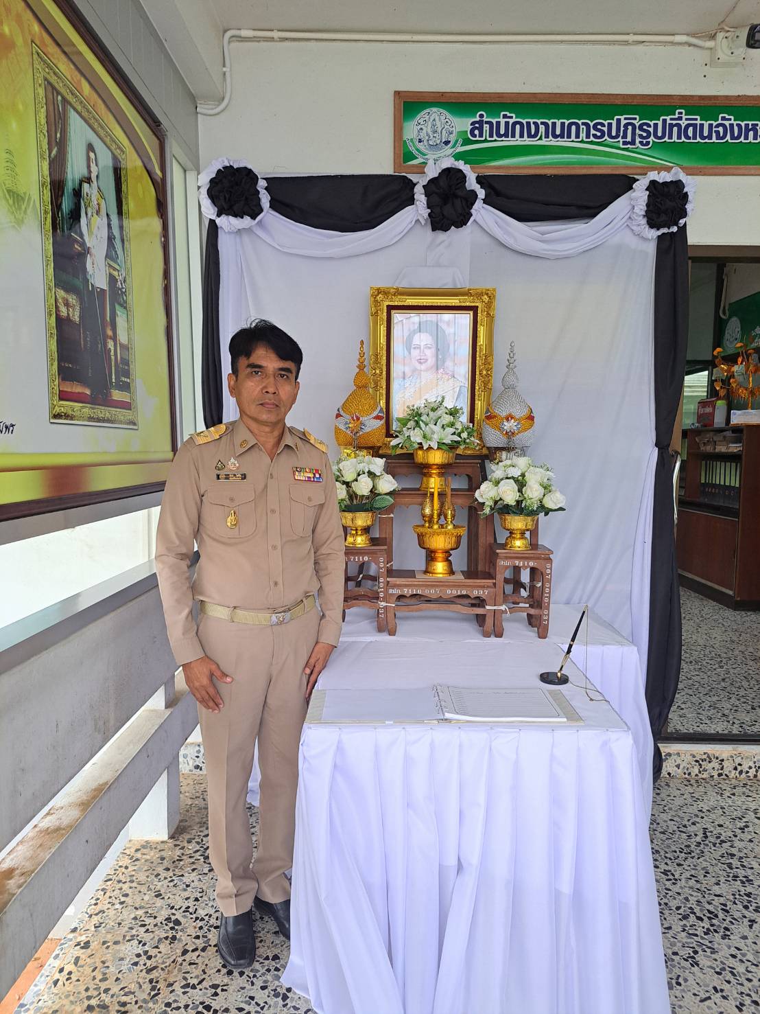 วันที่ 27 ตุลาคม 2568 นายนิกร ไพริน ปฏิรูปที่ดินจังหวัดชุมพร พร้อมด้วยข้าราชการและเจ้าหน้าที่ สำนักงานการปฏิรูปที่ดินจังหวัดชุมพร ร่วมกันลงนามแสดงความไว้อาลัยเบื้องหน้าพระฉายาลักษณ์ สมเด็จพระนางเจ้าสิริกิติ์ พระบรมราชินีนาถ พระบรมราชชนนีพันปีหลวง ด้วยสำนึกในพระมหากรุณาธิคุณตราบนิจนิรันดร์