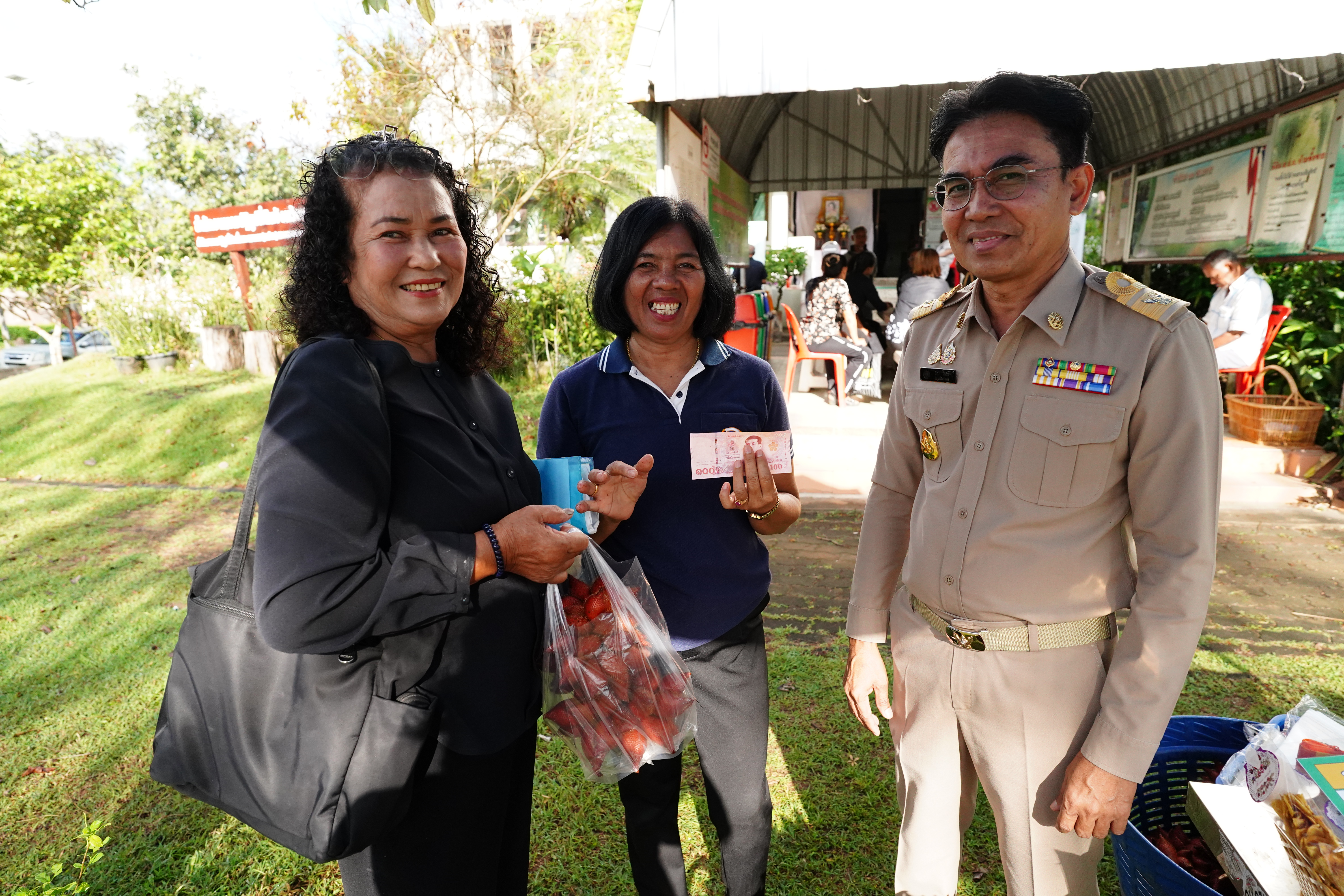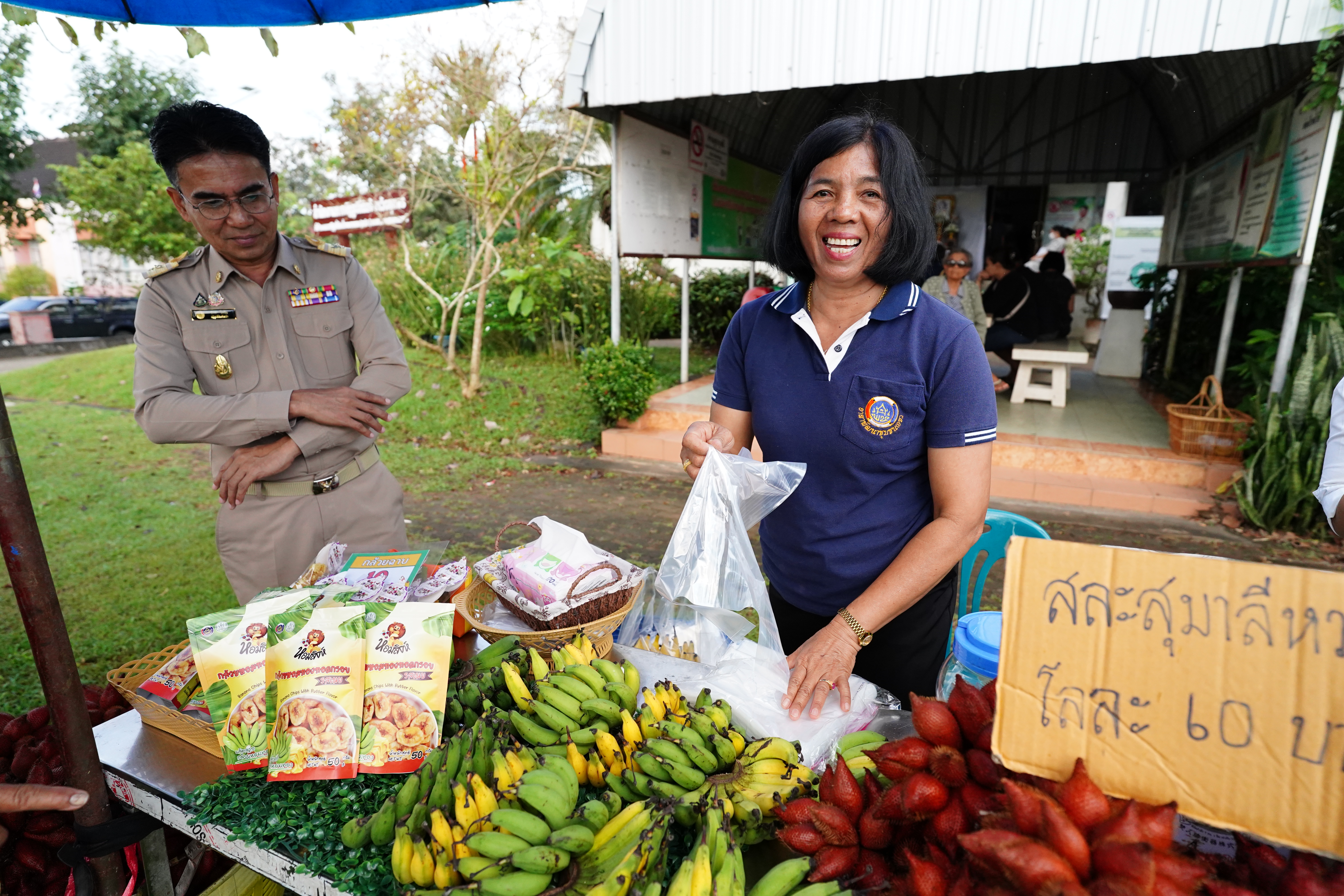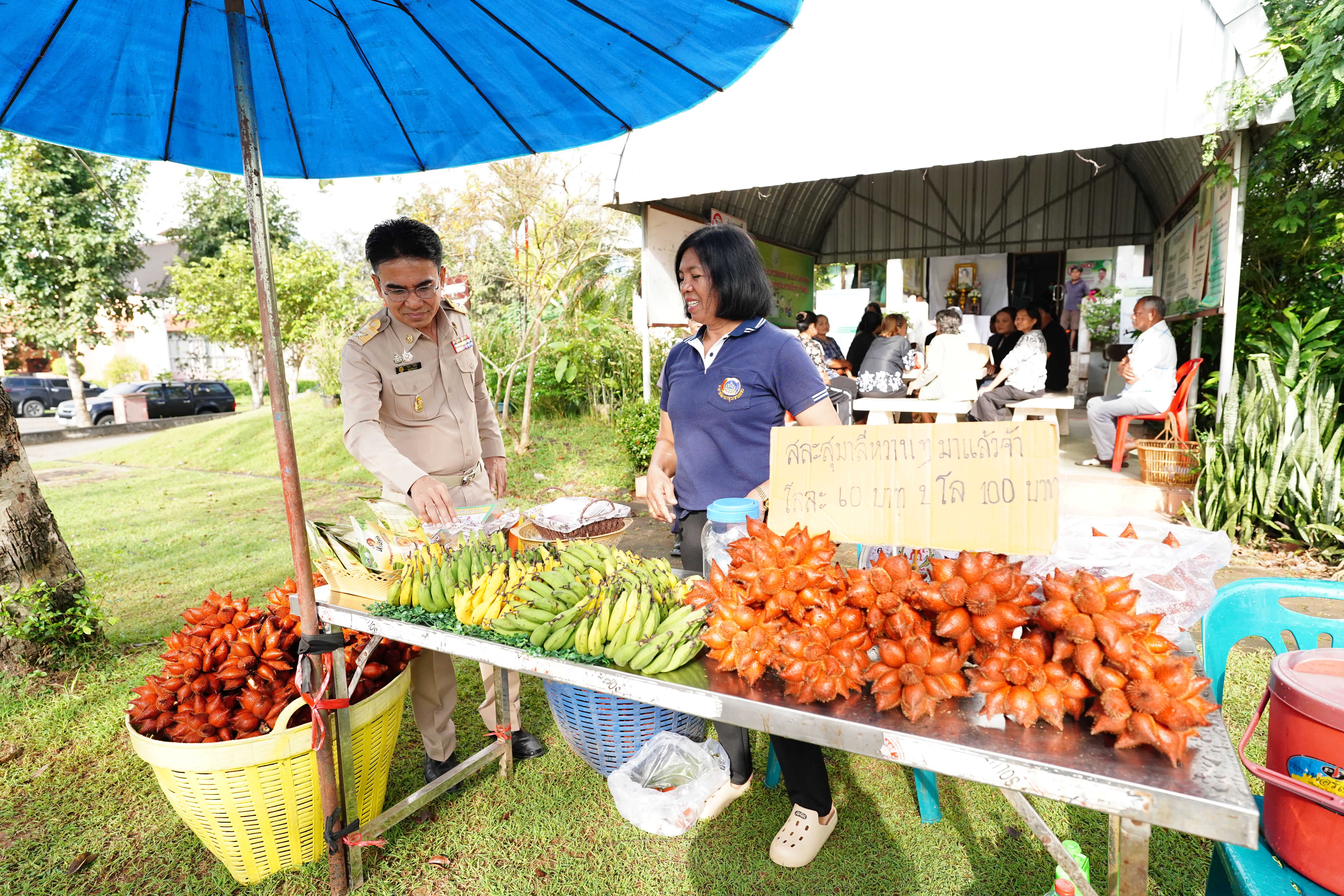 วันจันทร์ที่ 17 พฤศจิกายน พ.ศ. 2568 นายนิกร ไพริน ปฏิรูปที่ดินจังหวัดชุมพร เยี่ยมชม และให้กำลังใจ วิสาหกิจชุมชนกลุ่มเกษตรกรทำสวนกล้วยตำบลถ้ำสิงห์ ที่มาจำหน่าย กล้วยหอมทอง กล้วยแปรรูป กล้วยเล็บมือนาง สละสุมาลี และ สละลอยแก้ว ณ ตลาดนัดเกษตรกร บริเวณหน้า สำนักงานการปฏิรูปที่ดินจังหวัดชุมพร (ส.ป.ก.ชุมพร)