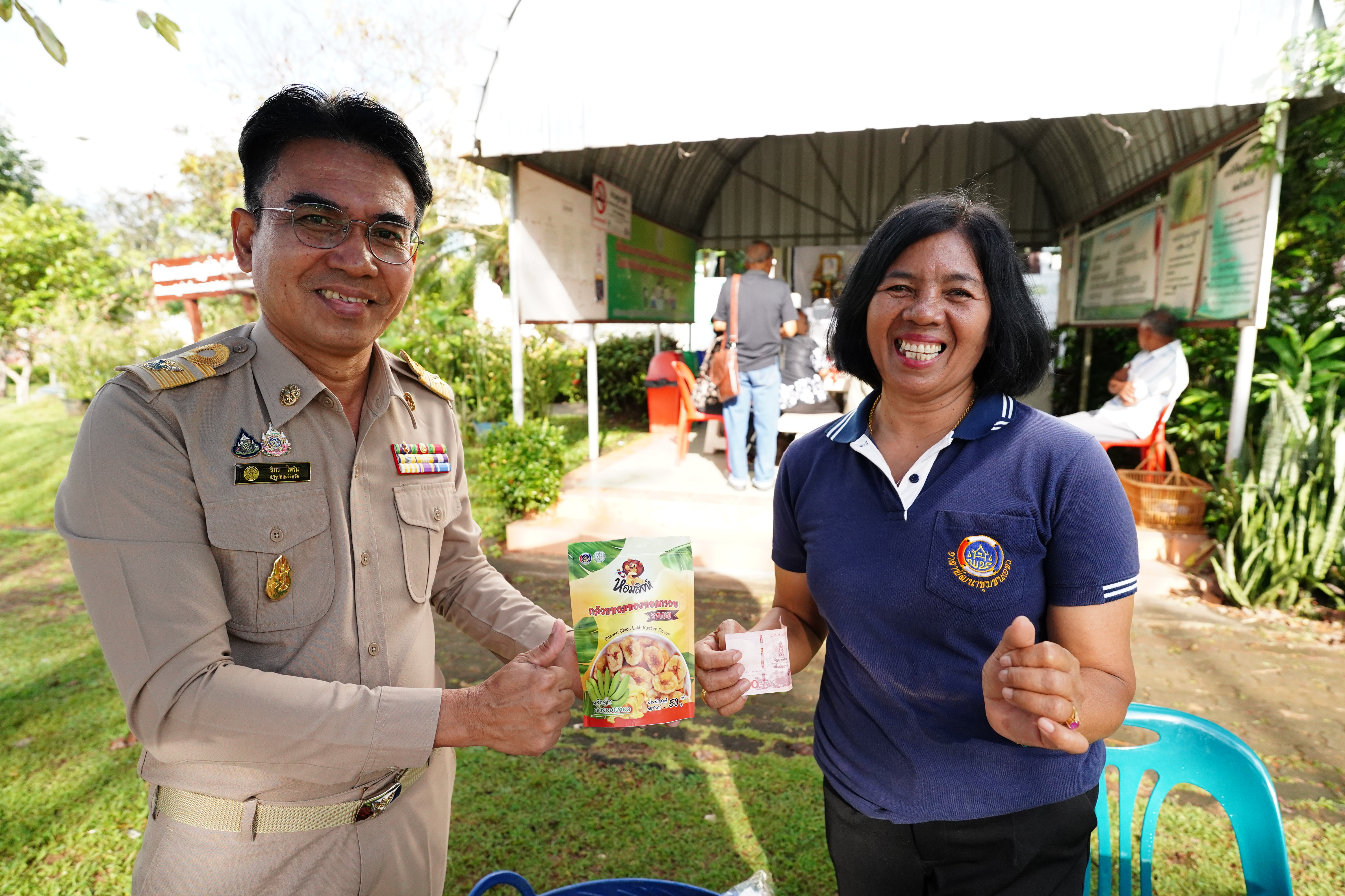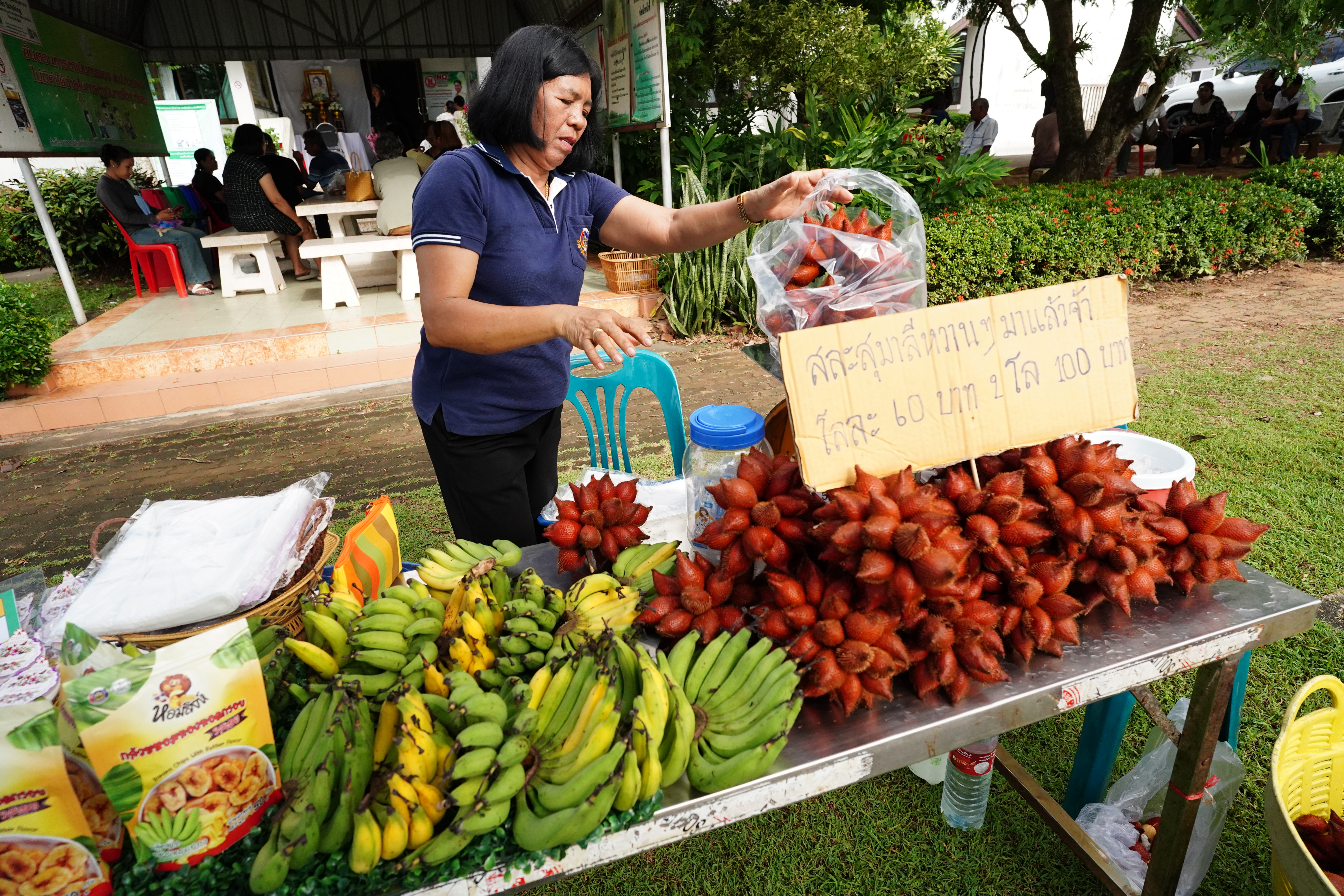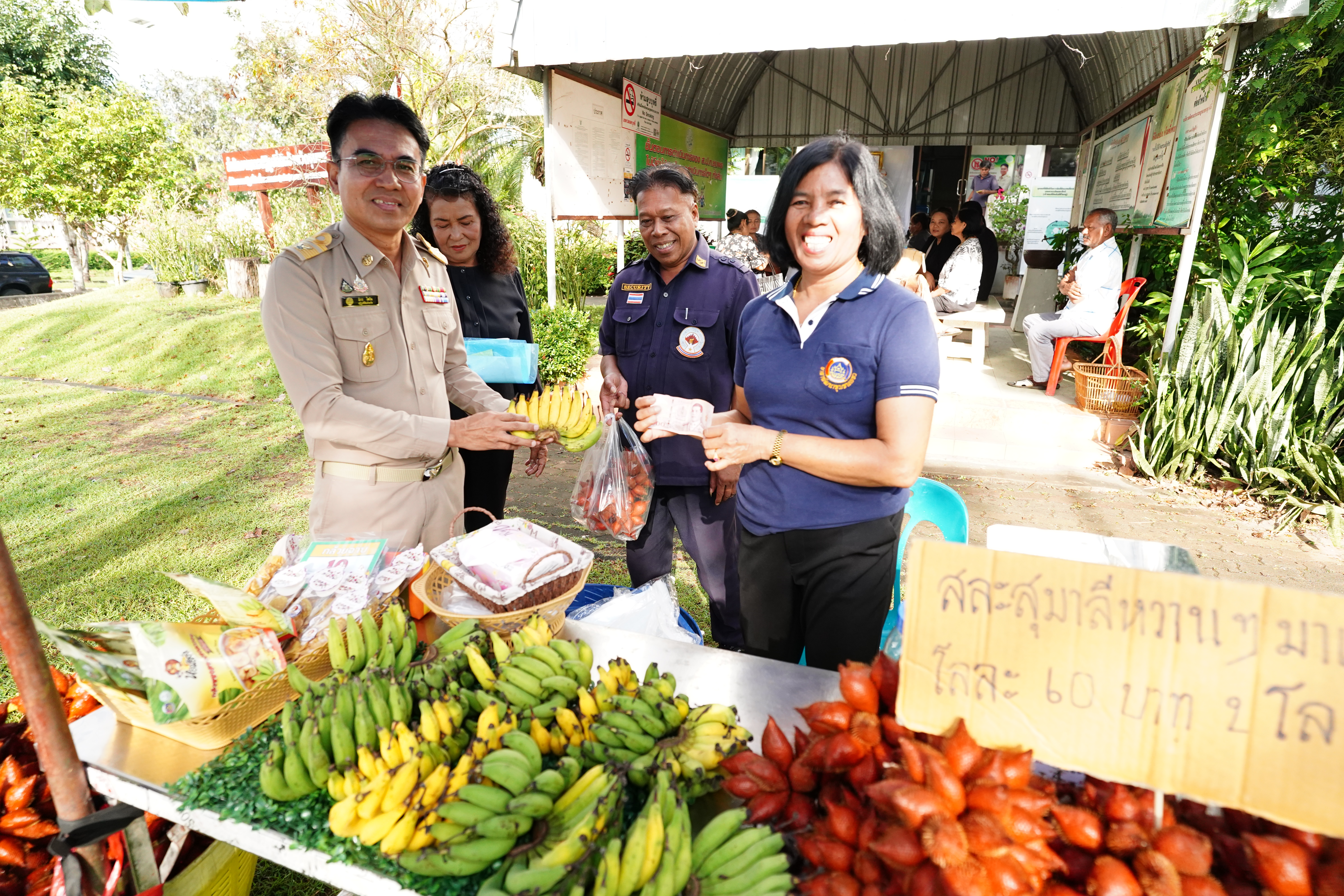 วันจันทร์ที่ 17 พฤศจิกายน พ.ศ. 2568 นายนิกร ไพริน ปฏิรูปที่ดินจังหวัดชุมพร เยี่ยมชม และให้กำลังใจ วิสาหกิจชุมชนกลุ่มเกษตรกรทำสวนกล้วยตำบลถ้ำสิงห์ ที่มาจำหน่าย กล้วยหอมทอง กล้วยแปรรูป กล้วยเล็บมือนาง สละสุมาลี และ สละลอยแก้ว ณ ตลาดนัดเกษตรกร บริเวณหน้า สำนักงานการปฏิรูปที่ดินจังหวัดชุมพร (ส.ป.ก.ชุมพร)