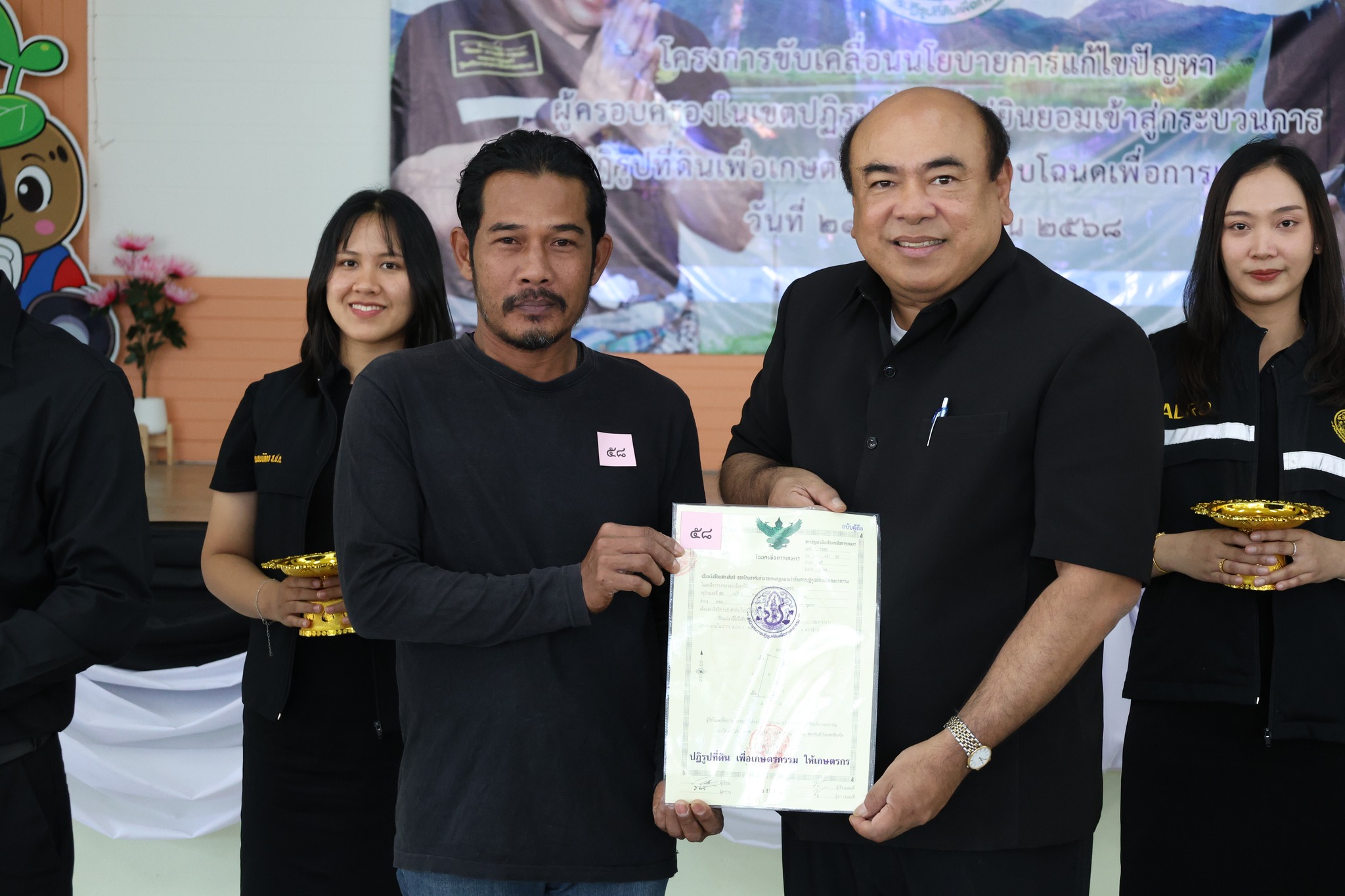 วันศุกร์ที่ 21 พฤศจิกายน 2568 สำนักงานการปฏิรูปที่ดินจังหวัดชุมพร (ส.ป.ก.ชุมพร) เดินหน้าขับเคลื่อนนโยบายเร่งด่วน แก้ไขปัญหาการครอบครองที่ดินในเขตปฏิรูปโดยมิชอบ พร้อมติดปิดป้ายประกาศแจ้งให้เข้าสู่กระบวนการปฏิรูปที่ดินเพื่อเกษตรกรรม และจัดพิธีมอบโฉนดเพื่อการเกษตร ให้แก่เกษตรกร 60 ราย เพื่อยกระดับคุณภาพชีวิตและสร้างความมั่นคงในที่ดินทำกิน