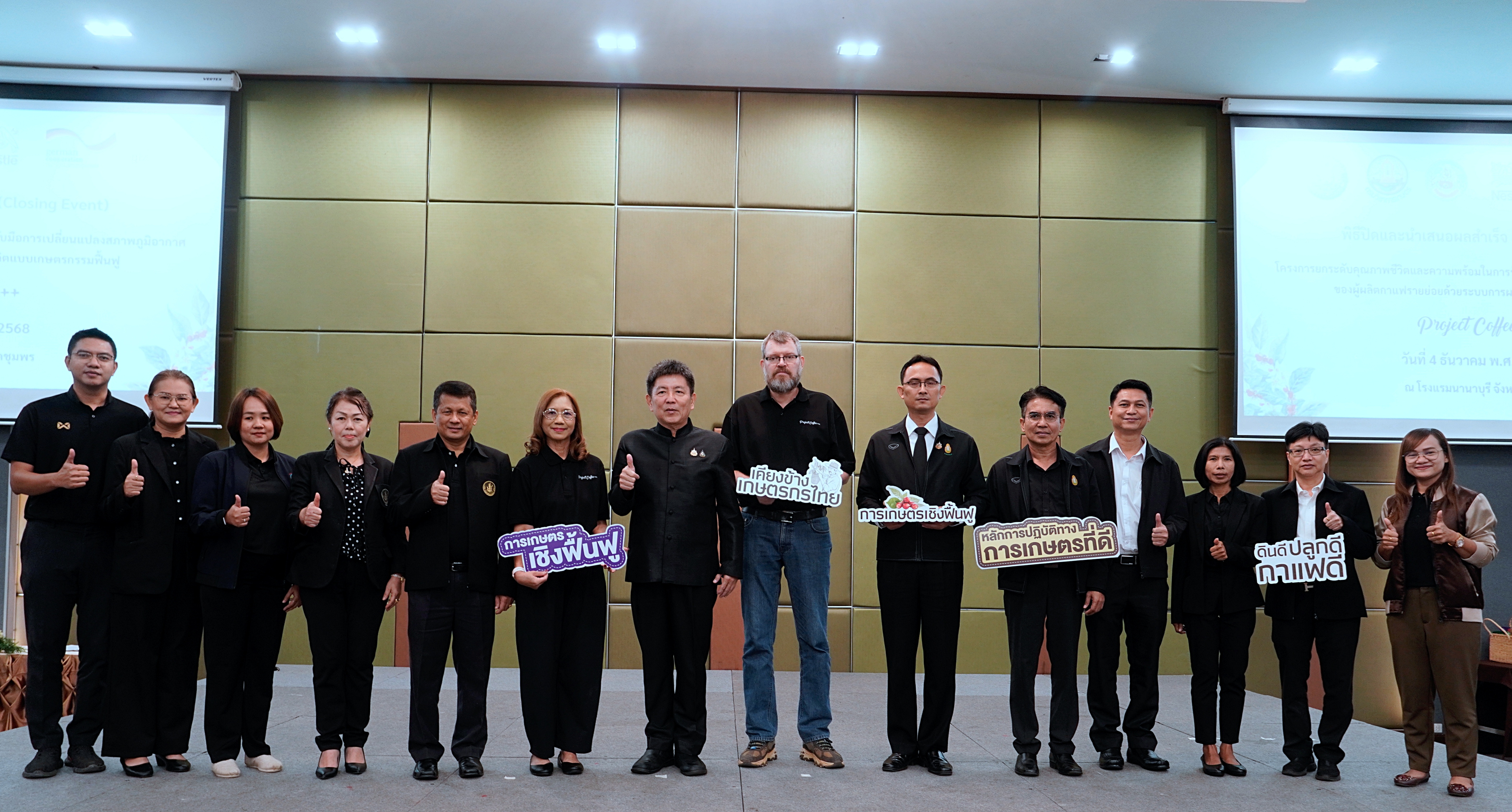 โดยมีนายเธียรชัย ชูกิตติวิบูลย์ ผู้ว่าราชการจังหวัดชุมพร ประธานในพิธี พร้อมด้วยนางพจมาน วงษ์สง่า ผู้อำนวยการโครงการ องค์กรพัฒนาระหว่างประเทศของเยอรมัน (GIZ) ประจำประเทศไทย, นางสาวนิภาวรรณ โดดเสนา ผู้จัดการฝ่ายบริการเกษตร-กาแฟ บริษัทเนสท์เล่(ไทย)จำกัด และผู้แทนจากหน่วยงานกระทรวงเกษตรและสหกรณ์ พี่น้องเกษตรกรผู้ปลูกกาแฟ และ กลุ่มเกษตรกรผู้ปลูกกาแฟ คทช.หงษ์เจริญ สมาชิกสหกรณ์การเกษตรในเขตปฏิรูปที่ดินหงษ์เจริญ จำกัด เข้าร่วมในพิธีปิดและนำเสนอผลสำเร็จของโครงการฯ ณ โรงแรมนานาบุรี จังหวัดชุมพร