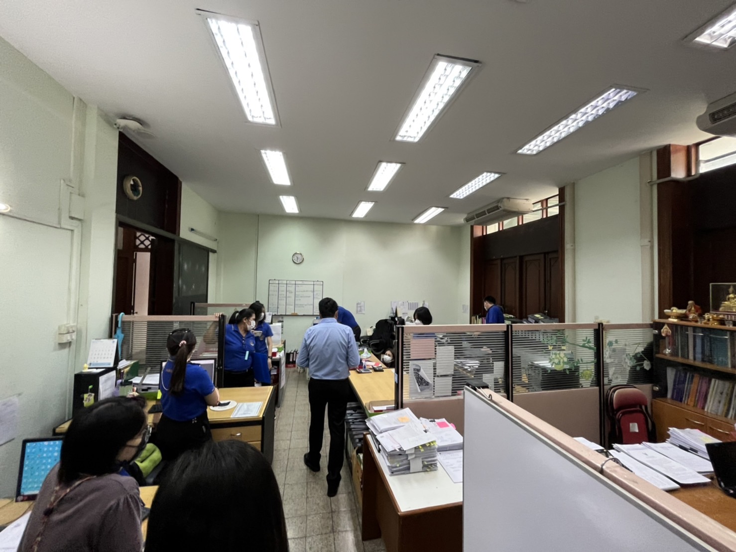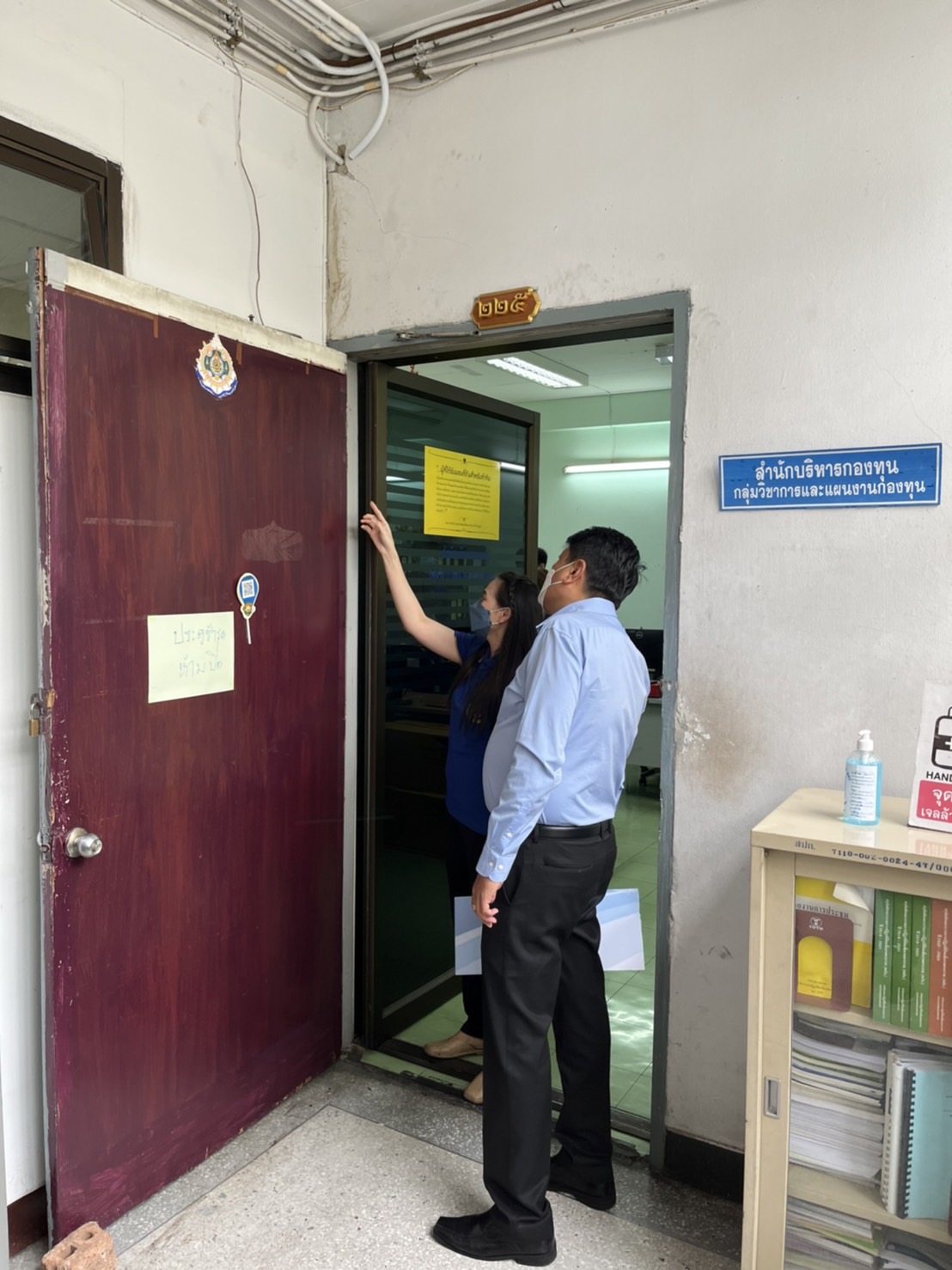 - ผู้อำนวยการสำนักบริหารกองทุน ตรวจเยี่ยมชมแต่ละกลุ่ม/ฝ่าย พร้อมทั้งให้คำแนะนำว่าอุปกรณ์ ที่ชำรุด เช่น ป้ายชื่อของแต่ละกลุ่ม/ฝ่าย เก้าอี้ และแอร์ ควรทำการปรับปรุง แก้ไข ให้มีสภาพพร้อมใช้งาน