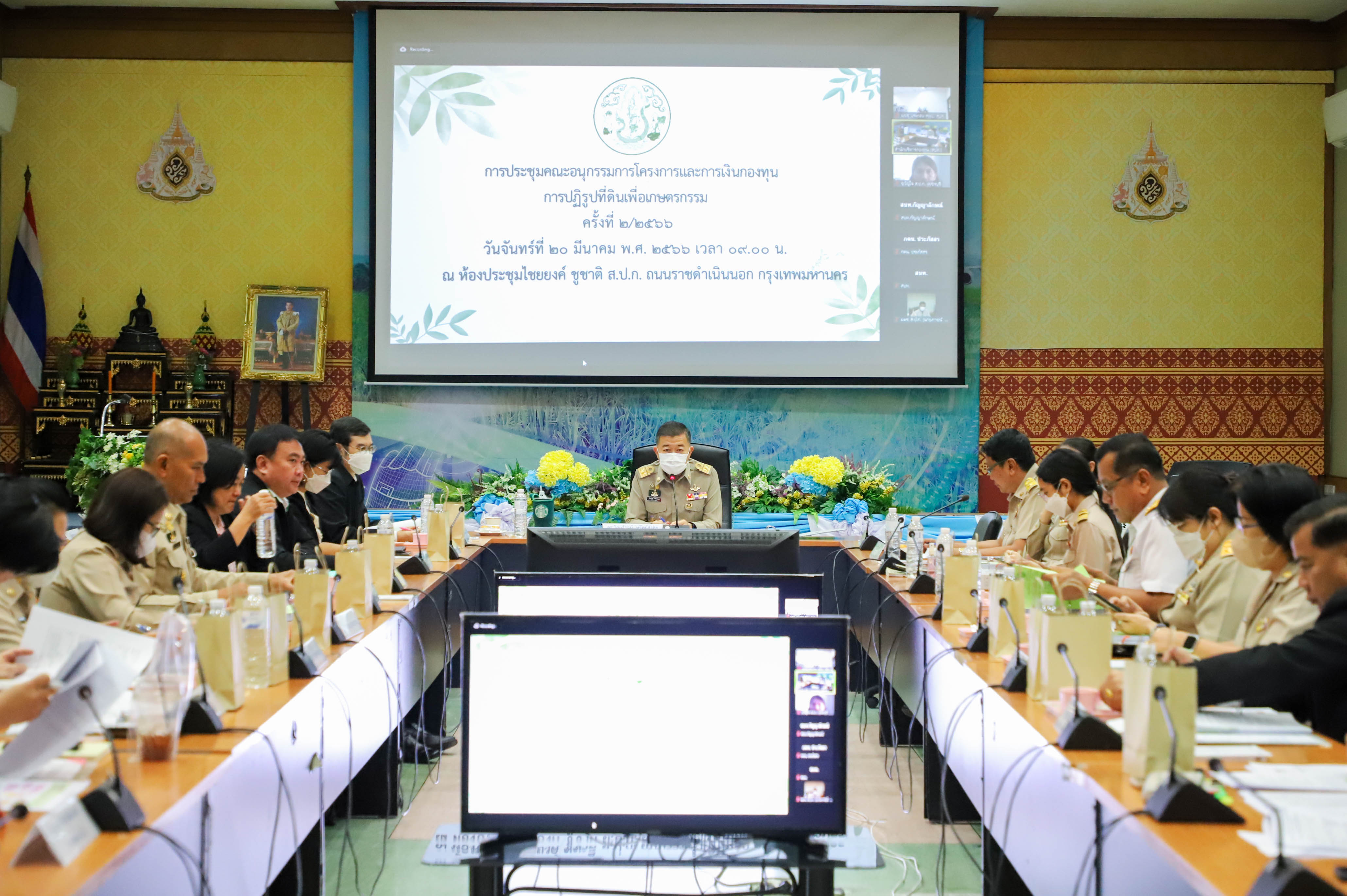 วันที่ 20 มีนาคม 2566 สำนักบริหารกองทุน จัดประชุมคณะอนุกรรมการโครงการและการเงินกองทุนการปฏิรูปที่ดินเพื่อเกษตรกรรม (อกก.คง.) ครั้งที่ 2/2566 โดยมี ดร.วิณะโรจน์ ทรัพย์ส่งสุข เลขาธิการ ส.ป.ก. เป็นประธานการประชุม พร้อมด้วยนายวุฒิพงศ์ เนียมหอม รองเลขาธิการ ส.ป.ก. รองประธานการประชุม นายศักดิ์ศิริ ธูปวงศ์ ผู้อำนวยการสำนักบริหารกองทุน อนุกรรมการและเลขานุการคณะอนุกรรมการฯ โดยมีผู้แทนสำนักงบประมาณ ผู้แทนกรมบัญชีกลาง ผู้แทนสำนักงานสภาพัฒนาการเศรษฐกิจและสังคมแห่งชาติ ผู้แทนธนาคารเพื่อการเกษตรและสหกรณ์การเกษตร และหน่วยงานต่าง ๆ ในสังกัดกระทรวงเกษตรและสหกรณ์ คณะผู้บริหาร ข้าราชการ เจ้าหน้าที่ ส.ป.ก.ส่วนกลาง และ ส.ป.ก.จังหวัด ที่เกี่ยวข้อง ร่วมประชุมในครั้งนี้ ณ ห้องประชุมไชยยงค์ ชูชาติ ส.ป.ก. ถนนราชดําเนินนอก กรุงเทพฯ และประชุมผ่านสื่ออิเล็กทรอนิกส์โปรแกรม ZOOM Meeting