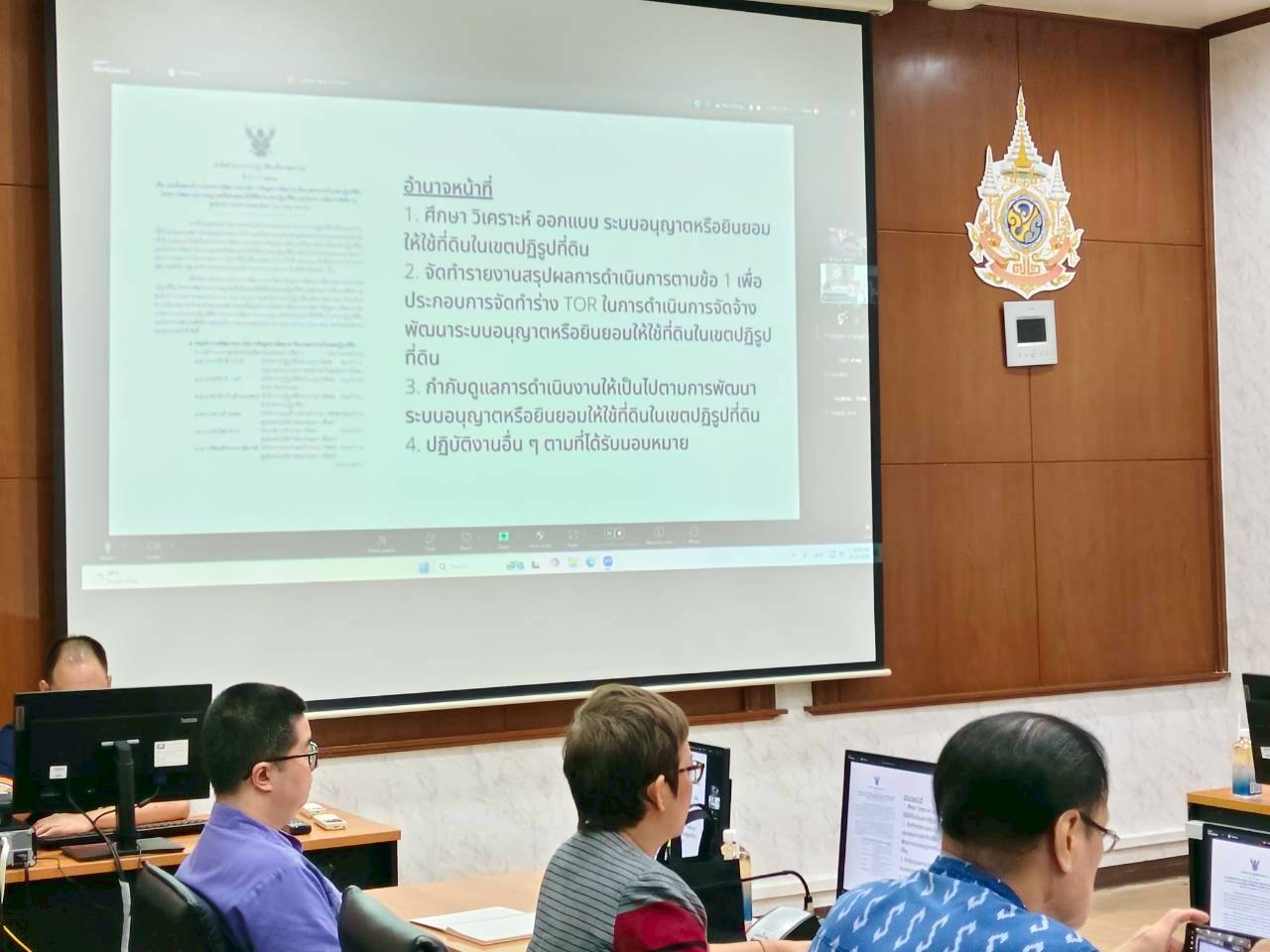 วันศุกร์ที่ 19 กันยายน 2568 เวลา 09.00 – 12.00 น. นางสาวลักษณา มั่นเศรษฐวิทย์ ผู้อำนวยการศูนย์เทคโนโลยีสารสนเทศและการสื่อสาร เป็นประธานในการประชุมคณะทำงานโครงการพัฒนาระบบอนุญาตหรือยินยอมให้ใช้ที่ดินในเขตปฏิรูปที่ดิน พร้อมด้วยคณะทำงาน และเจ้าหน้าที่ผู้เกี่ยวข้อง ณ ห้องประชุมสุทธิพร จีระพันธุ ส.ป.ก. ถนนราชดำเนินนอก กรุงเทพฯ และผ่านระบบ Zoom Meeting