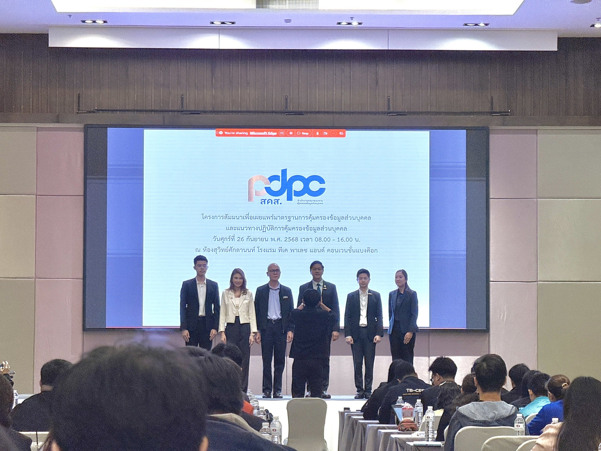 วันศุกร์ที่ 26 กันยายน 2568 นางสาวนิติมา สุขหุ้ม พร้อมด้วยนางณลักขณา โลหะวิจารณ์ นักวิชาการคอมพิวเตอร์ปฏิบัติการ กลุ่มบริหารและพัฒนาระบบสารสนเทศ และนางสาวสุพัชรีภรณ์ อาวรณ์ นักวิชาการคอมพิวเตอร์ปฏิบัติการ กลุ่มระบบคอมพิวเตอร์และเครือข่าย เข้าร่วมโครงการสัมมนาเผยแพร่มาตรฐานการคุ้มครองข้อมูลส่วนบุคคลและแนวทางการปฏิบัติการคุ้มครองข้อมูลส่วนบุคคล ณ โรงแรม ทีเค พาเลซ แอนด์ คอนเวนชั่น กรุงเทพฯ
