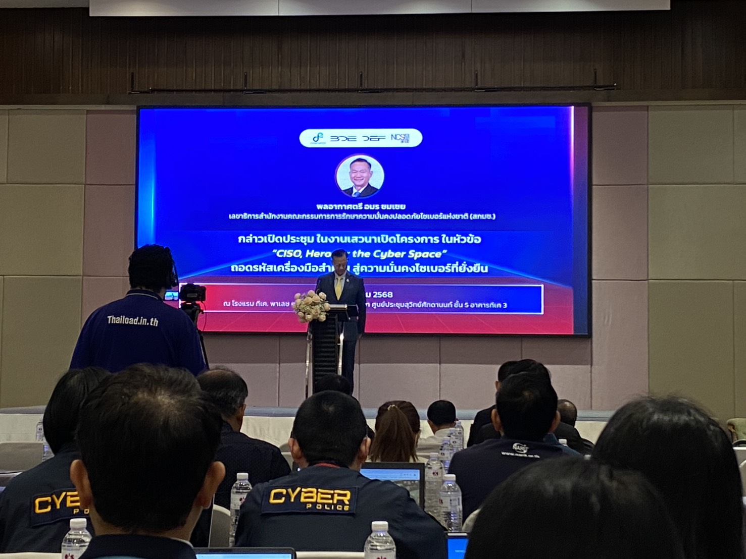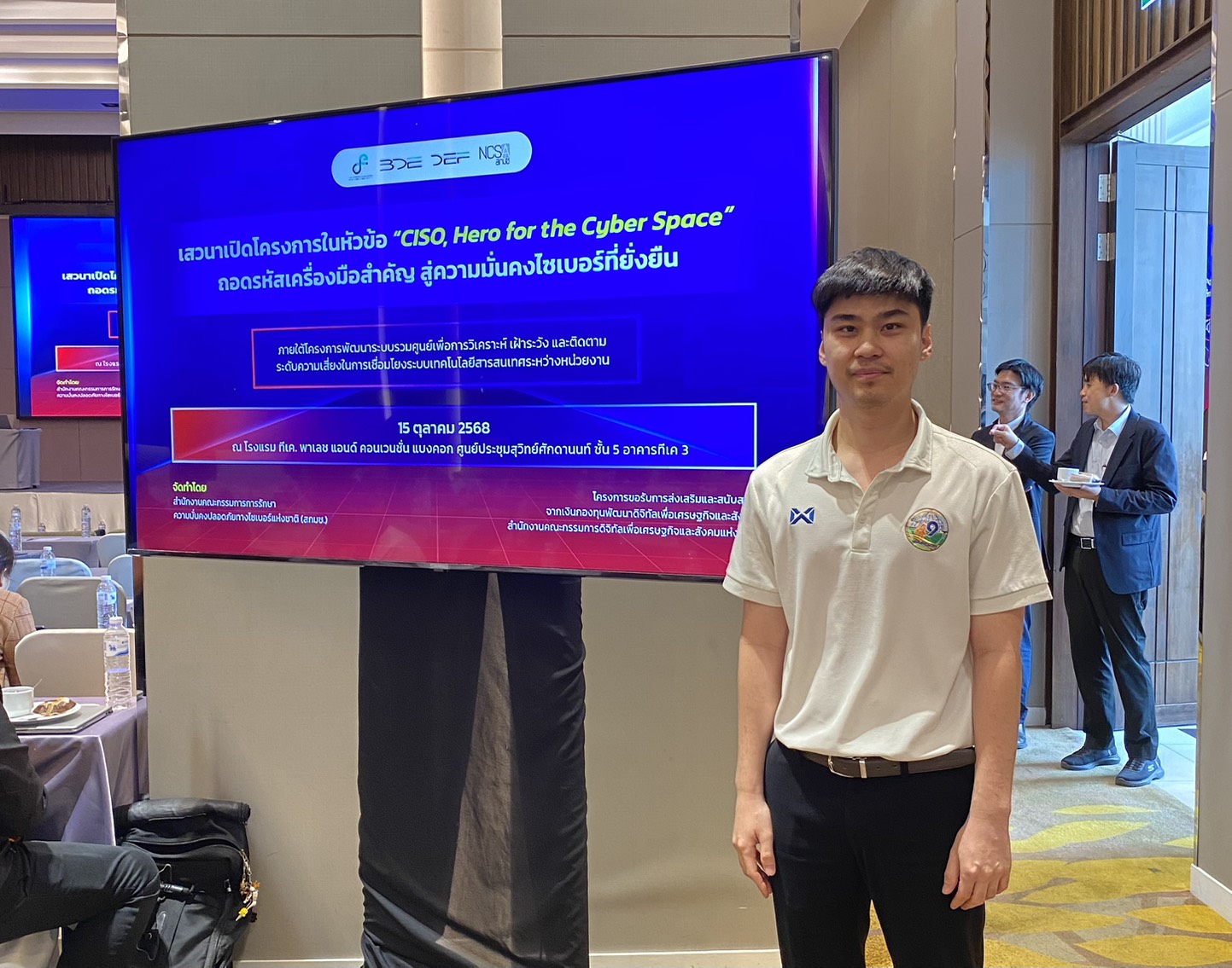 วันที่ 15 ตุลาคม 2568 เวลา 09.00 น. นายธนัท จำปาโชติ นักวิชาการคอมพิวเตอร์ปฏิบัติการ กลุ่มระบบคอมพิวเตอร์และเครือข่าย เข้าร่วมโครงการ ในหัวข้อ “CISO, Hero for the Cyber Space” ถอดรหัสเครื่องมือสำคัญ สู่ความมั่นคงไซเบอร์ที่ยั่งยืน ณ สุวิทย์ศักดานนท์ โรงแรม ทีเค. พาเลซ & คอนเวนชั่น กรุงเทพมหานคร
