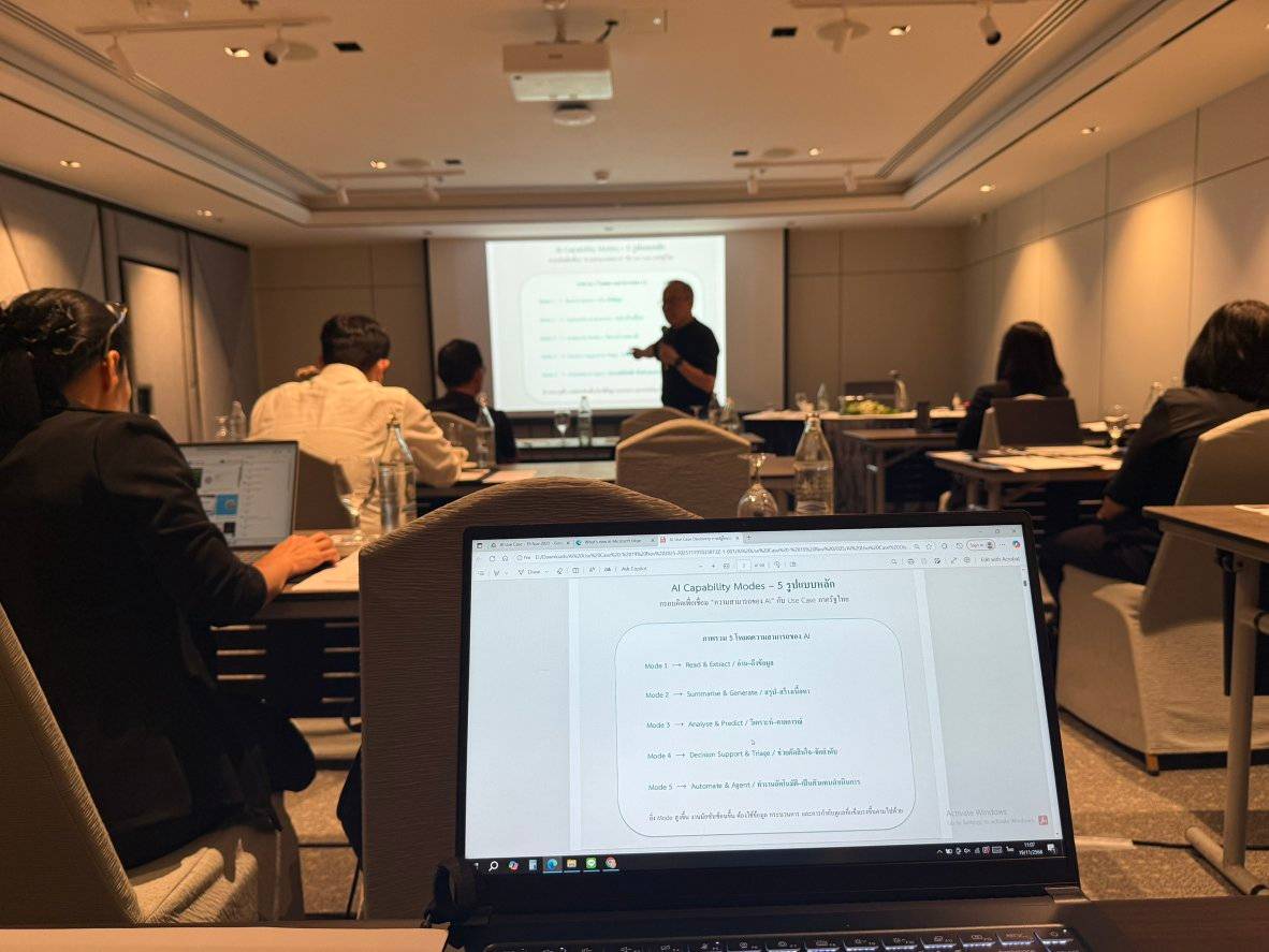 วันพุธที่ 19 พฤศจิกายน 2568 นางสาวสุพัชรีภรณ์ อาวรณ์ นักวิชาการคอมพิวเตอร์ปฏิบัติการ กลุ่มระบบคอมพิวเตอร์และเครือข่าย (กรค.) เข้าร่วมอบรมหลักสูตร "การออกแบบ AI Use Case สำหรับภาครัฐไทย" โดยมีวัตถุประสงค์หลัก เพื่อช่วยให้หน่วยงานสามารถ คัดเลือก ออกแบบ และจัดลำดับความสำคัญ ของ AI use case ที่มีประสิทธิภาพ วัดผลได้ นำไปใช้ได้จริง และปลอดภัยตามกรอบกำกับดูแลสำหรับประเทศไทย ณ โรงแรมอวานี รัชดา กรุงเทพฯ