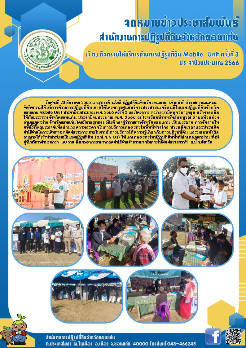 ส.ป.ก.ขอนแก่น ร่วมจัดกิจกรรมโครงการ ศูนย์บริการประชาชนเคลื่อนที่ (Mobile Unit)