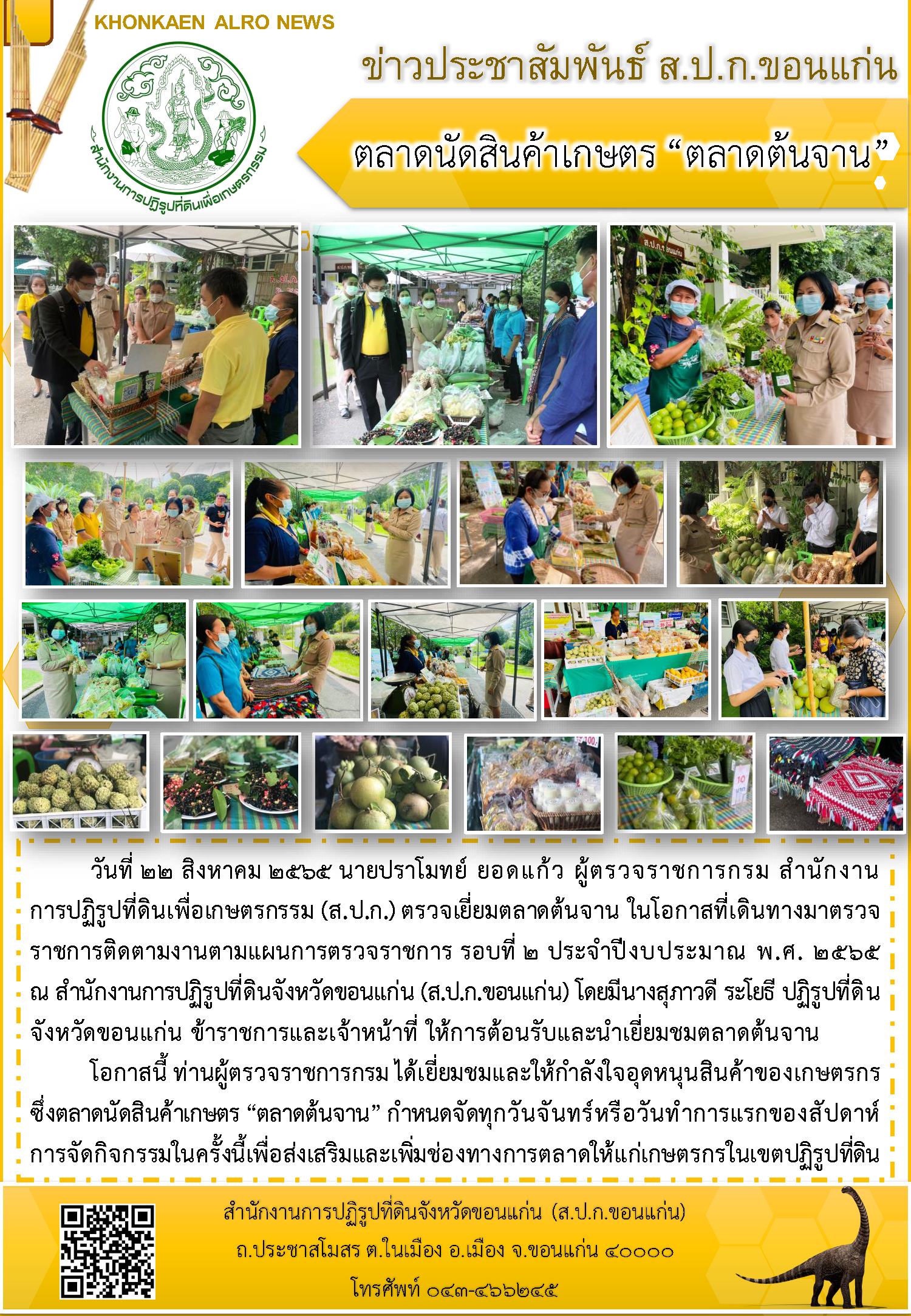 ส.ป.ก.ขอนแก่น จัดกิจกรรมตลาดนัดสินค้าเกษตร "ตลาดต้นจาน"