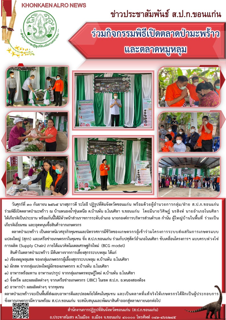 ส.ป.ก.ขอนแก่น ร่วมกิจกรรมพิธีเปิดตลาดป่ามะพร้าวและตลาดหมูหลุม