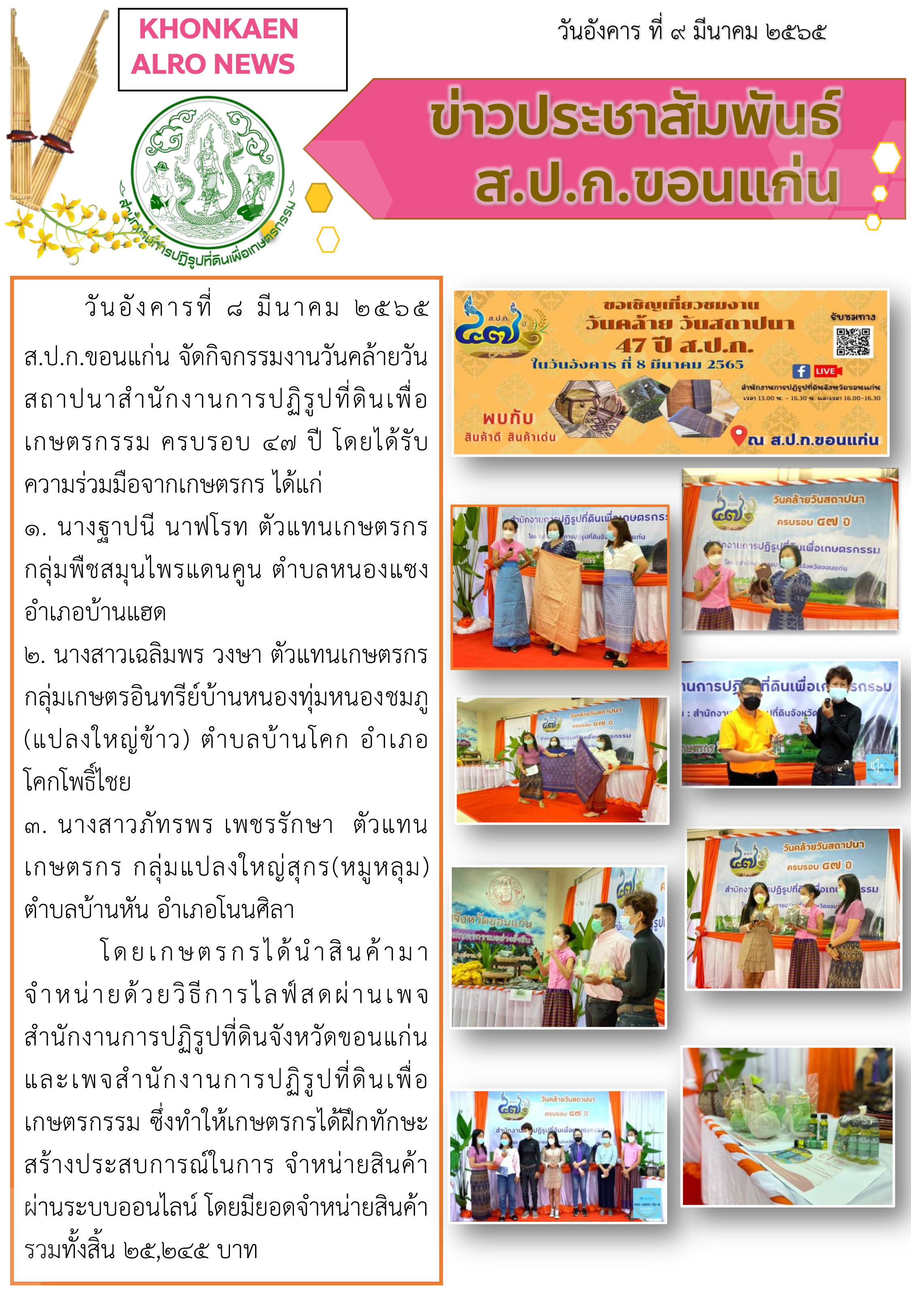 ส.ป.ก.ขอนแก่น จัดกิจกรรมงานวันคล้ายวันสถาปนาสำนักงานการปฏิรูปที่ดินเพื่อเกษตรกรรม ครบรอบ 47 ปี