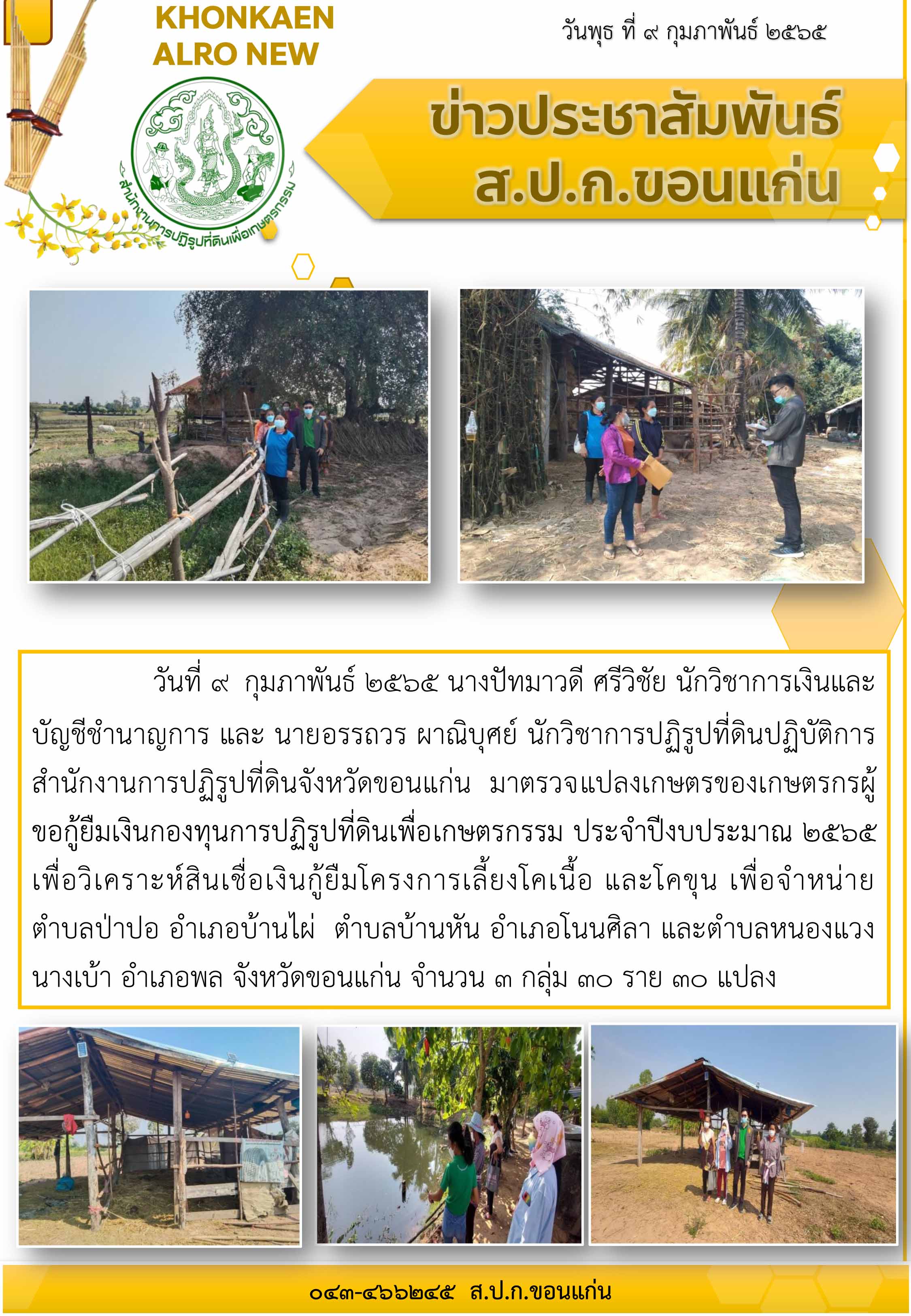 ส.ป.ก.ขอนแก่น ตรวจแปลงเกษตรกรของเกษตรกรผู้ขอกู้ยืมเงินกองทุนการปฏิรูปที่ดินเพื่อเกษตรกรรม ประจำปีงบประมาณ 2565