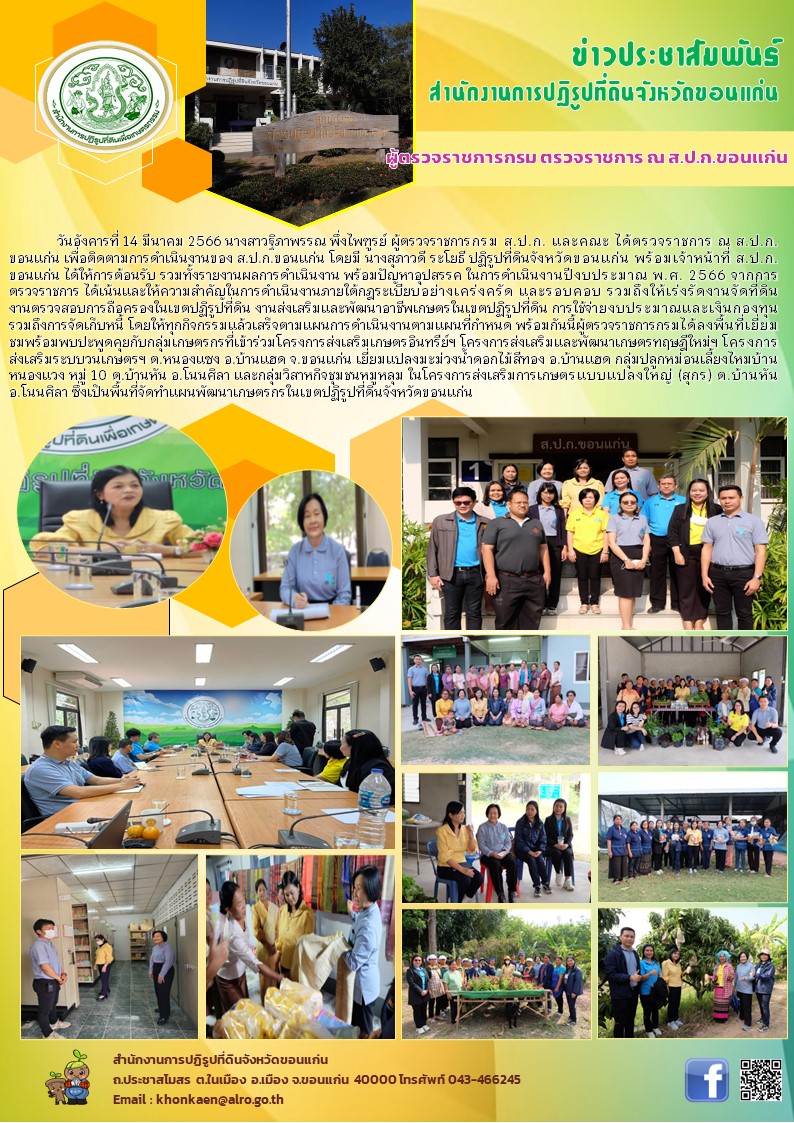 นางสาวฐิภาพรรณ พึ่งไพฑูรย์ ผู้ตรวจราชการกรม ส.ป.ก. ตรวจติดตามการดำเนินงานของ ส.ป.ก.ขอนแก่น